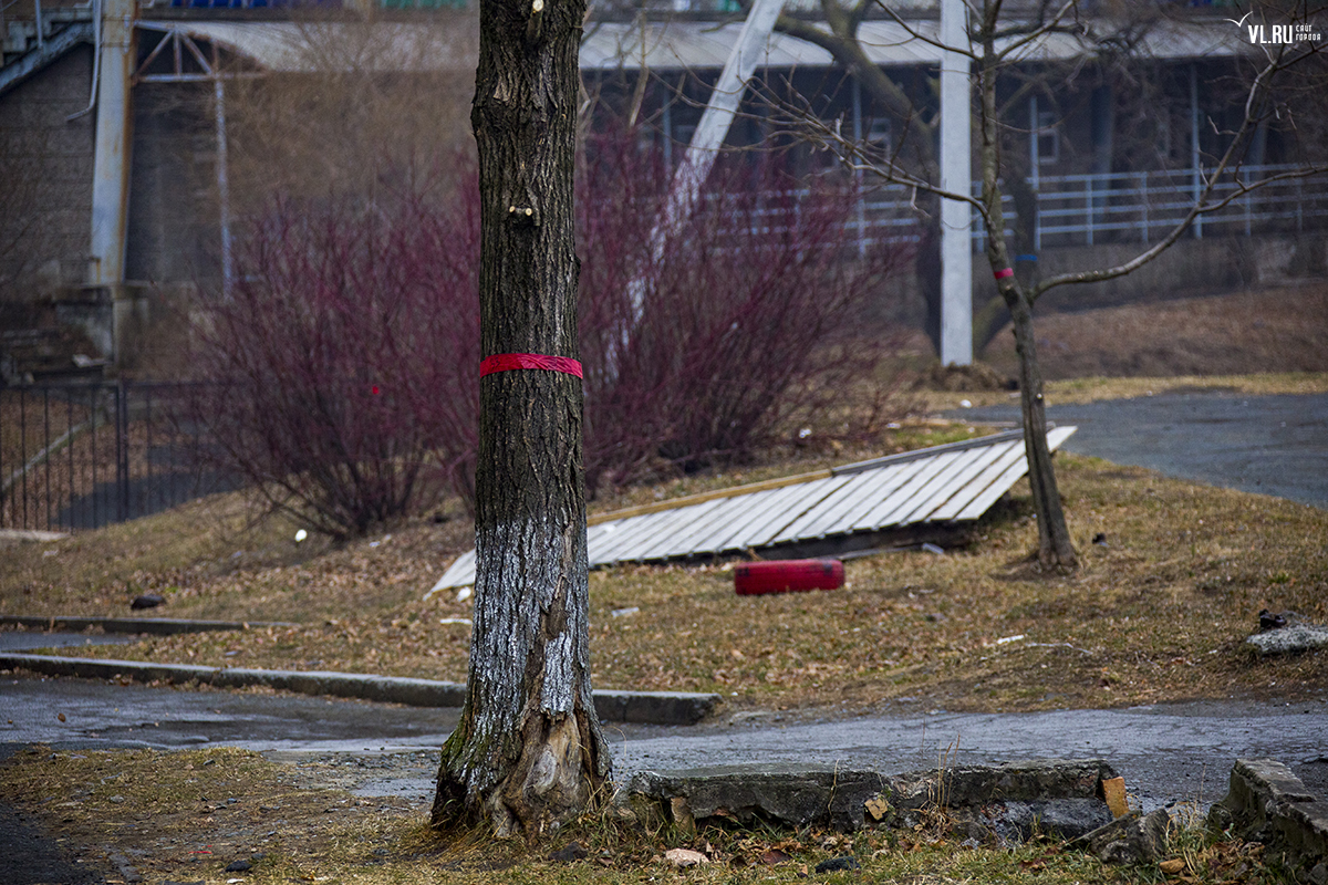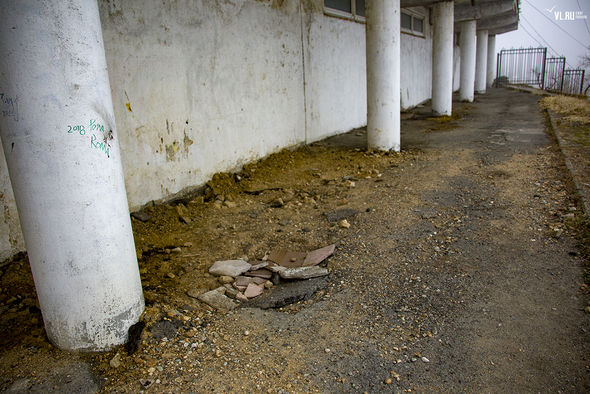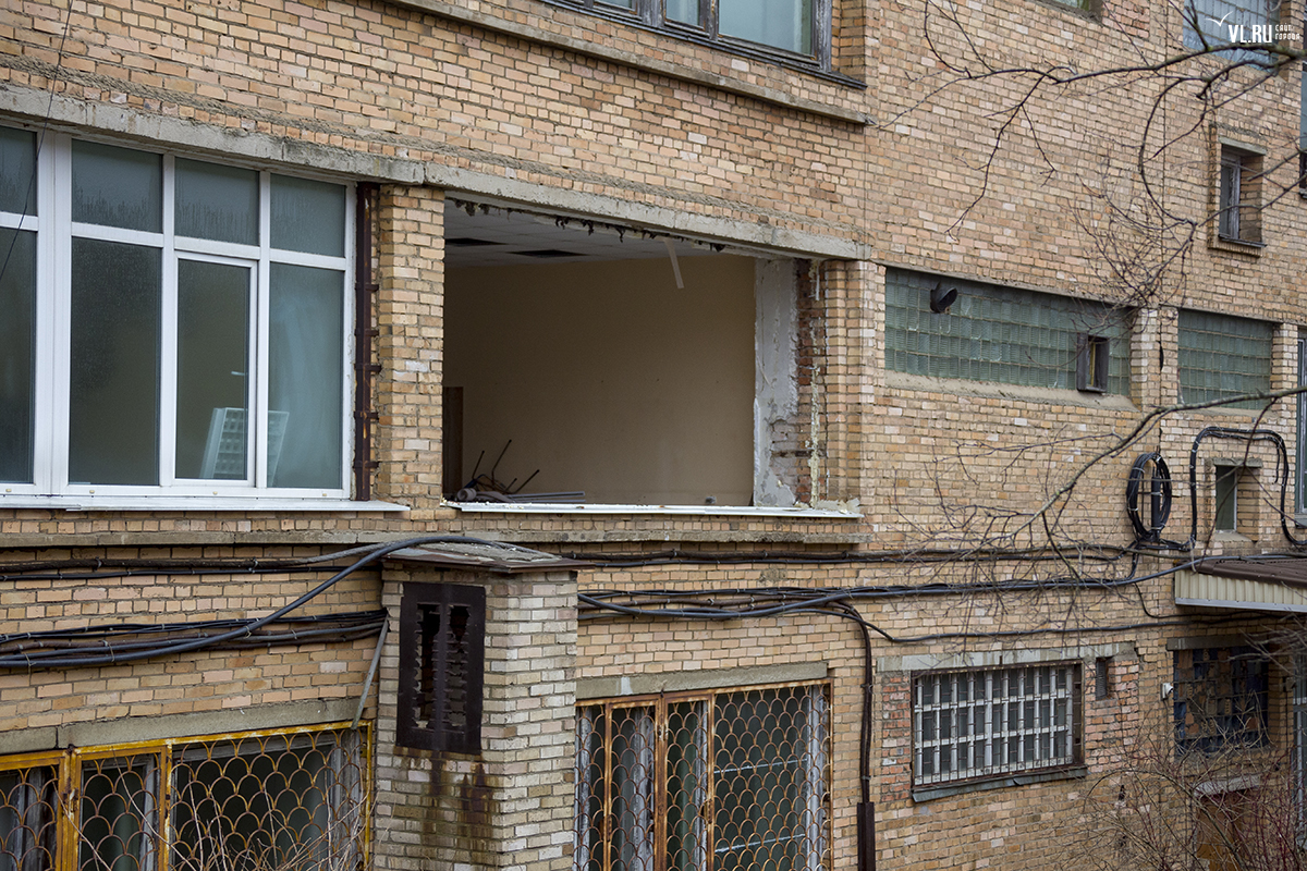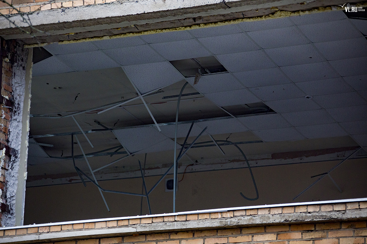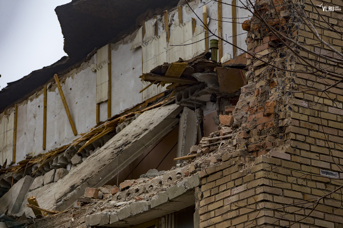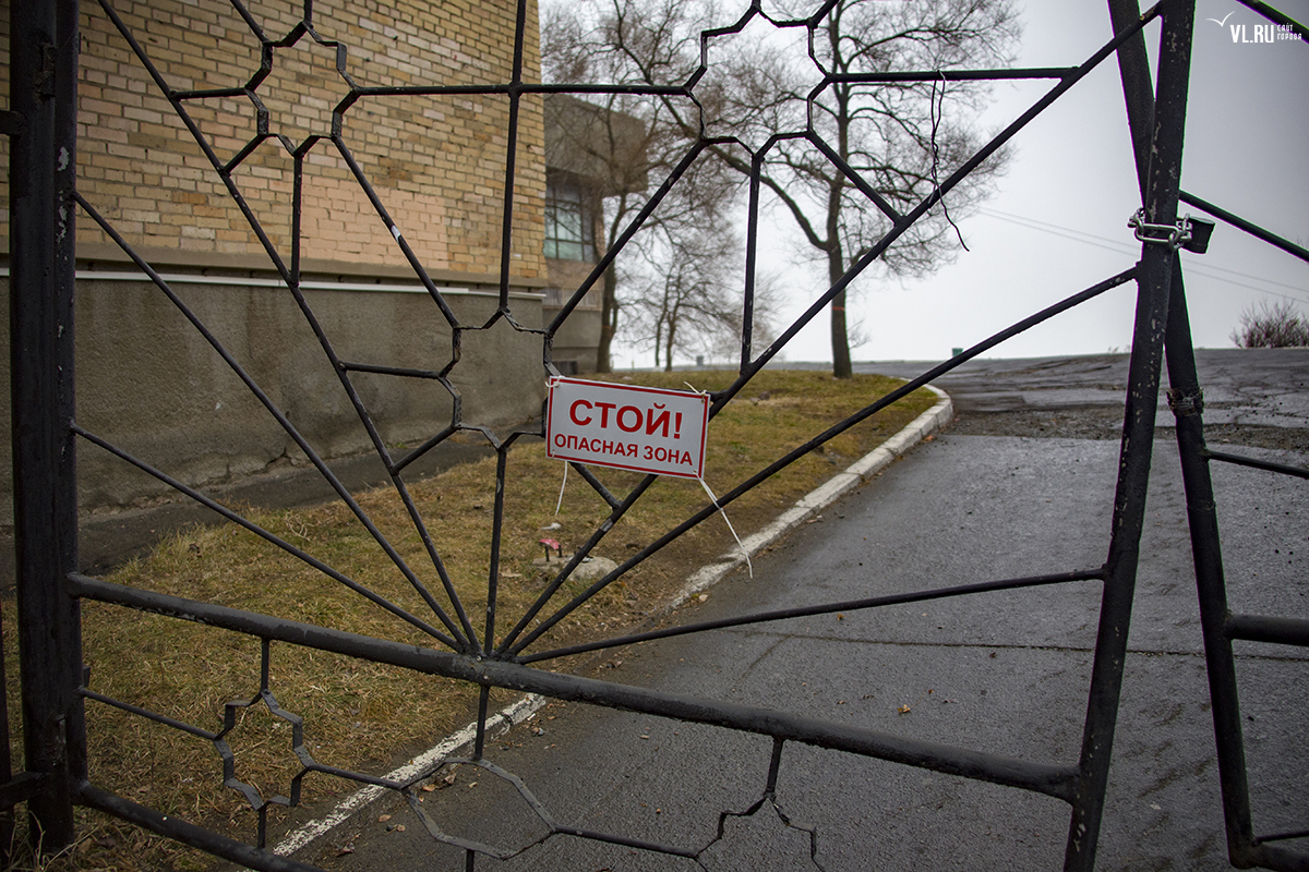 Бывший корпус ДВГТУ на Аксаковской начали сносить. Первым под снос попал кирпичный корпус № 3а. Часть его уже разрушена, в другой части пока снимают электрику и выносят стеклопакеты. На время строительных работ закрытой окажется и главная видовая площадка.