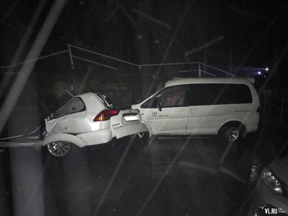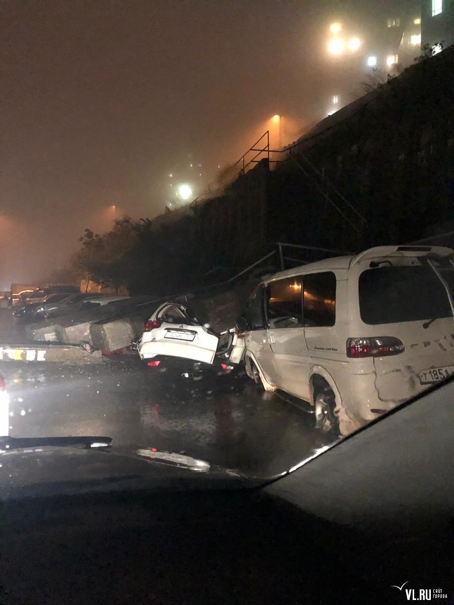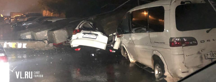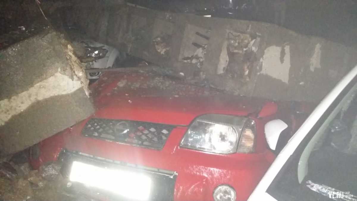 Под тоннами бетона оказались Nissan X-Trail и Mitsubishi Pajero, переднюю часть снесло у Mitsubishi Delica, а у Toyota Vitz повреждена правая сторона. Первые два автомобиля восстановлению не подлежат.