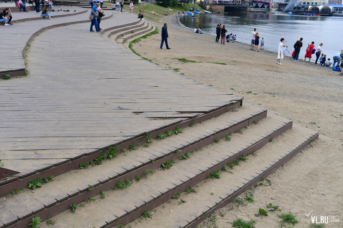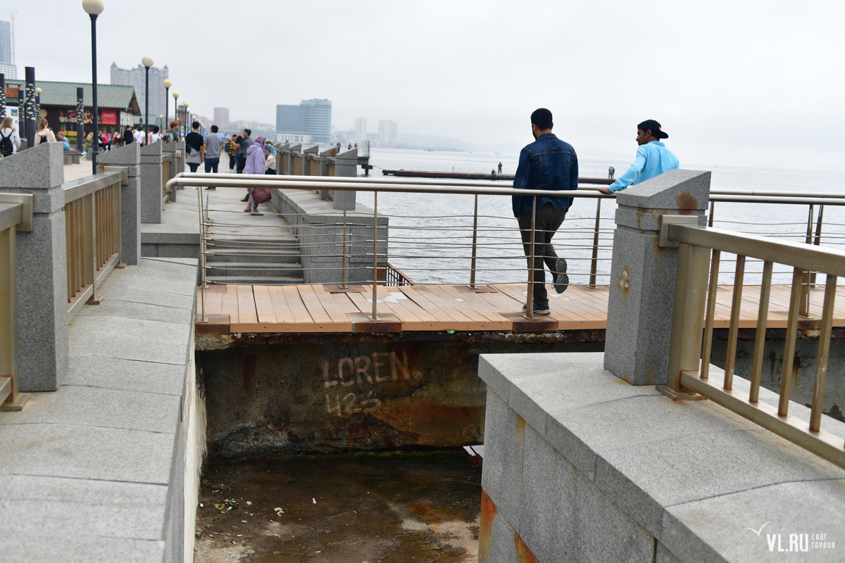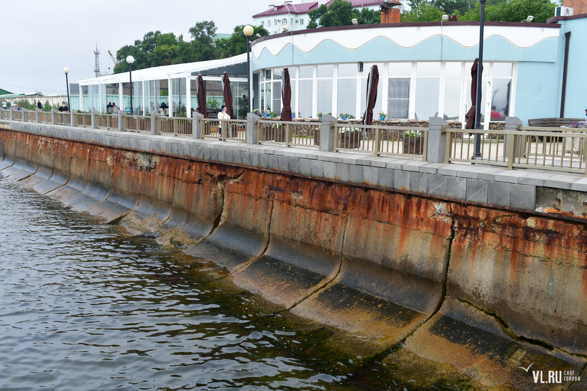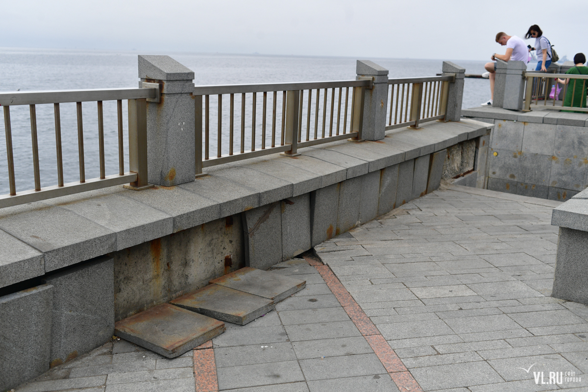 В марте VL.ru уже писал о том, что уже шестой год подряд после зимы на набережной Спортивной гавани проваливается брусчатка и отваливается плитка. После этого мэрия все-таки нашла подрядчика, который в светлом будущем капитально отремонтирует стенку.