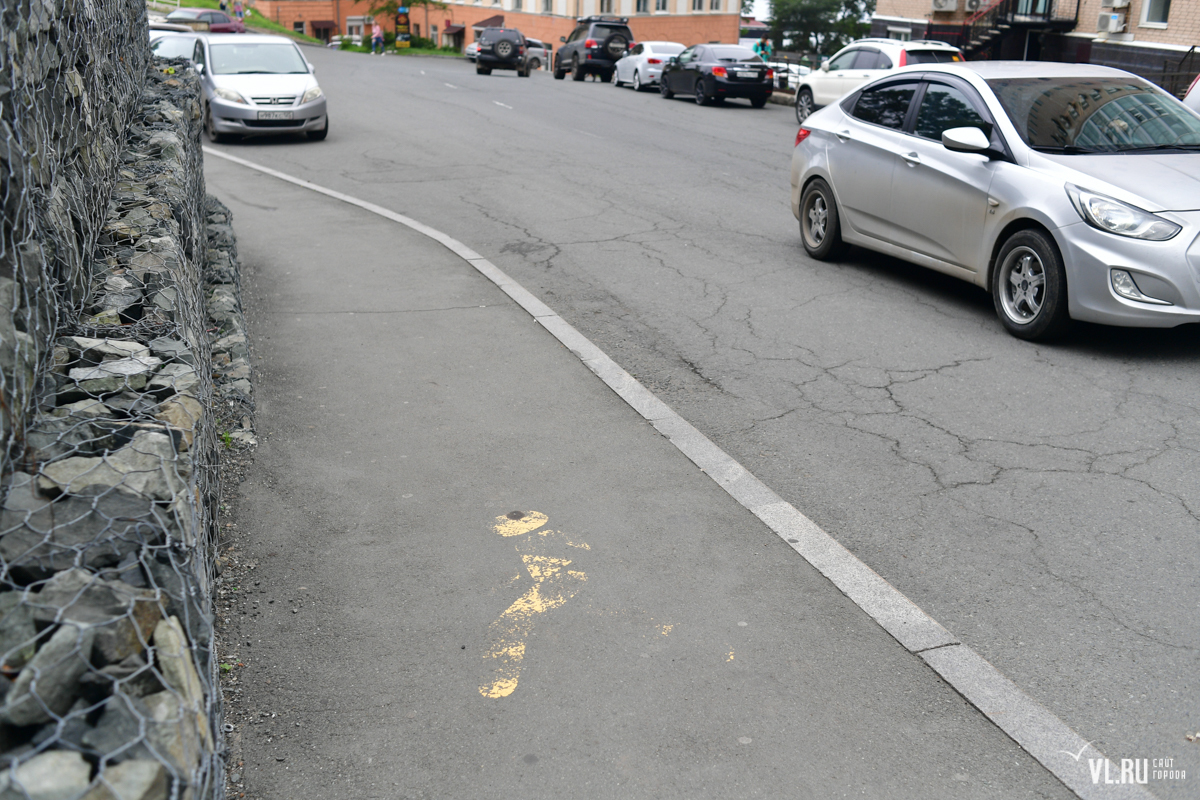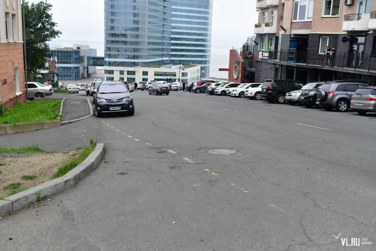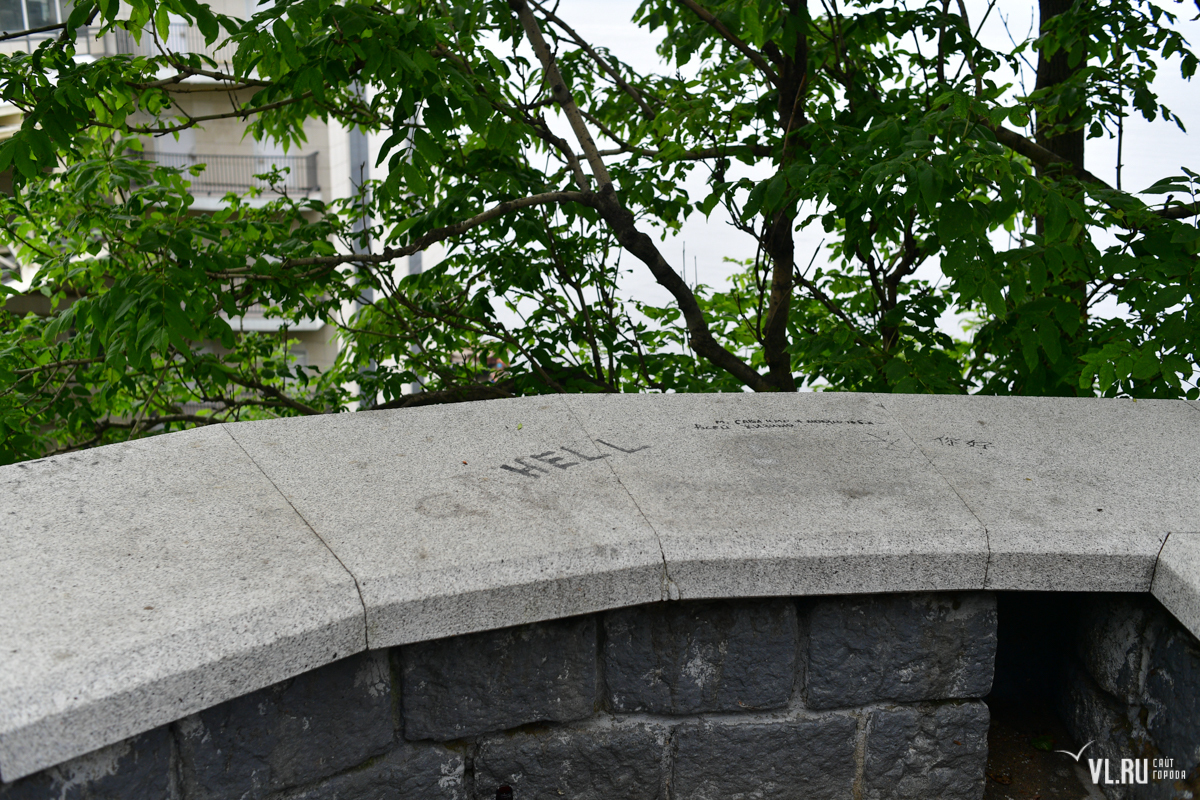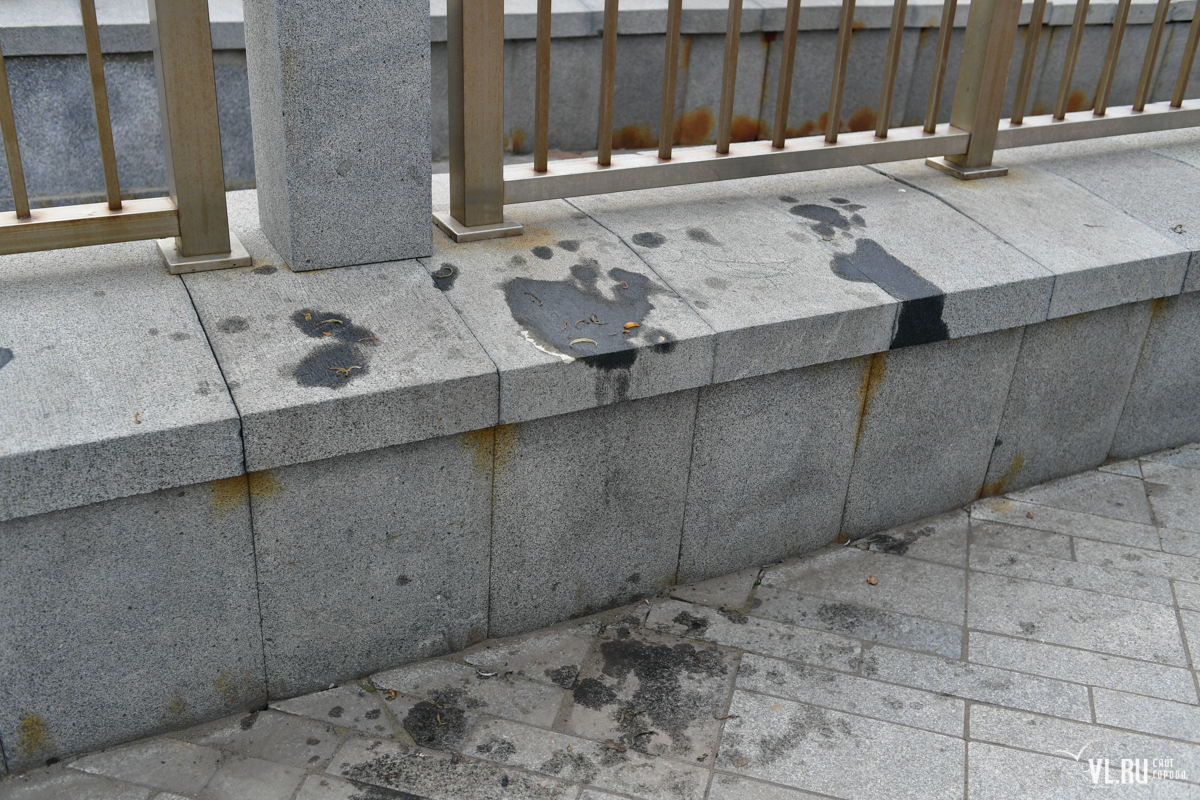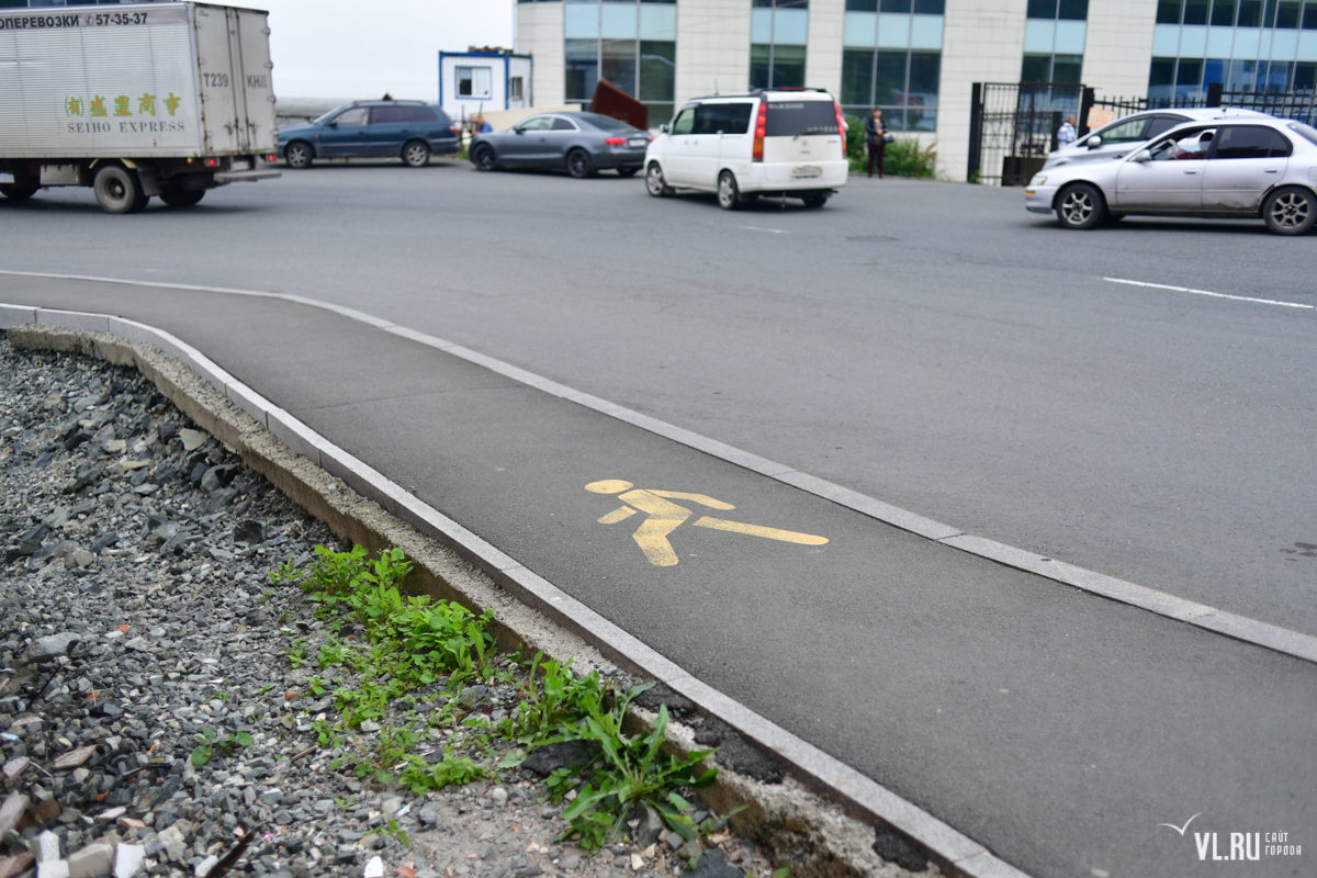 Двигаясь прямо вдоль моря, рекомендуем поглядывать под ноги – во многих местах плитка уложена, мягко говоря, довольно криво, легко споткнуться. Но постоянно смотреть в землю тоже вряд ли захочется – хорошо видно, что плиты уже много лет не мыли - отсюда пыль, грязь, масляные пятна от уличных ресторанов и торговцев. Поневоле вспоминаешь, что в Японии и Корее дороги и общественные пространства регулярно моют специальным шампунем. Зато у нас в солнечный день нередко можно встретить незаконных предпринимателей, катающих на лошадях всех желающих. Несмотря на многократные обещания и угрозы администрации Владивостока убрать животных, бизнесмены по-прежнему на старых местах.