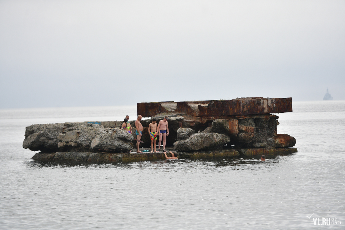 Минуя аллею стритфуда, гуляющий может свернуть направо. Здесь подход к воде безопасен. Чего нельзя сказать о пирсах – из них торчат куски ржавой арматуры, а ныряющие горожане то и дело получают травмы. Для того, чтобы избавить зрителей от созерцания такого жалкого и убогого зрелища, ко Дню ВМФ военные даже скрыли останки былого величия СССР маскировочной сеткой.