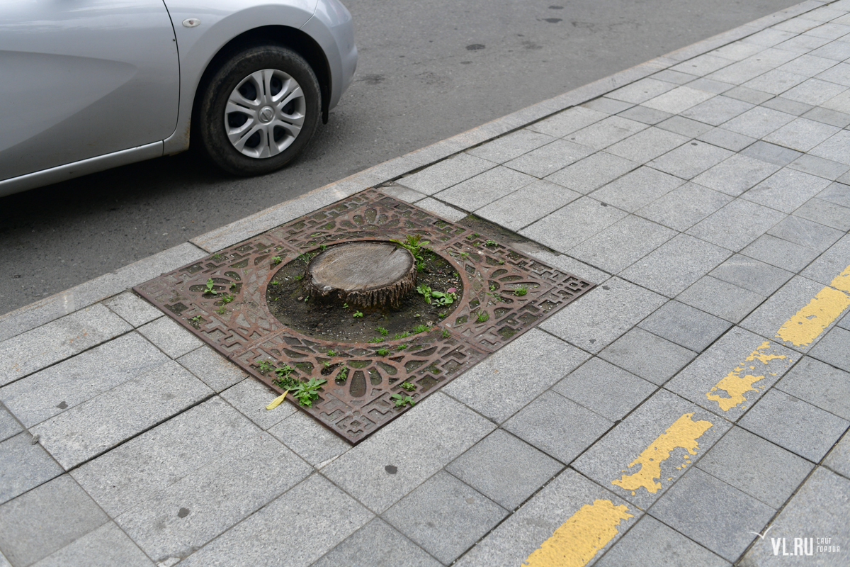Остальные маленькие смотровые площадки выглядят неплохо, только рядом с одной из них какой-то отдыхающий случайно (или злонамеренно) перепутал декоративную вазу с мусорным ведром. Тут же неподалеку можно оценить еще одну достопримечательность – пень от дерева рекордно низкой высоты. На более удачливых (потому что живых) соседях видны следы хищнической обрезки – новые выросшие ветви выглядят как страшные щупальца неведомого исполина.