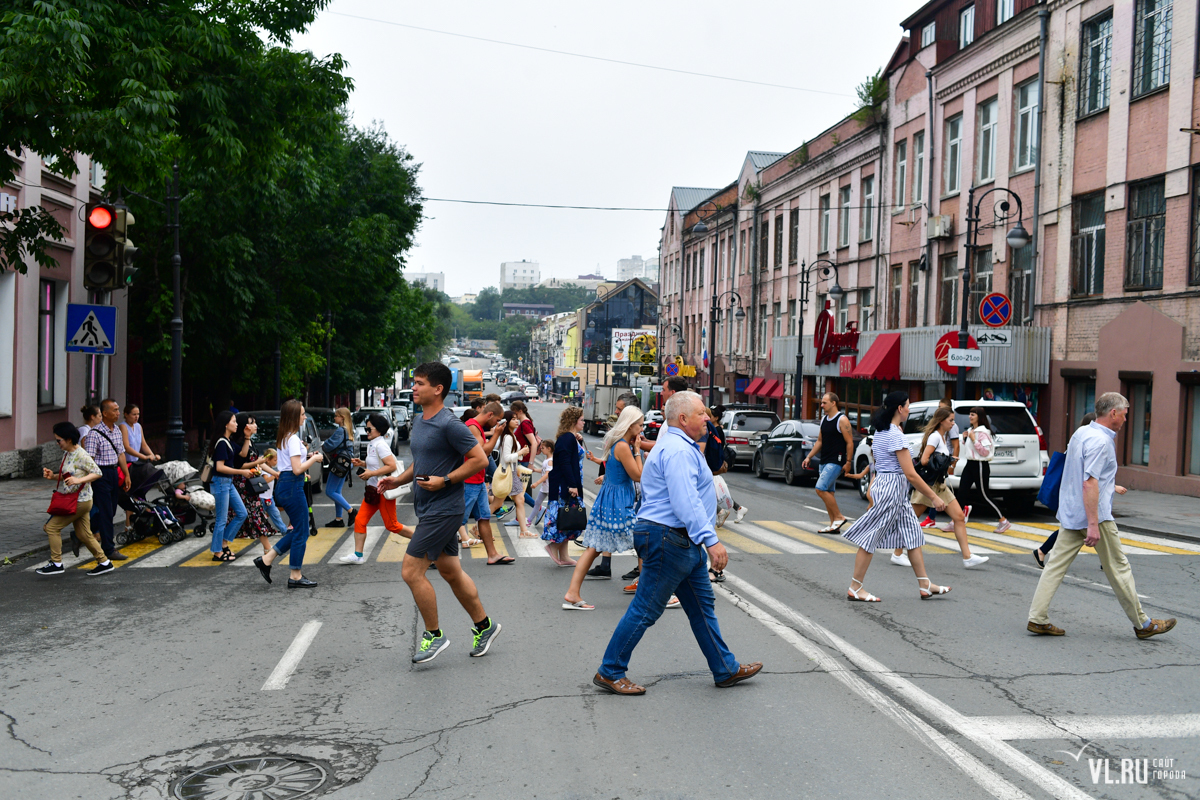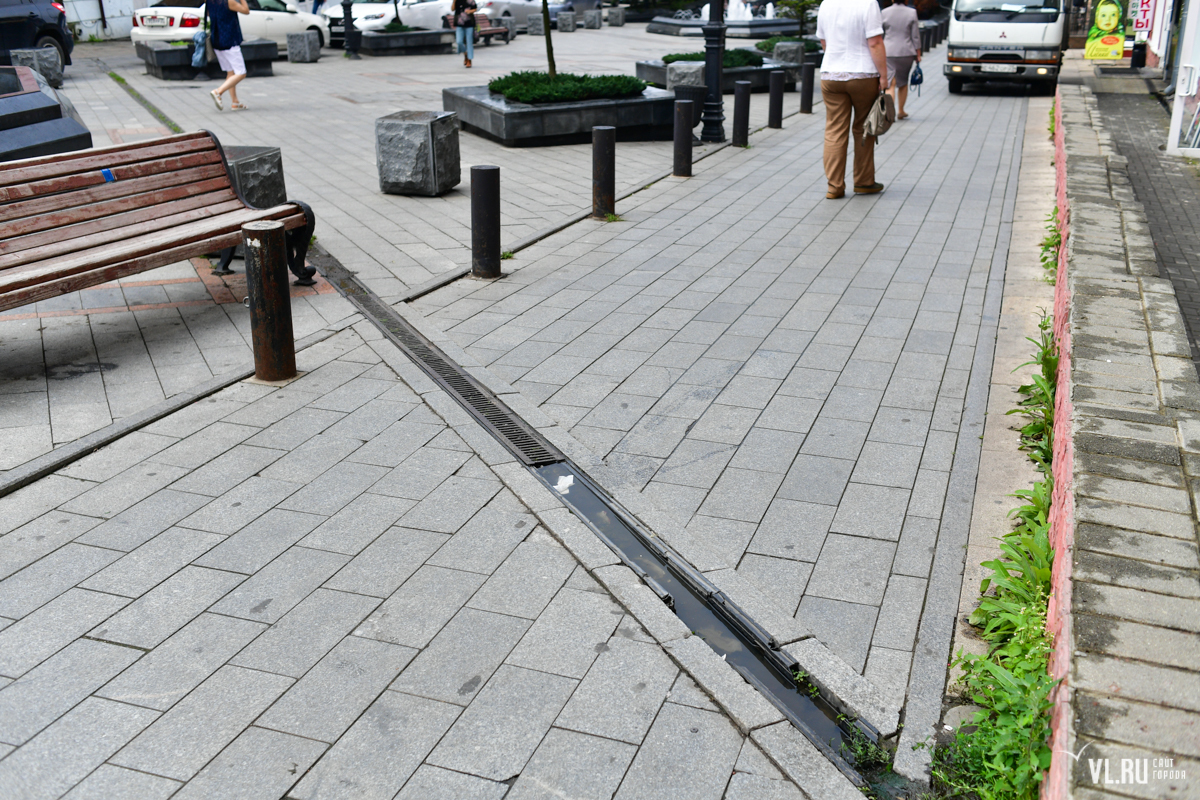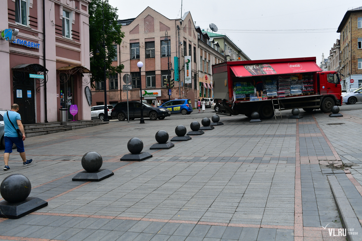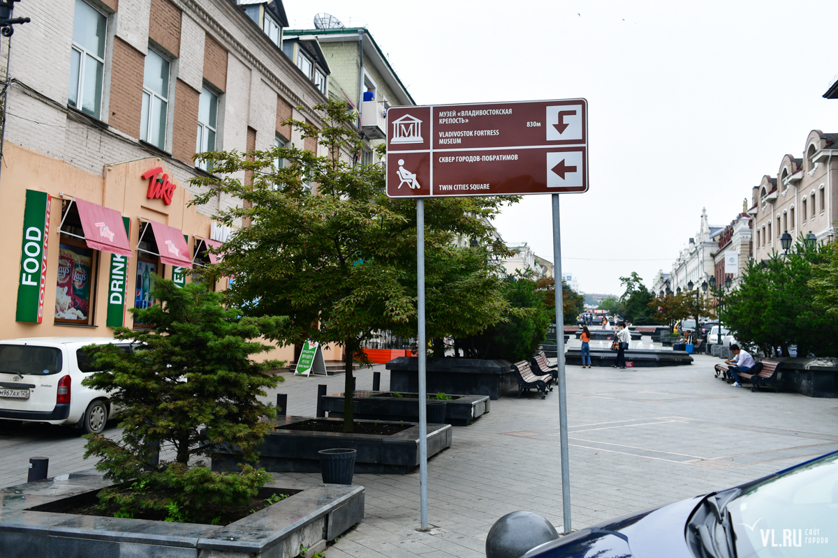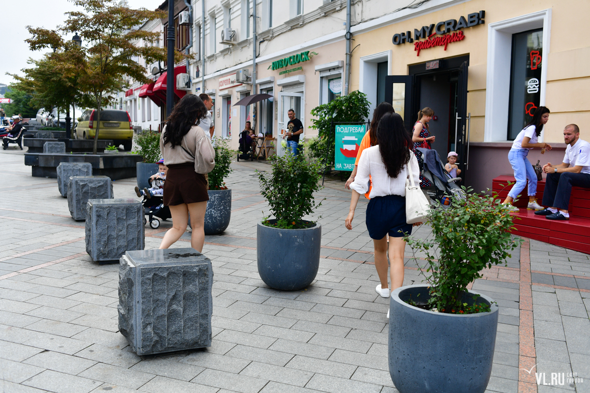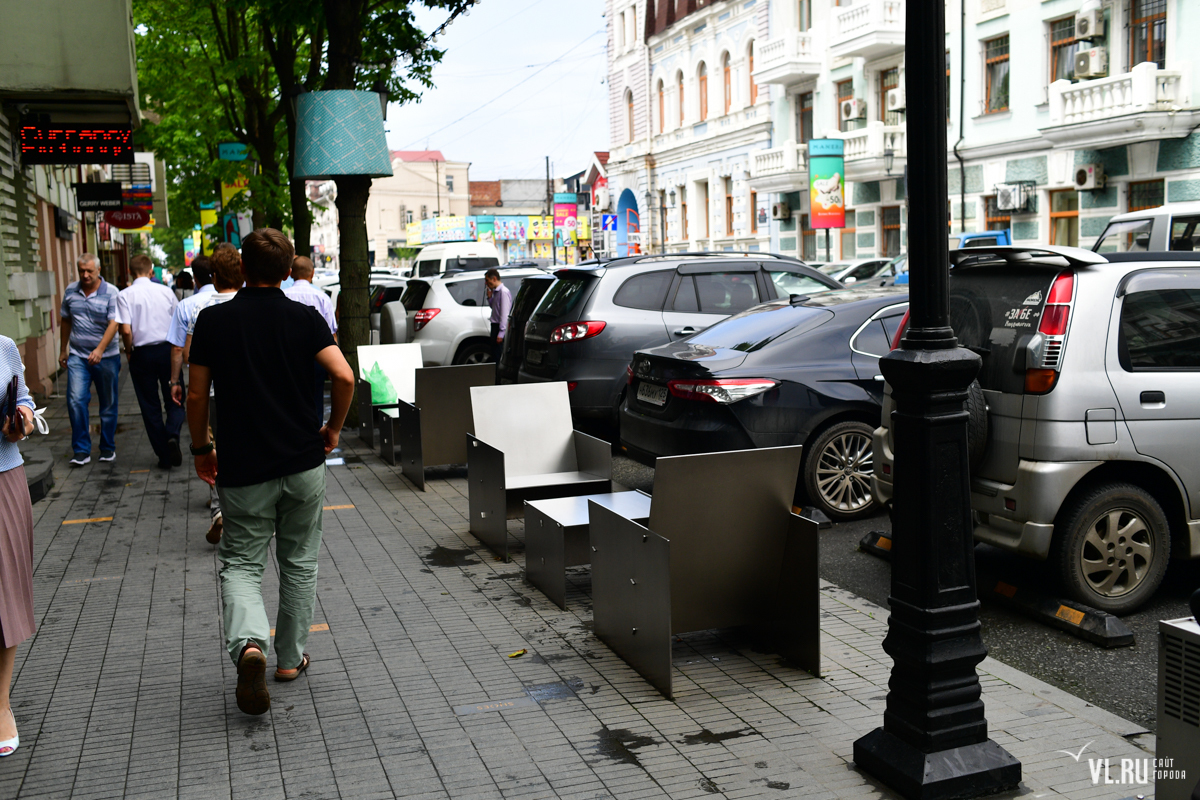 Жители Владивостока предпочитают передвигаться по центру улицы, поближе к фонтанам и лавочкам и подальше от автомобилей. Вопреки бесчисленным обещаниям и угрозам мэрии сделать улицу по-настоящему пешеходной, по левой и правой стороне, а также во дворах по-прежнему паркуются десятки машин.