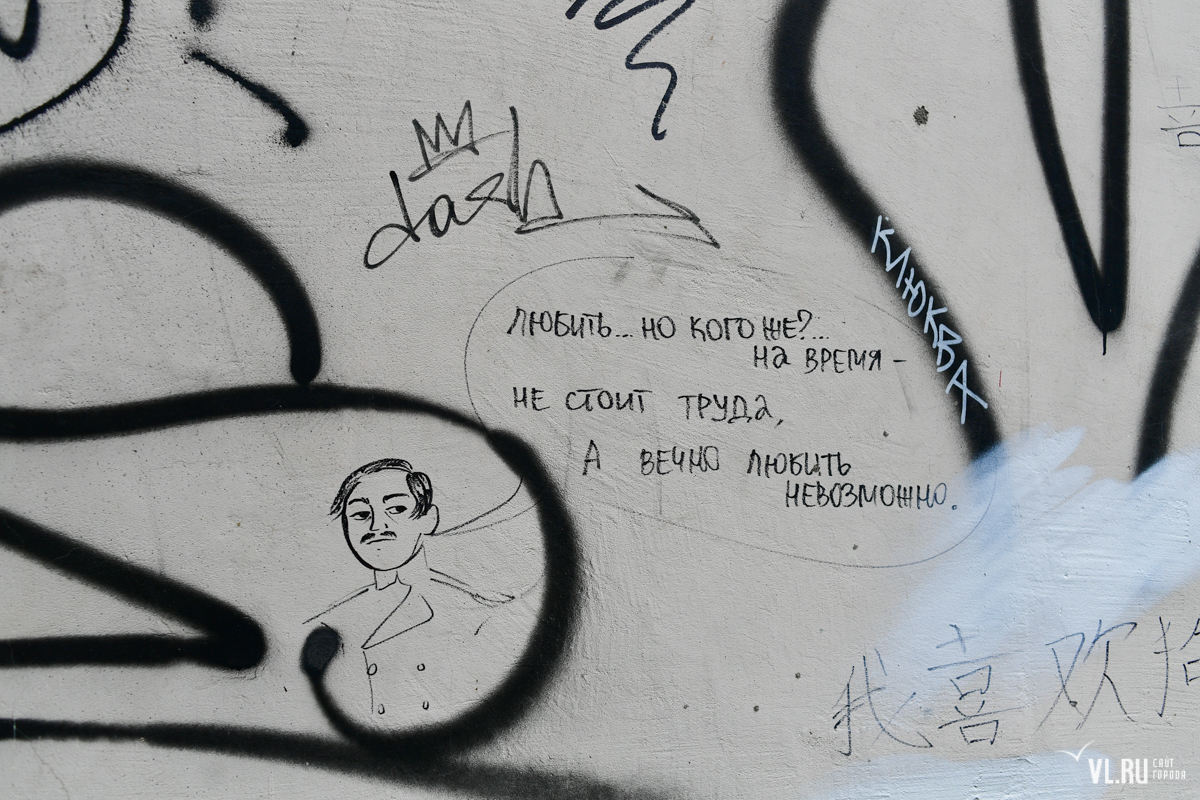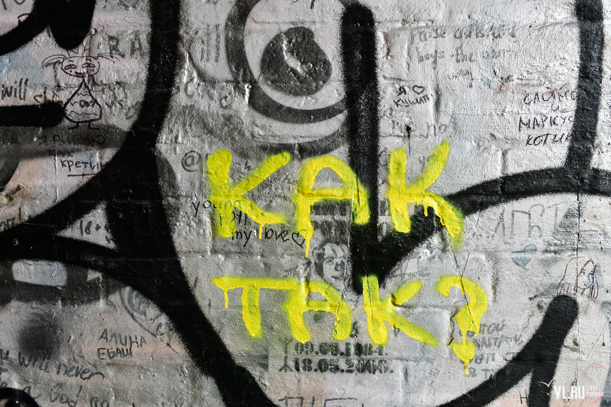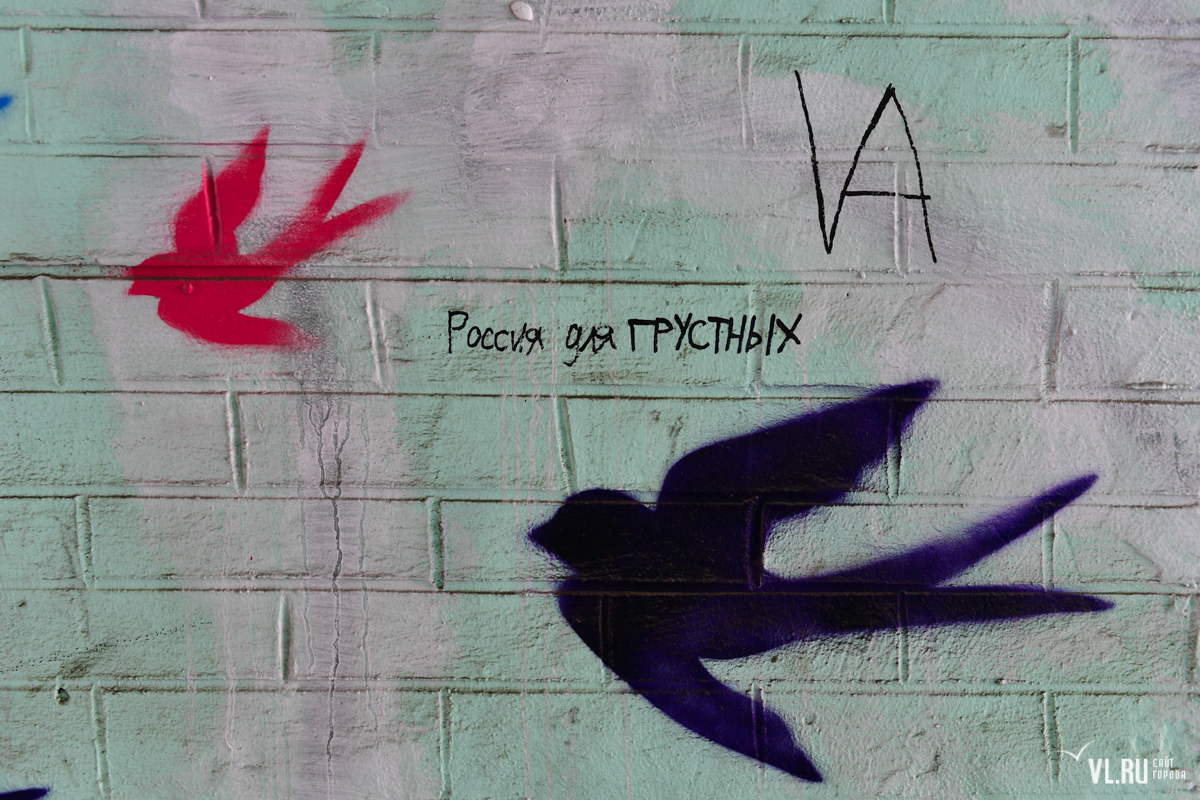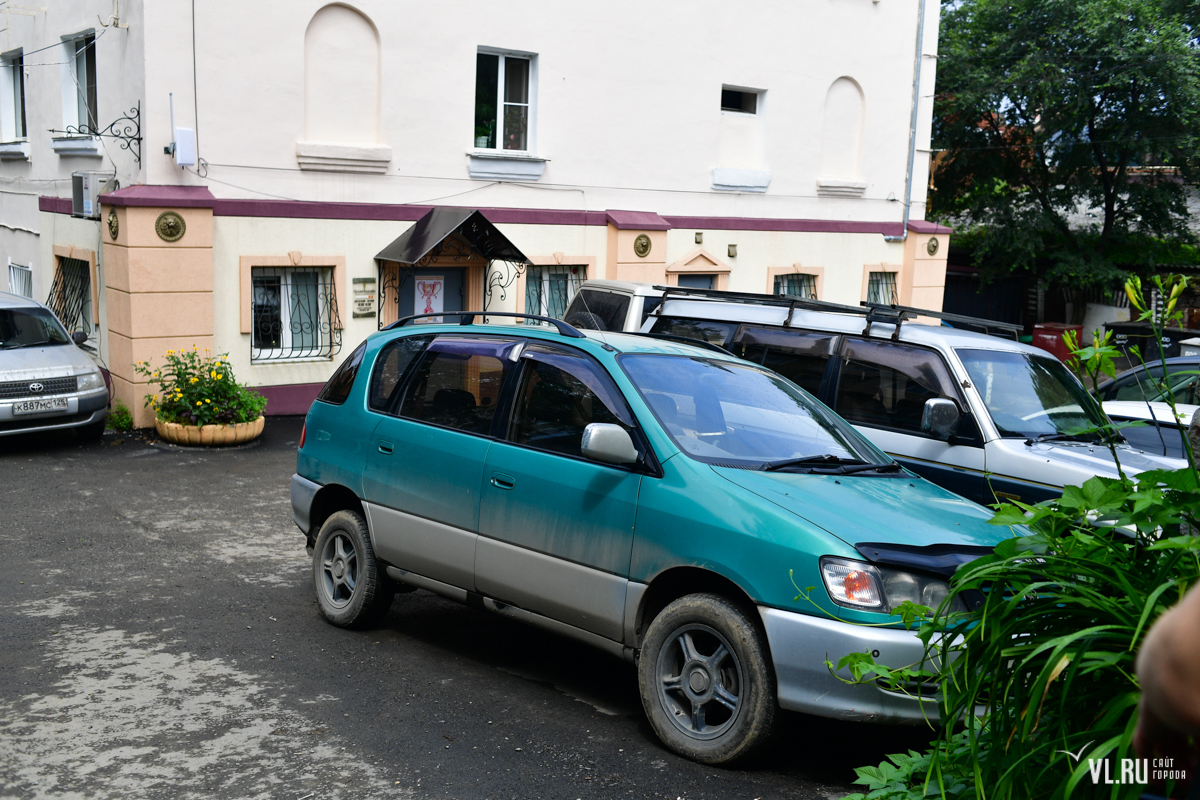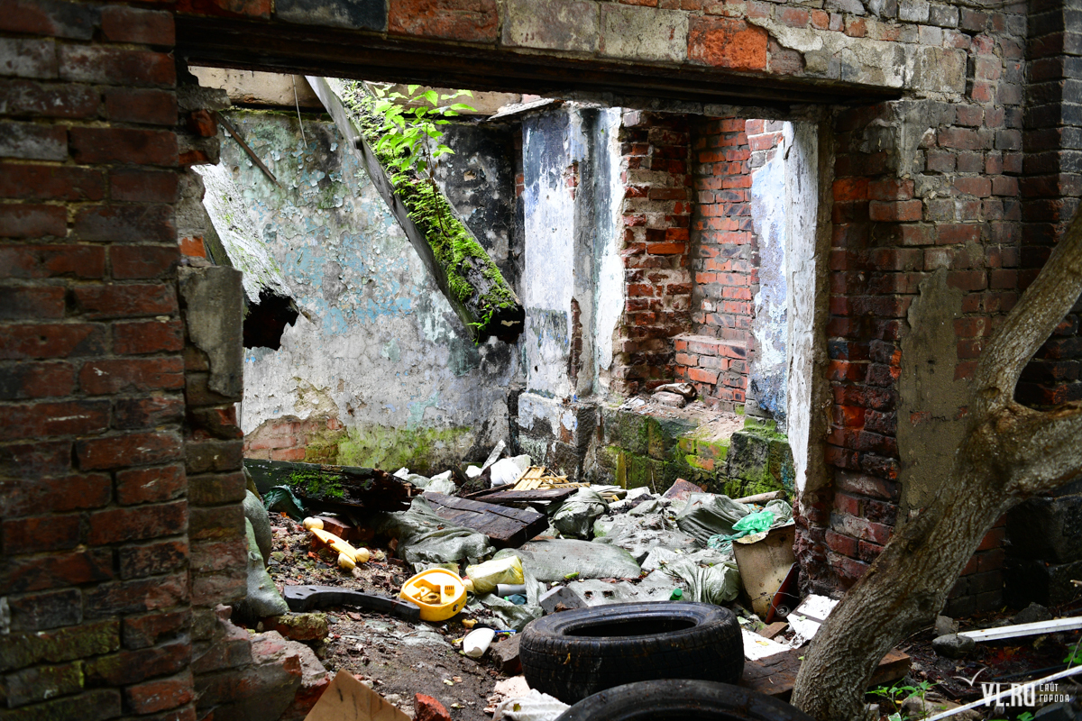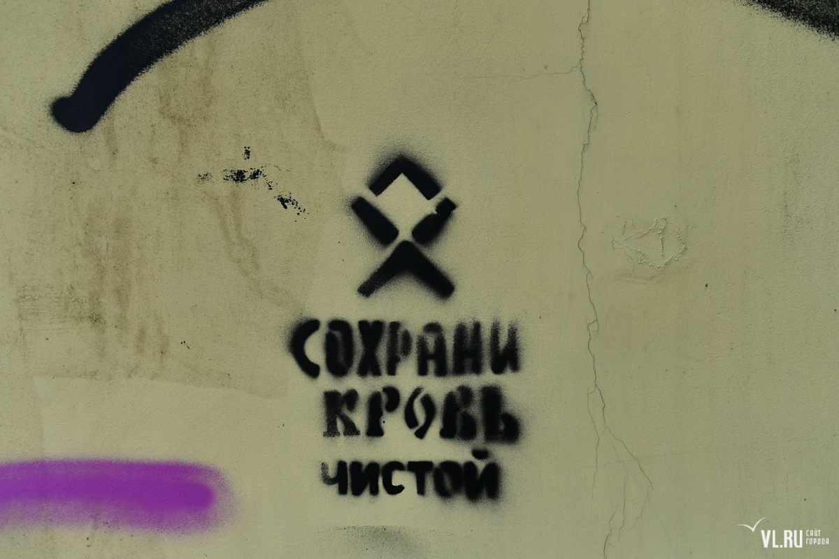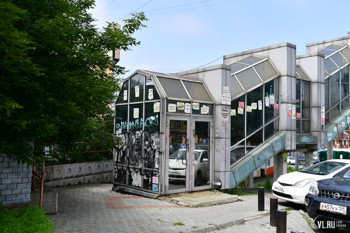 Фасад тоже нуждается в ремонте – штукатурка во многих местах осыпалась, не обошлось и без уродливых граффити на стенах и дверях. Встречаются надписи, сделанные по трафарету. Они очень напоминают экстремистские лозунги. Вы будете смеяться, но вторым собственником здания является управление Министерства внутренних дел Российской Федерации по Приморскому краю.
