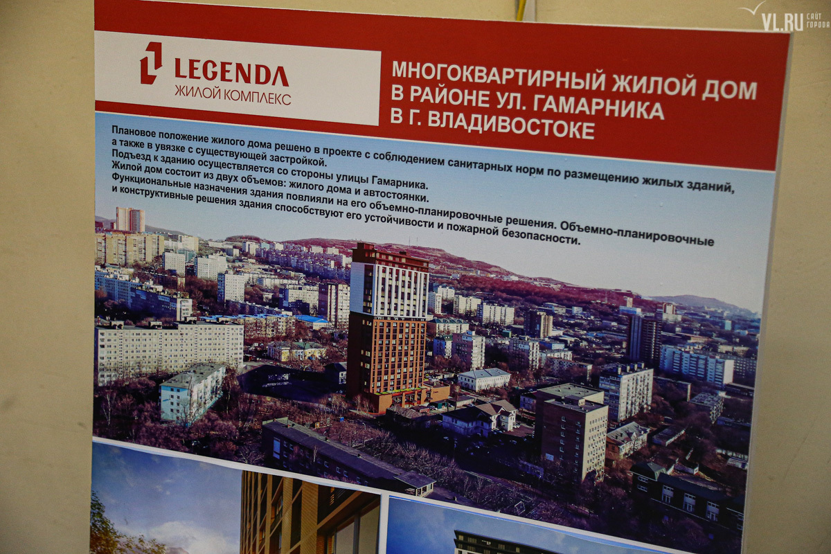 ООО «Специализированный застройщик "ВладСтройГрупп"» взяло в долгосрочную аренду участок площадью 29,6 сотки на Гамарника, 18-б около полутора лет назад. Раньше здесь был барак, но его снесли, с 2017 по 2019 год на участке устроили парковку, которой пользовались жители всего района. Но в мае автомобилистов с объекта выгнали: застройщик объявил, что теперь земля его и здесь будет 27-этажный жилой комплекс Legenda. И парковка здесь тоже будет, на 135 машино-мест, но только для жителей нового дома. Паркинг займет первые четыре этажа здания. Новостройка появится между двумя бараками и общественным туалетом. Эту новость люди восприняли с возмущением.