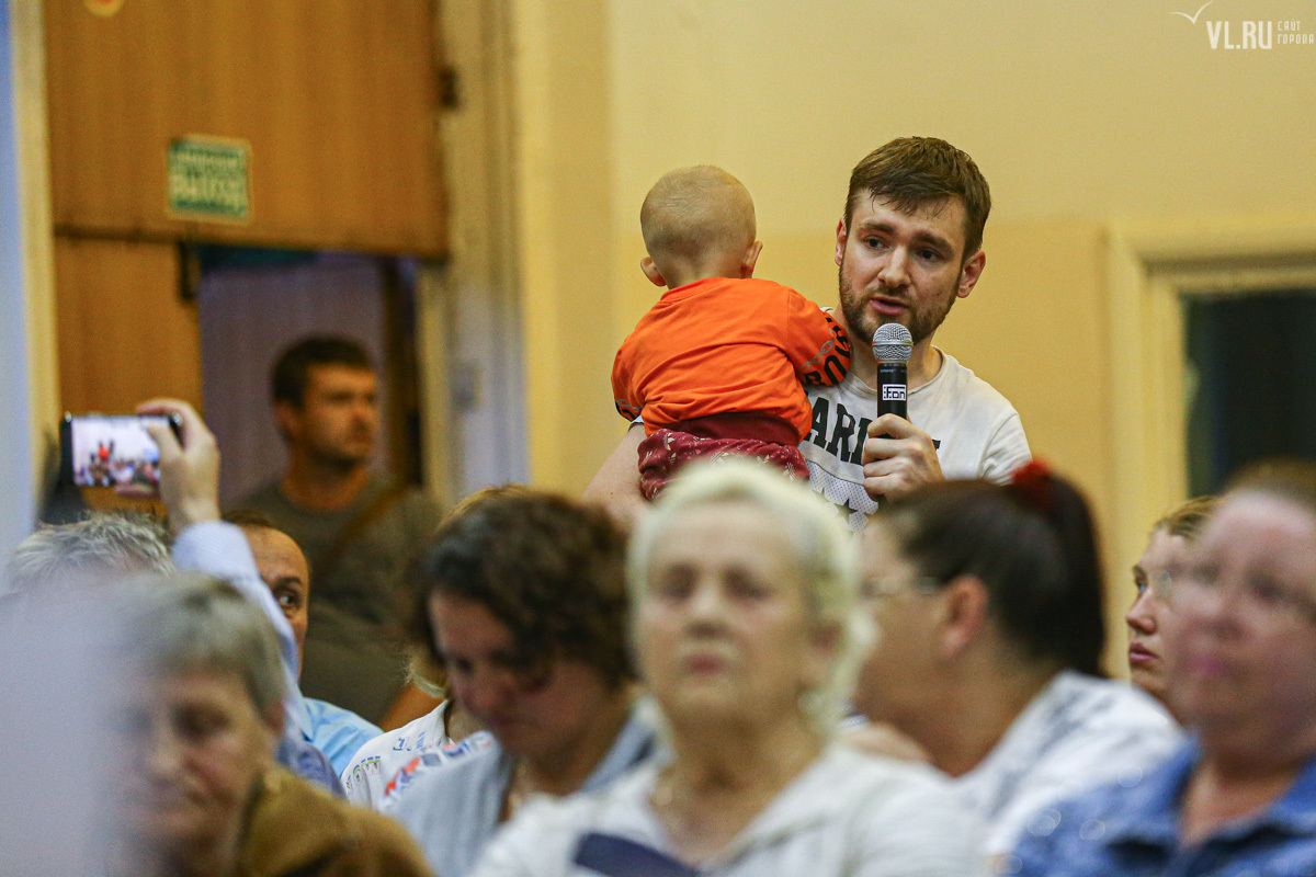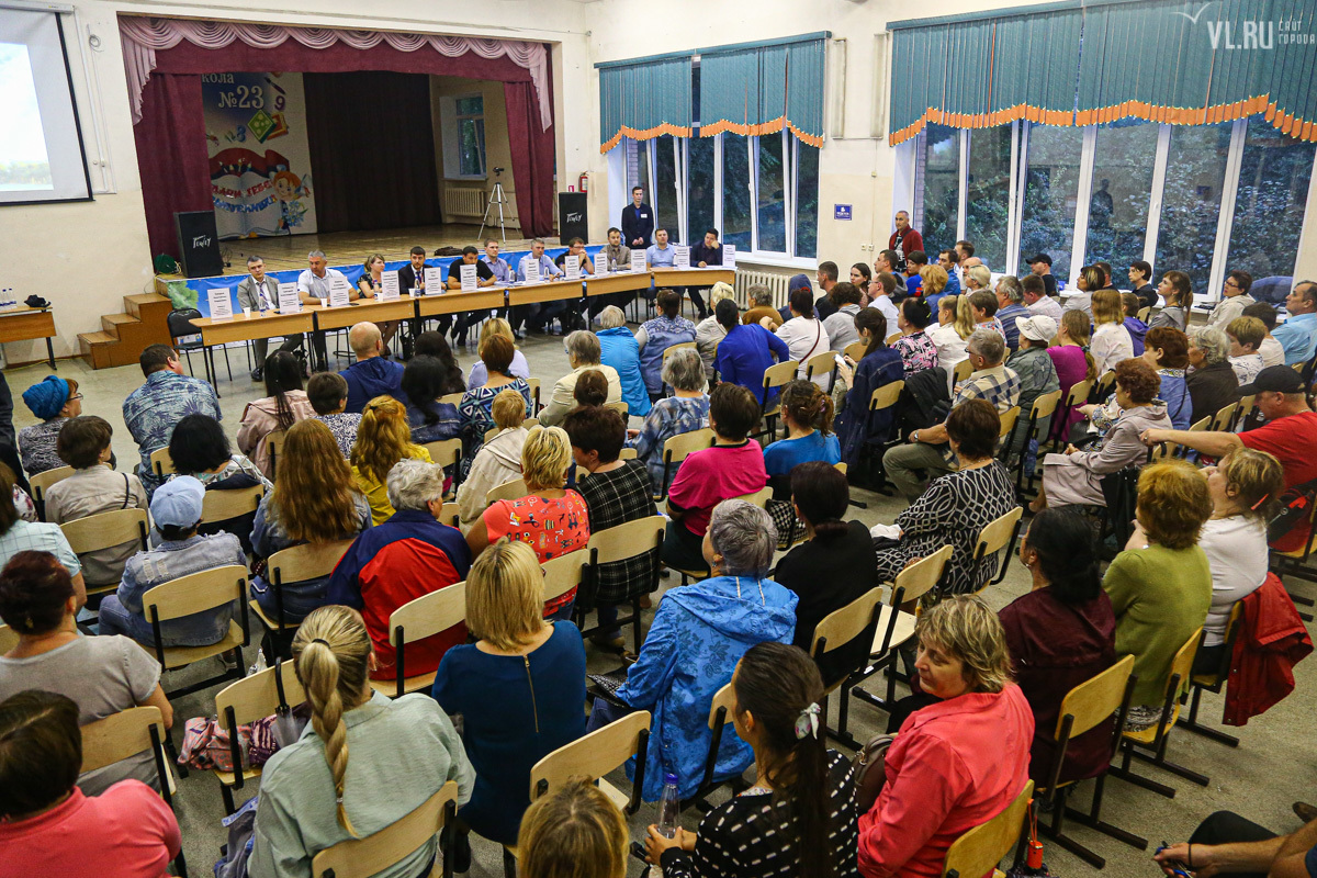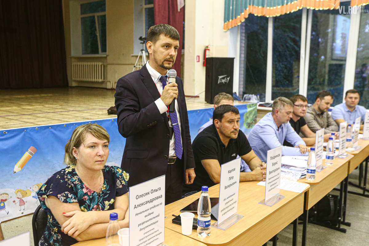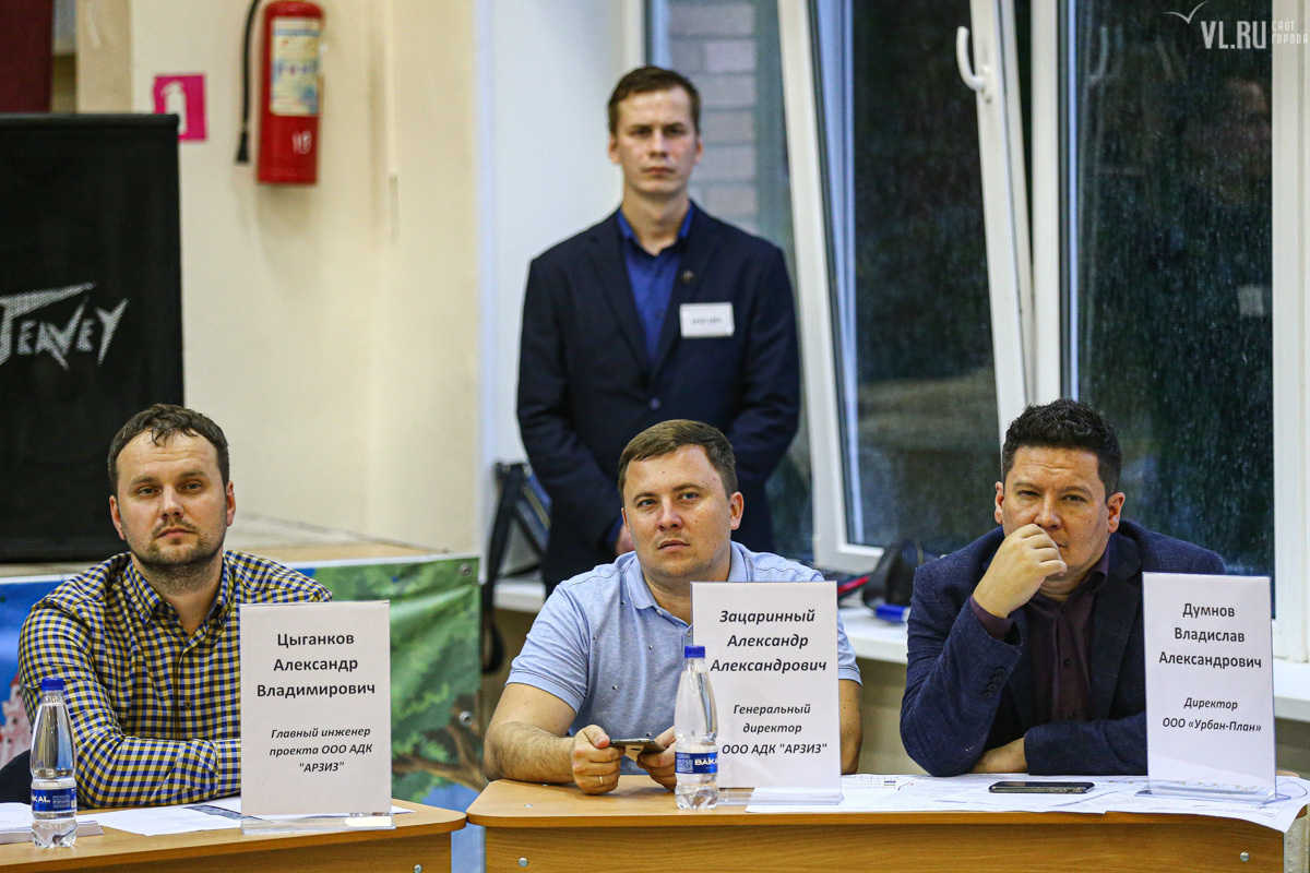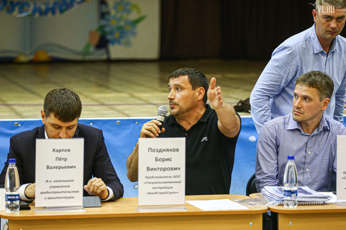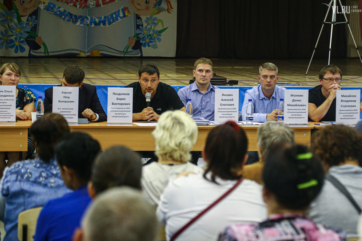 15 августа представители застройщика пригласили горожан на общественное обсуждение проекта – около сотни человек собрались в актовом зале школы № 23. Представитель «ВладСтройГрупп» Борис Поздняков уже было представил главного инженера проекта Александра Цыганкова, и тот начал рассказывать про будущее здание, но речь застройщиков прервали. Жительница Гамарника Ольга Трегубова не выдержала, вскочила и начала кричать на застройщика.