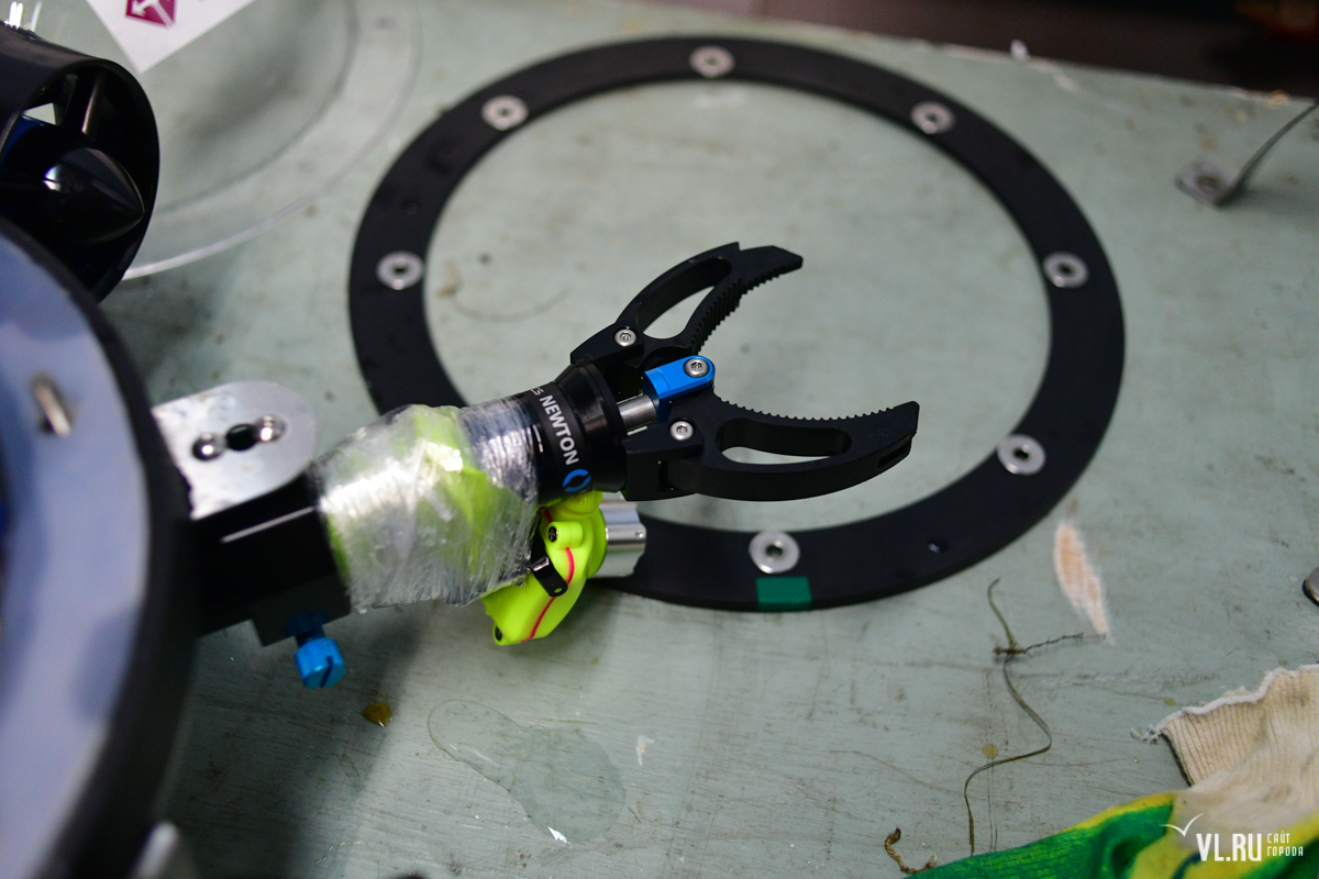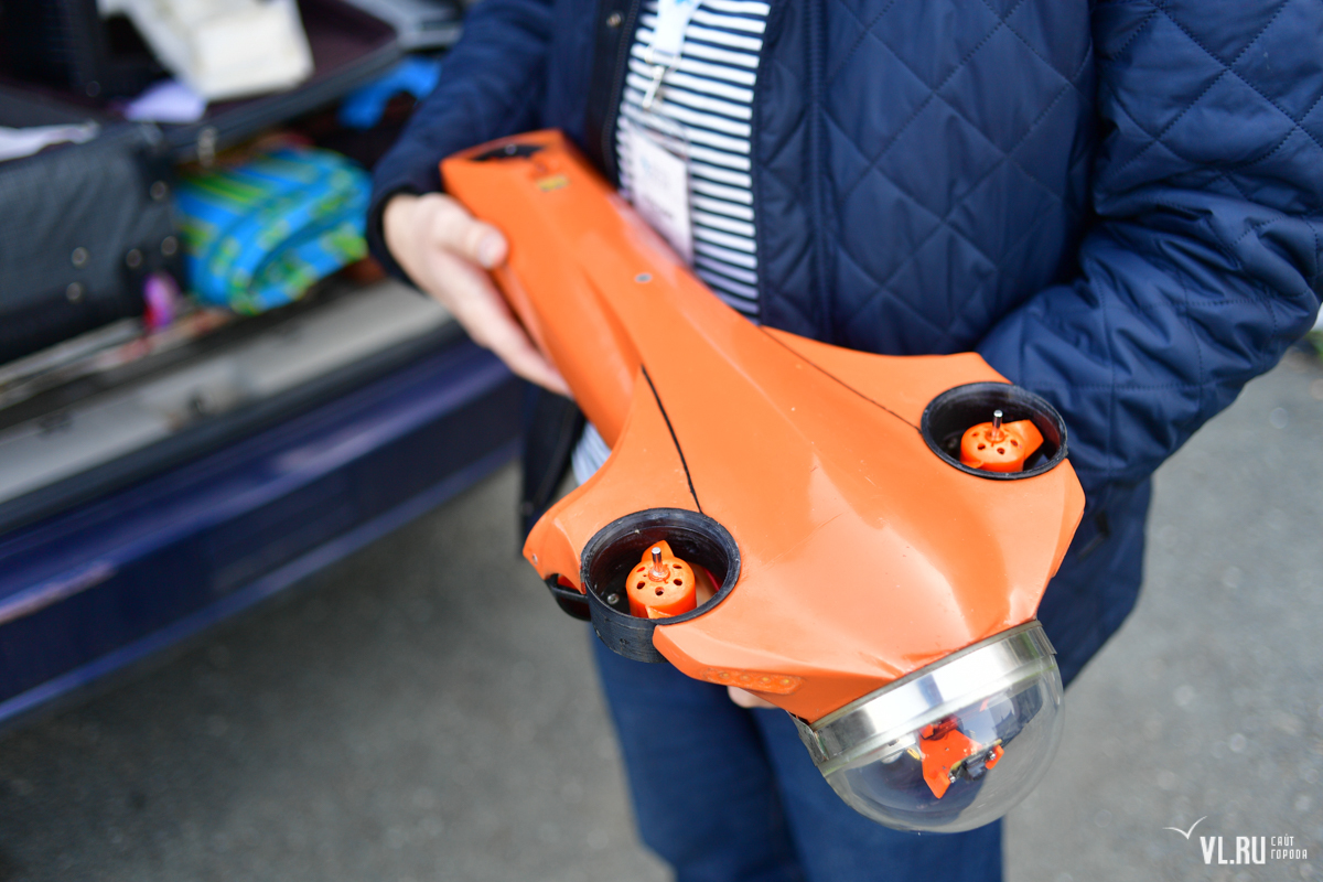 Командам из Владивостока оказалось несколько проще – работать в условиях моря им уже привычно. Так, команда компании «Современные морские технологии» продемонстрировала своего подводного дрона, с помощью которого можно находить и вытаскивать на поверхность затонувшие объекты.