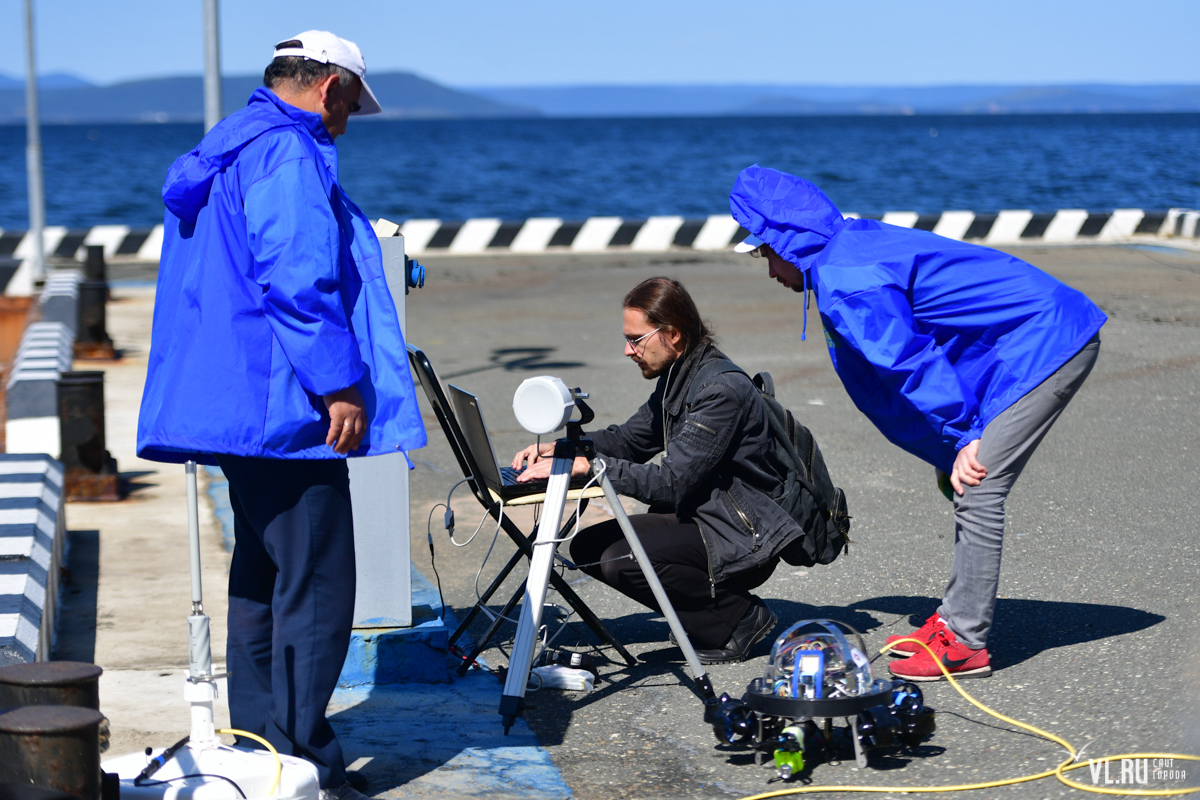 Астраханская научно-исследовательская компания ООО «Акваспецсервис» привезла во Владивосток телеуправляемый необитаемый подводный аппарат серии «Гном». В родном городе команда проводила соревнования по телеуправляемым аппаратам уже дважды, однако здесь условия оказались другими – вместо бассейна робота нужно погружать в морскую воду, где и видимость хуже, и погодные условия оказывают влияние.