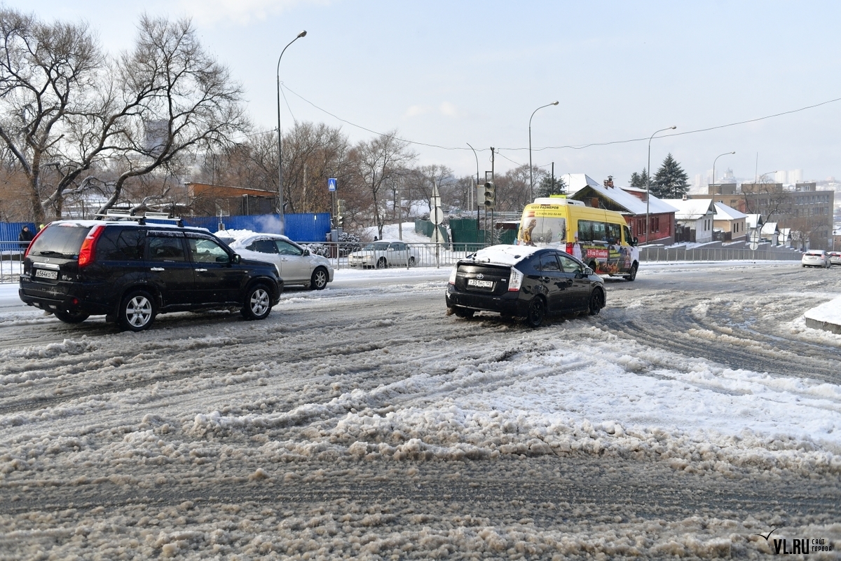 Сегодня, 18 ноября, на дорогах Владивостока небезопасно. Ливший ночью дождь замерз, рано утром его стало засыпать снегом, больше похожим на ледяную крошку. На дорогах образовался снежно-ледяной накат, улицы сковали пробки.