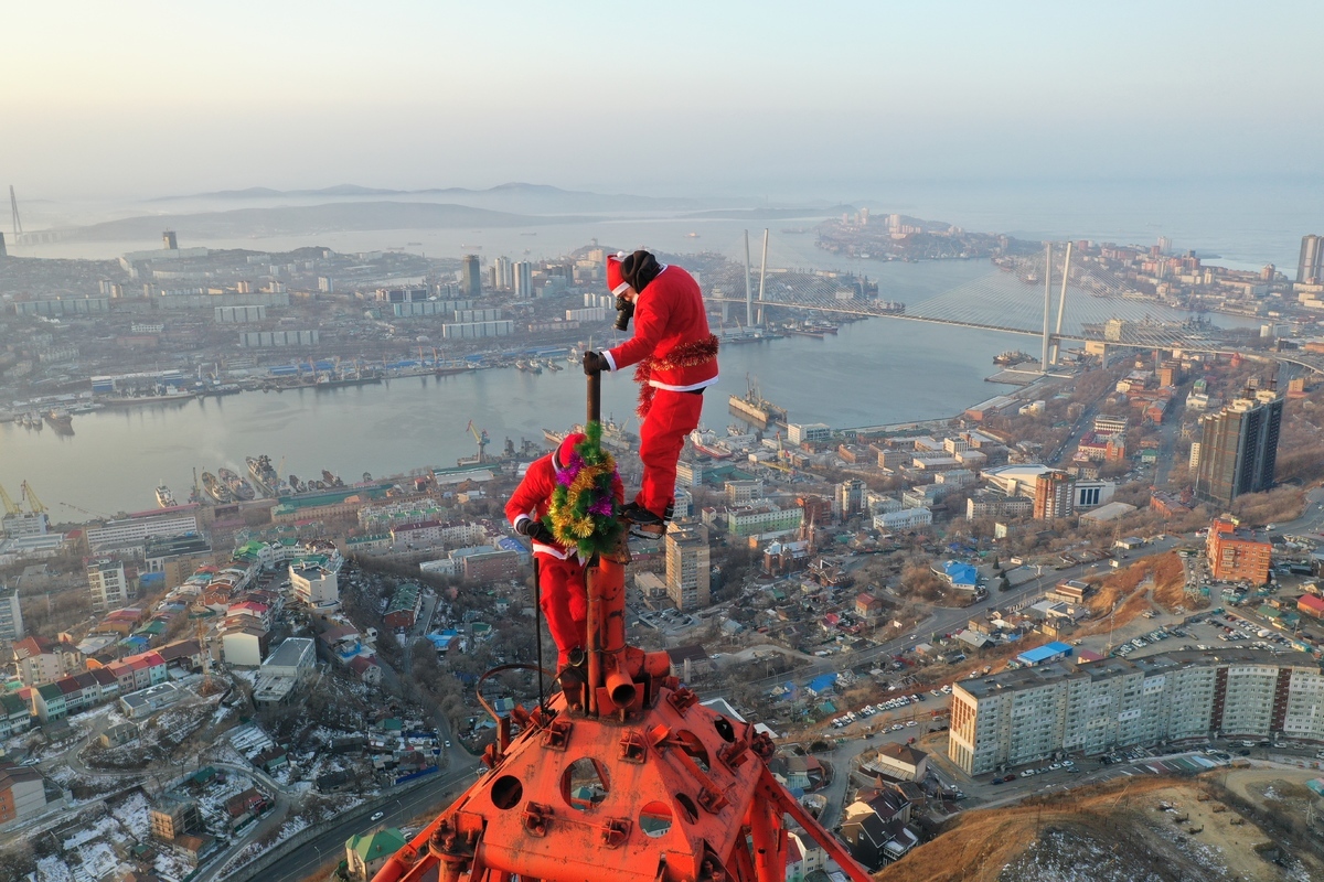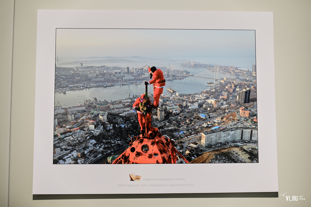 В номинации «События» победил «Владивосток и Санты» Ильдара Батршина – это кадр с установки «самой высокой ёлки» во Владивостоке на сопке Буссе.