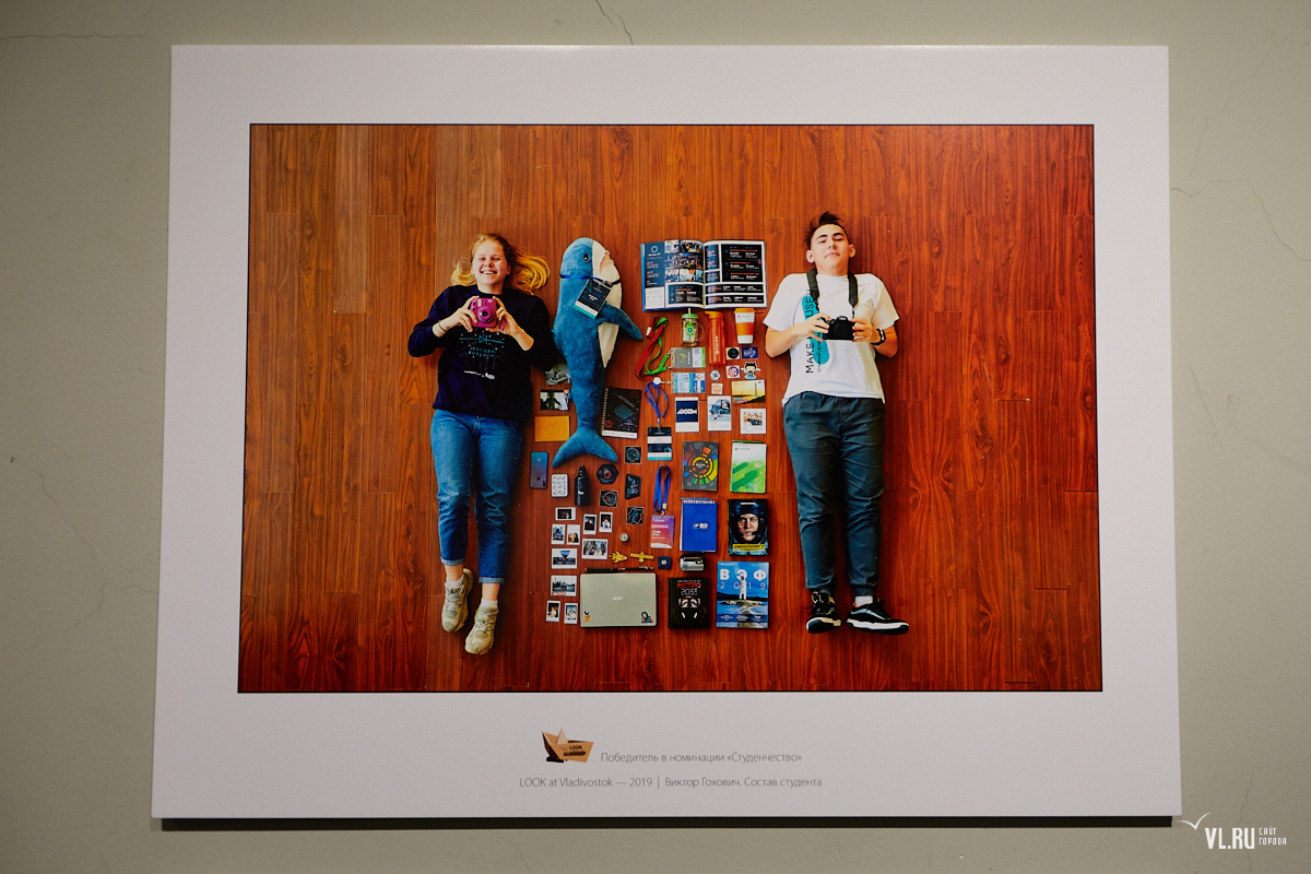 Среди других призёров – корабли около штаба ТОФ, подводная лодка с высоты птичьего полёта, устремляющаяся вдаль, старые разваливающиеся дома на фоне Золотого моста (номинация «Старое и новое»), репетиция спектакля в Театре молодёжи. «Состав студента» (из этой номинации и победитель всего конкурса) показывает то, что в рюкзаке у будущих выпускников вузов.