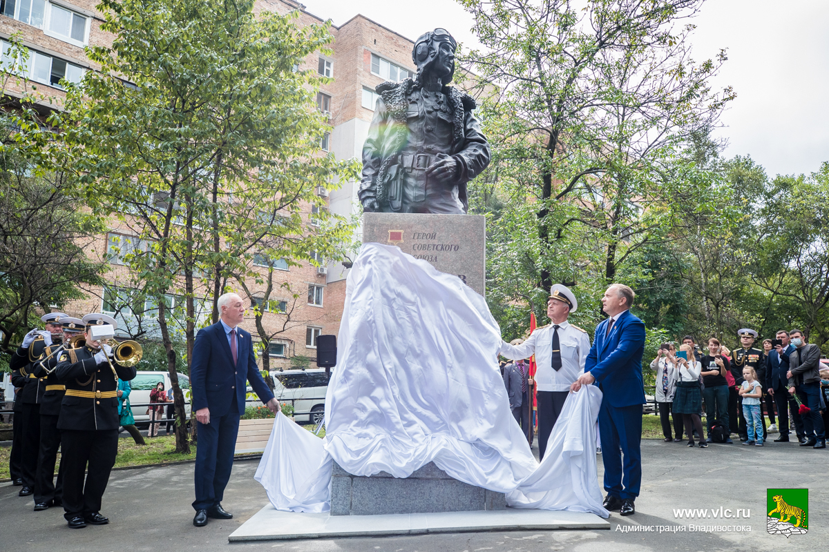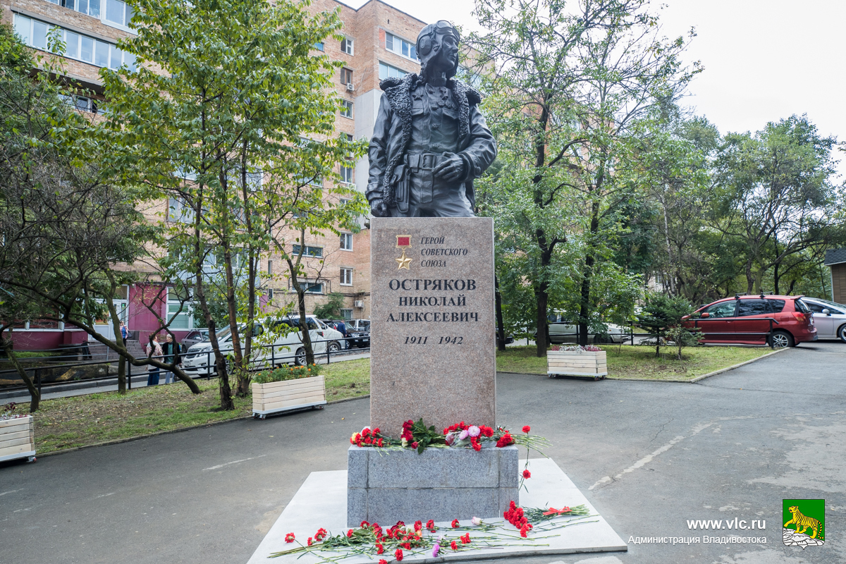 В пятницу, 18 сентября, во Владивостоке открыли памятник Герою Советского Союза, генерал-майору Николаю Острякову – торжественная церемония прошла в сквере, который носит имя легендарного лётчика. На открытии скульптуры авторства владивостокского художника Ильи Топчего присутствовали представители администрации и Думы города, ветераны и военнослужащие, воспитанники патриотических клубов, общественники и местные жители.
