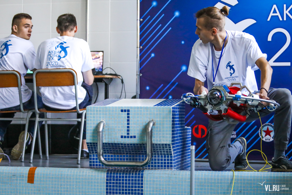 Во Владивостоке студенты и курсанты приняли участие в соревнованиях «Аквароботех-2020». Этап всероссийских состязаний провели в бассейне МГУ им. адм. Г. И. Невельского. В четверг, 24 сентября, восемь команд продемонстрировали телеуправляемые необитаемые аппараты, которые должны были маневрировать под водой, крутить вентили, поднимать и прокладывать кабели.