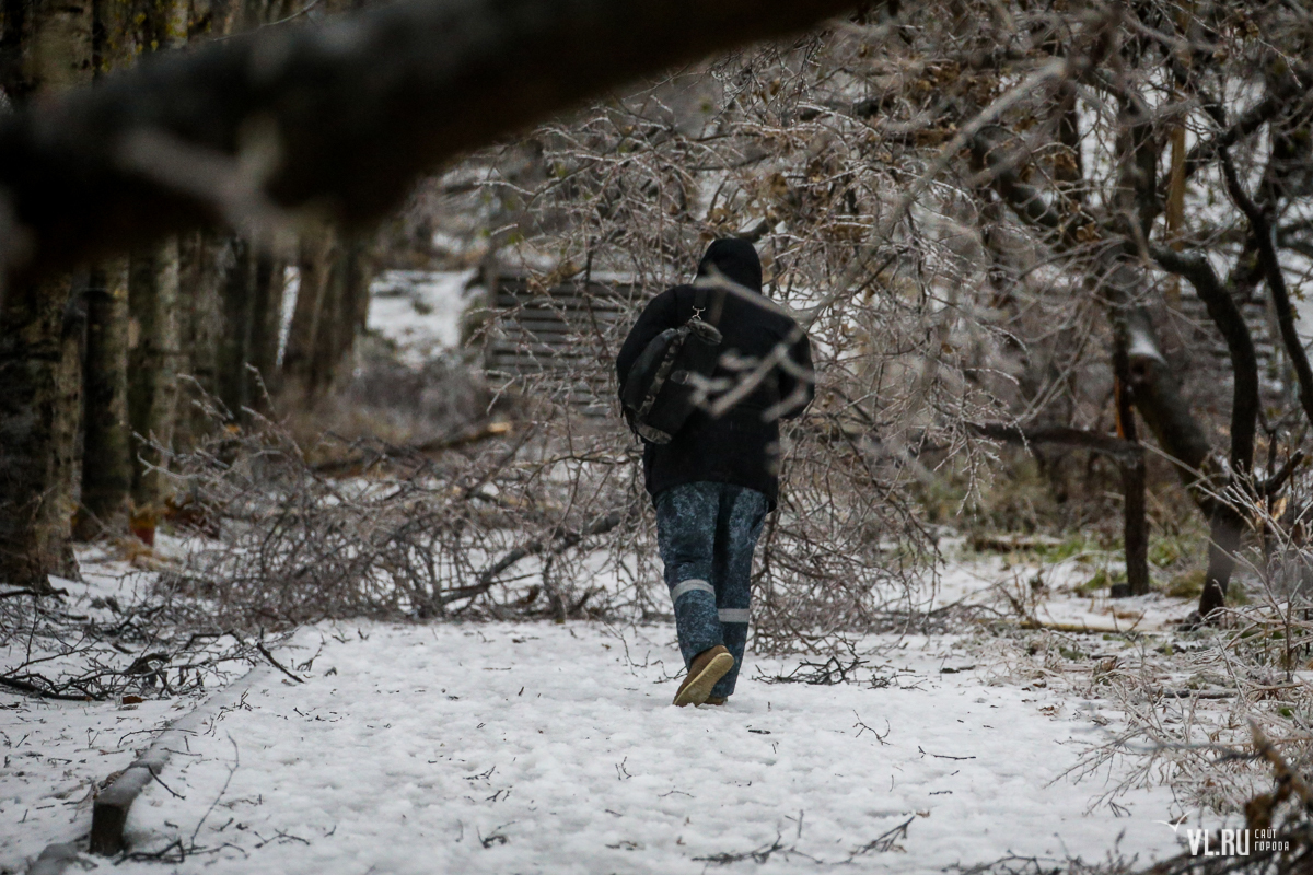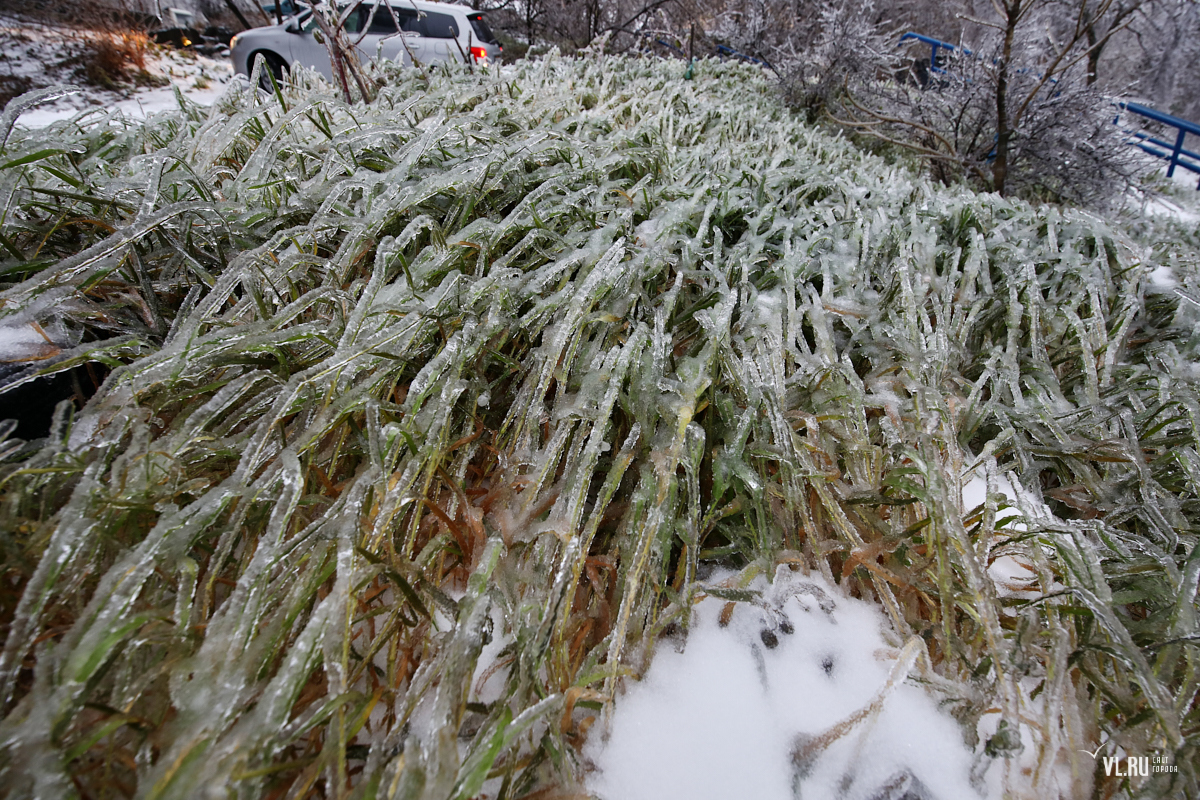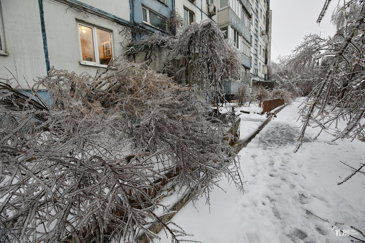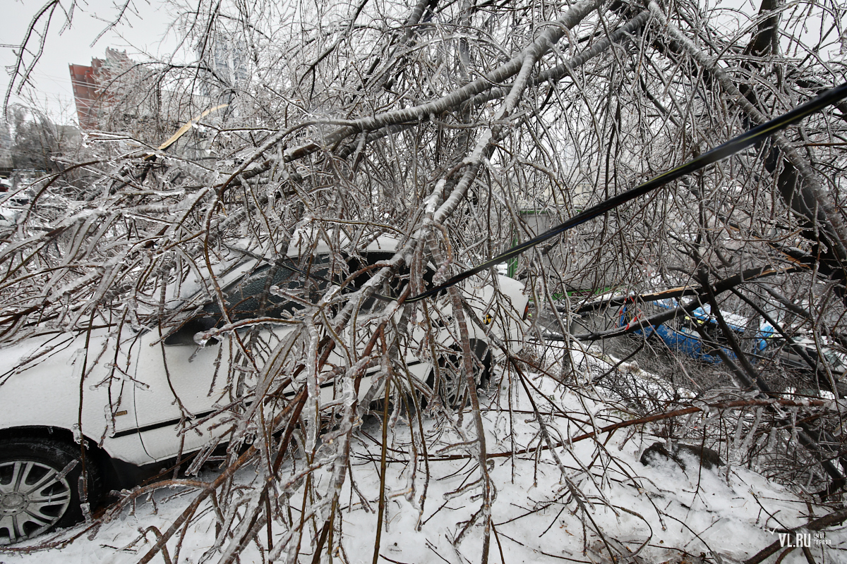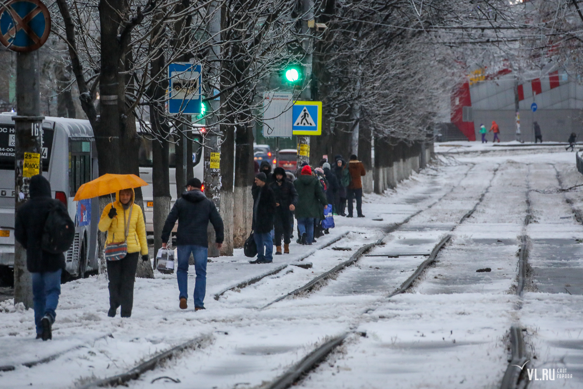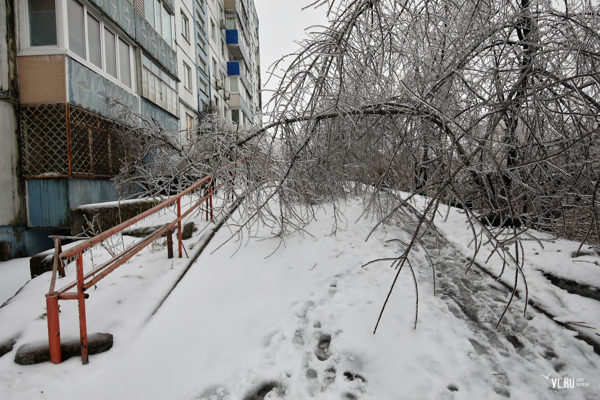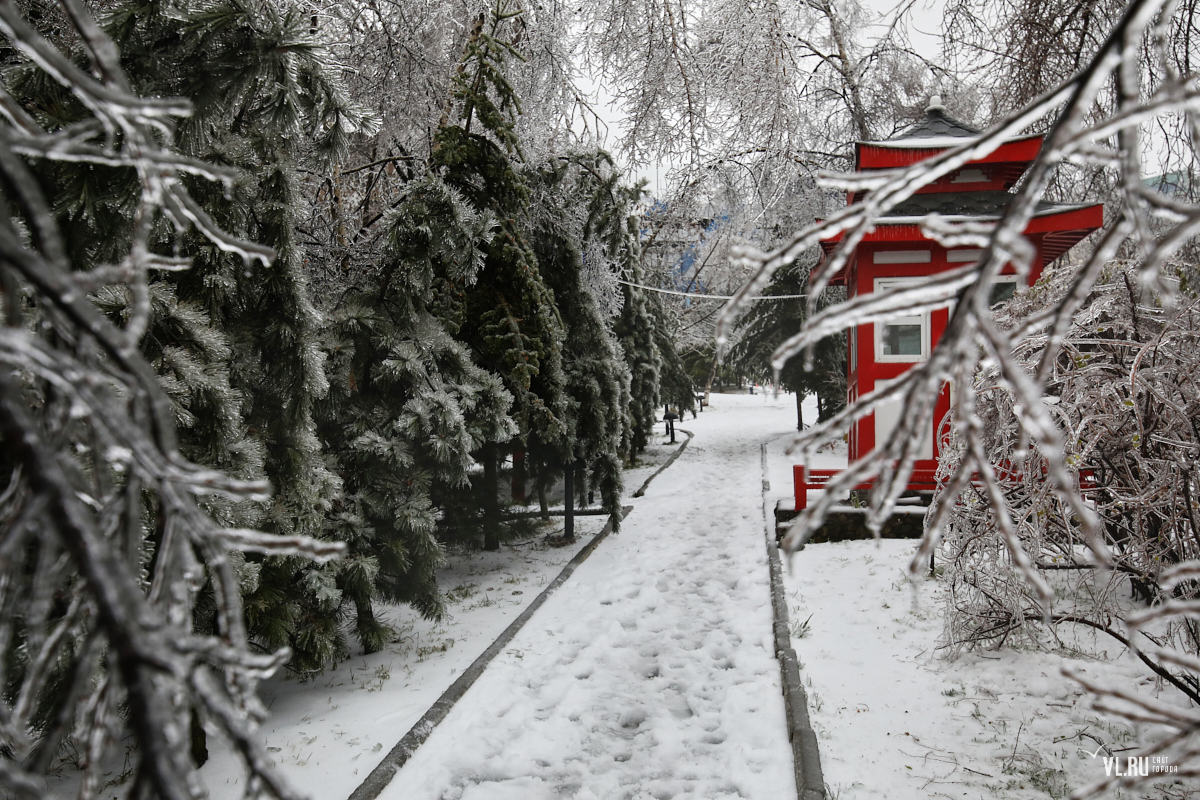Утро четверга, 19 ноября, обернулось для жителей Владивостока неудобствами, характерными для первого снегопада. Из-за спада температур и дождя со снегом дороги и тротуары покрылись коркой льда, превращая путь на работу в испытание, некоторые деревья во дворах и возле главных транспортных артерий замёрзли и начали ломаться, а городские трамваи перестали курсировать.