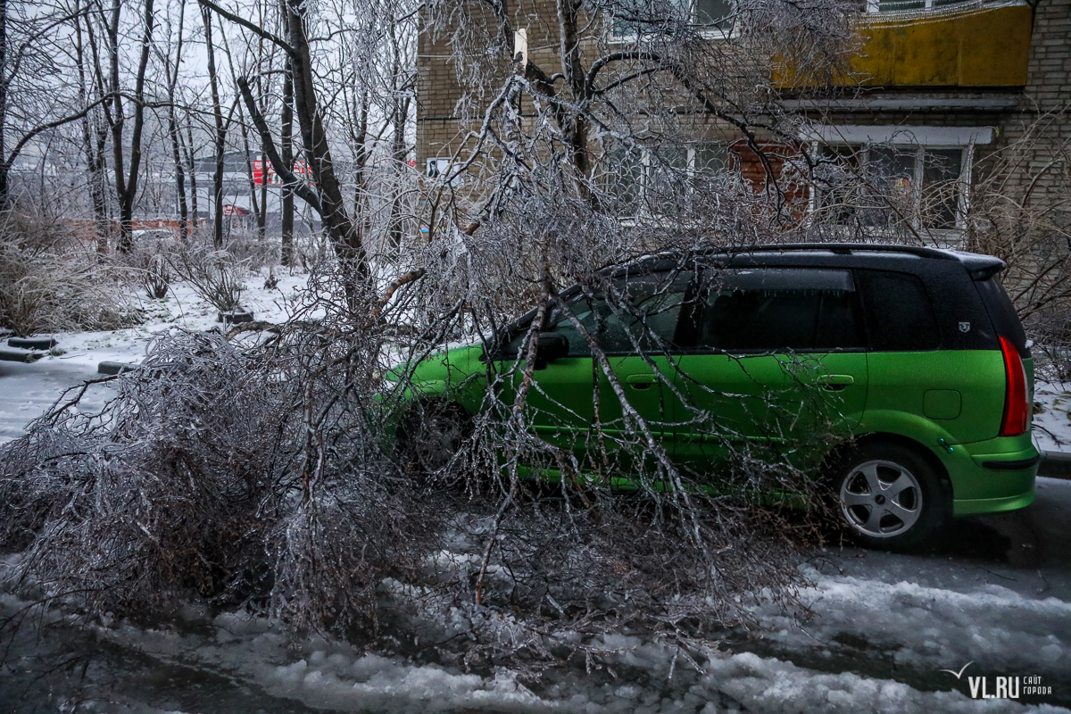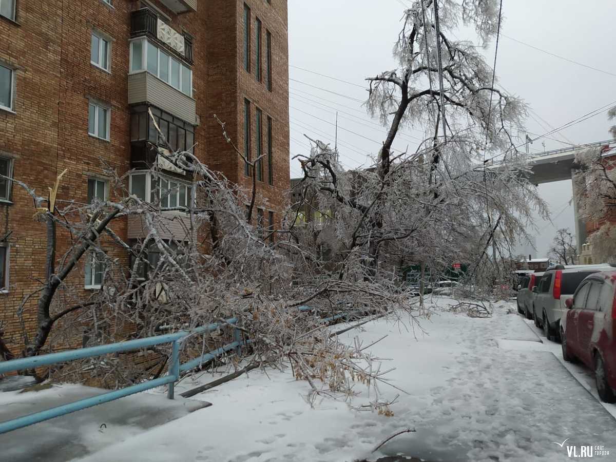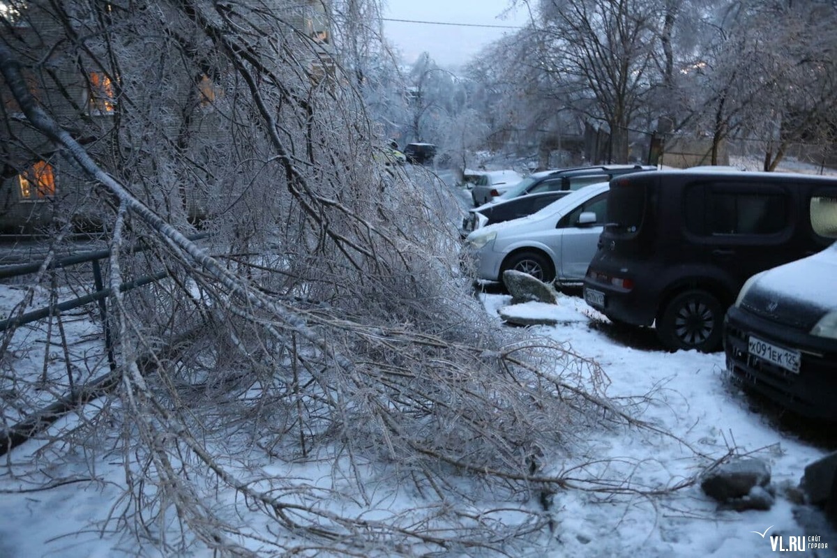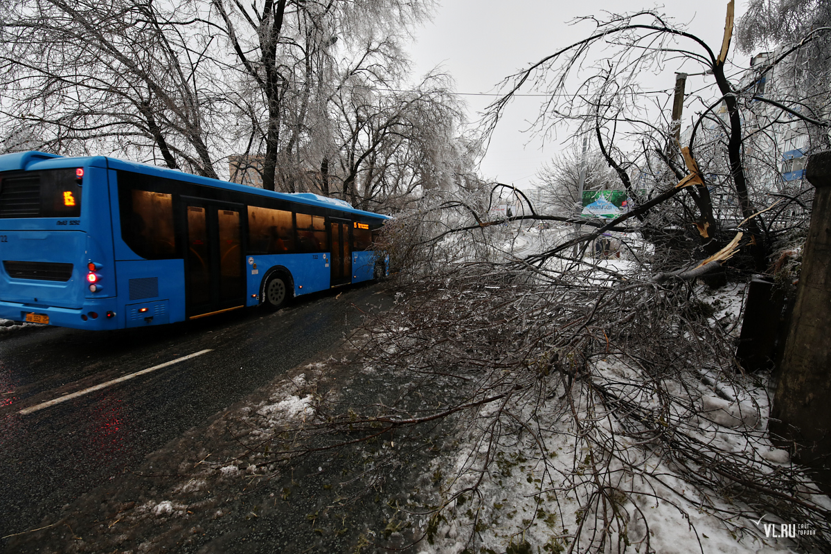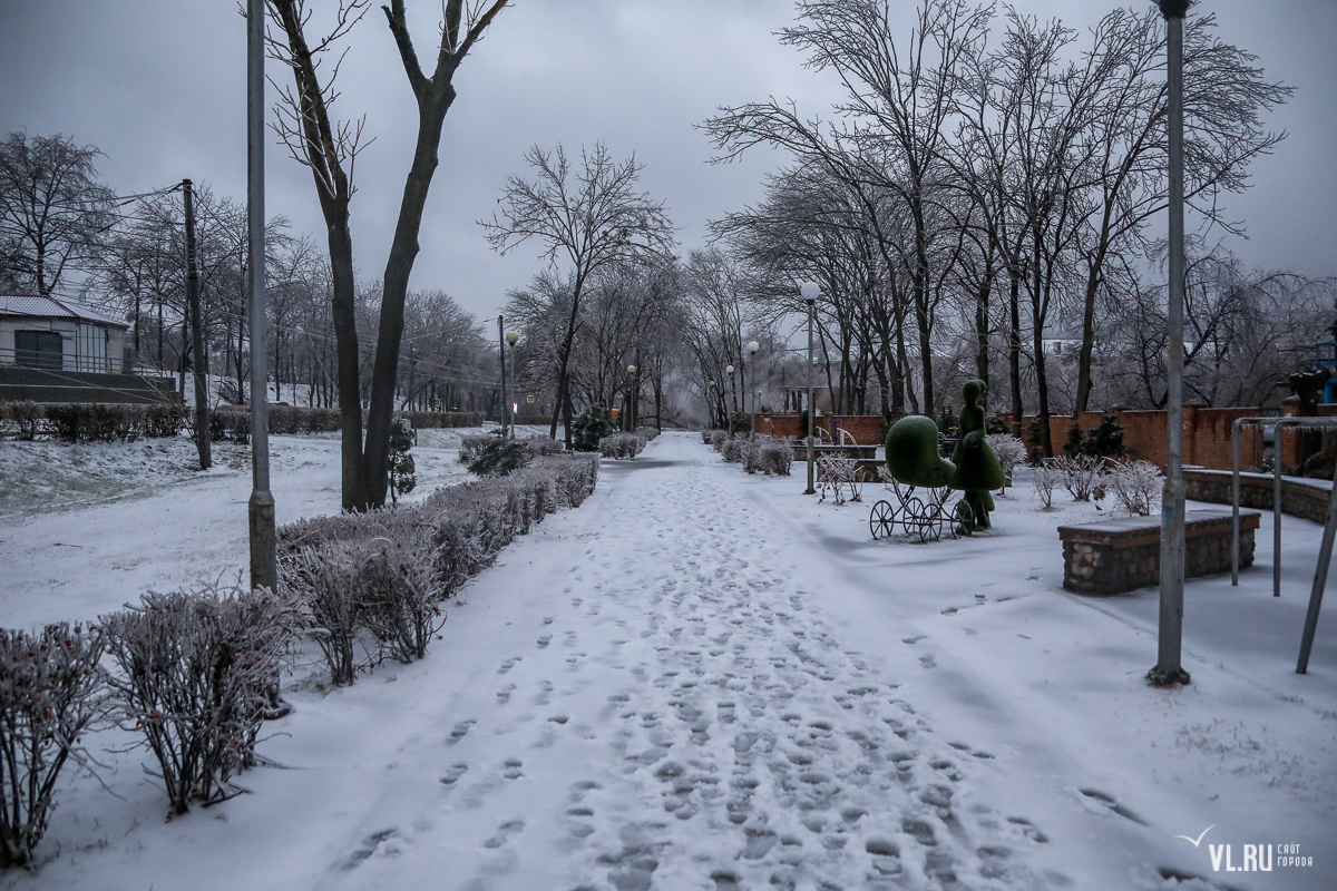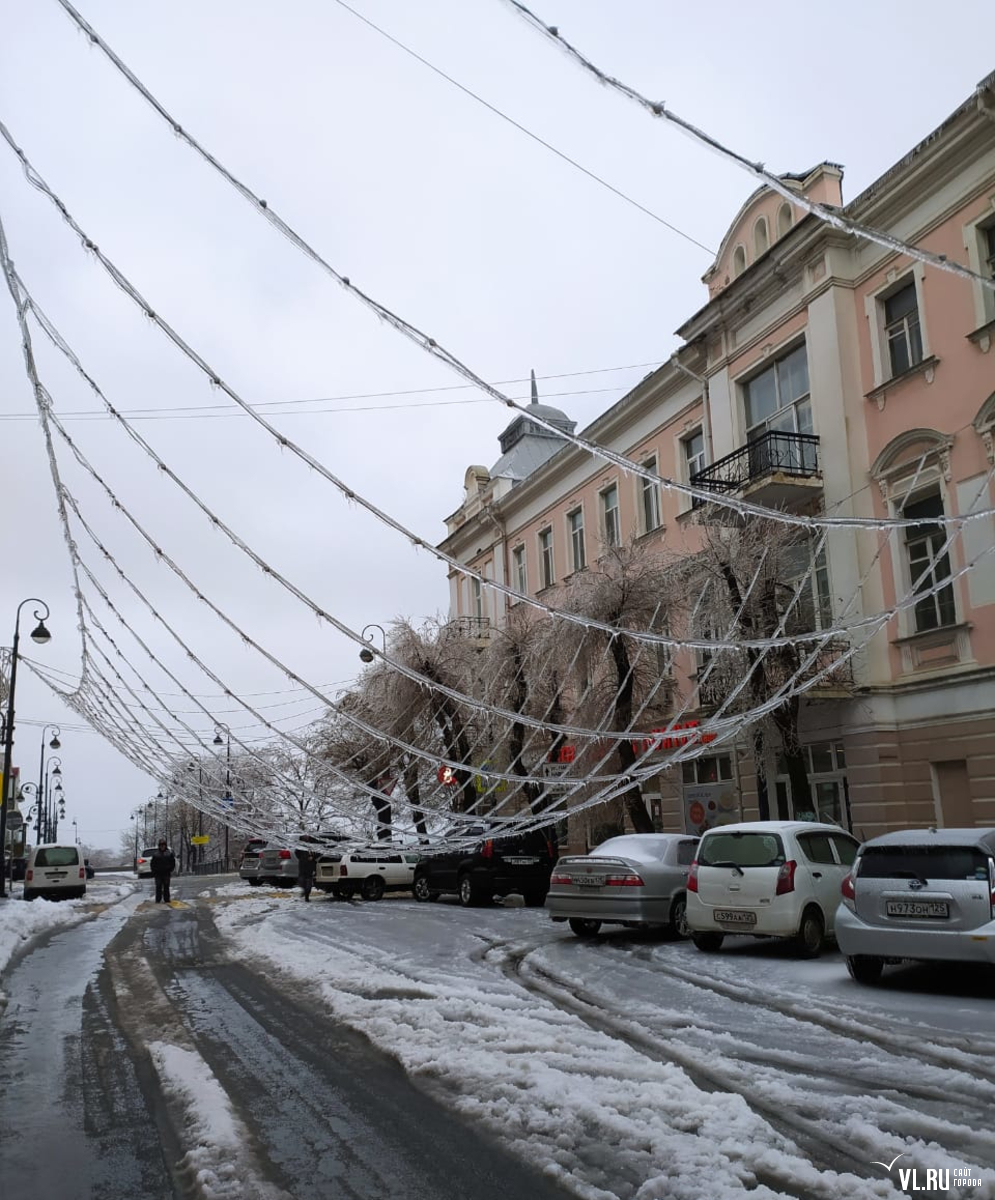 Утро четверга, 19 ноября, обернулось для жителей Владивостока неудобствами, характерными для первого снегопада. Из-за спада температур и дождя со снегом дороги и тротуары покрылись коркой льда, превращая путь на работу в испытание, некоторые деревья во дворах и возле главных транспортных артерий замёрзли и начали ломаться, а городские трамваи перестали курсировать.