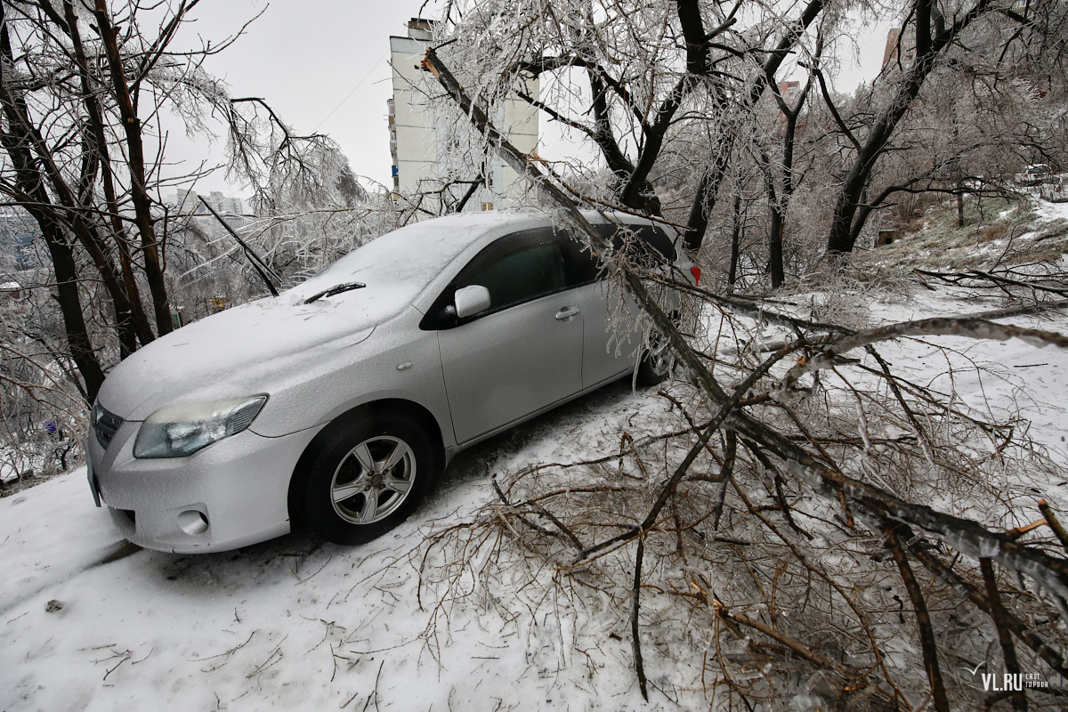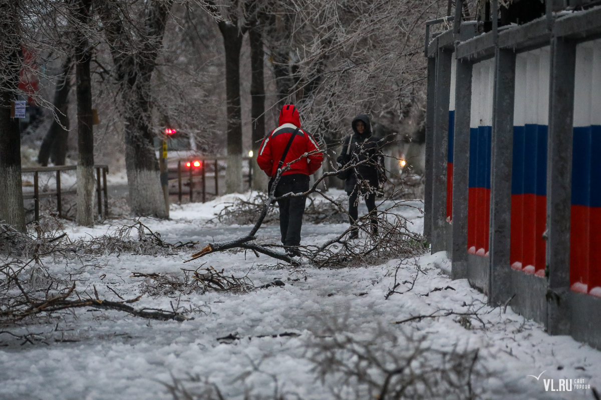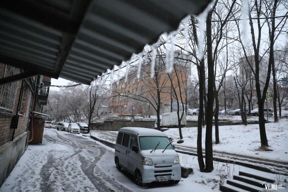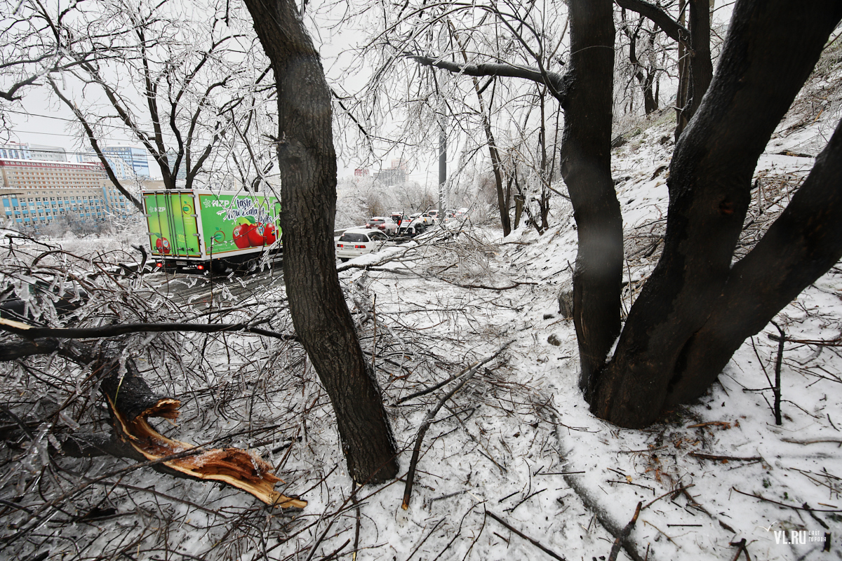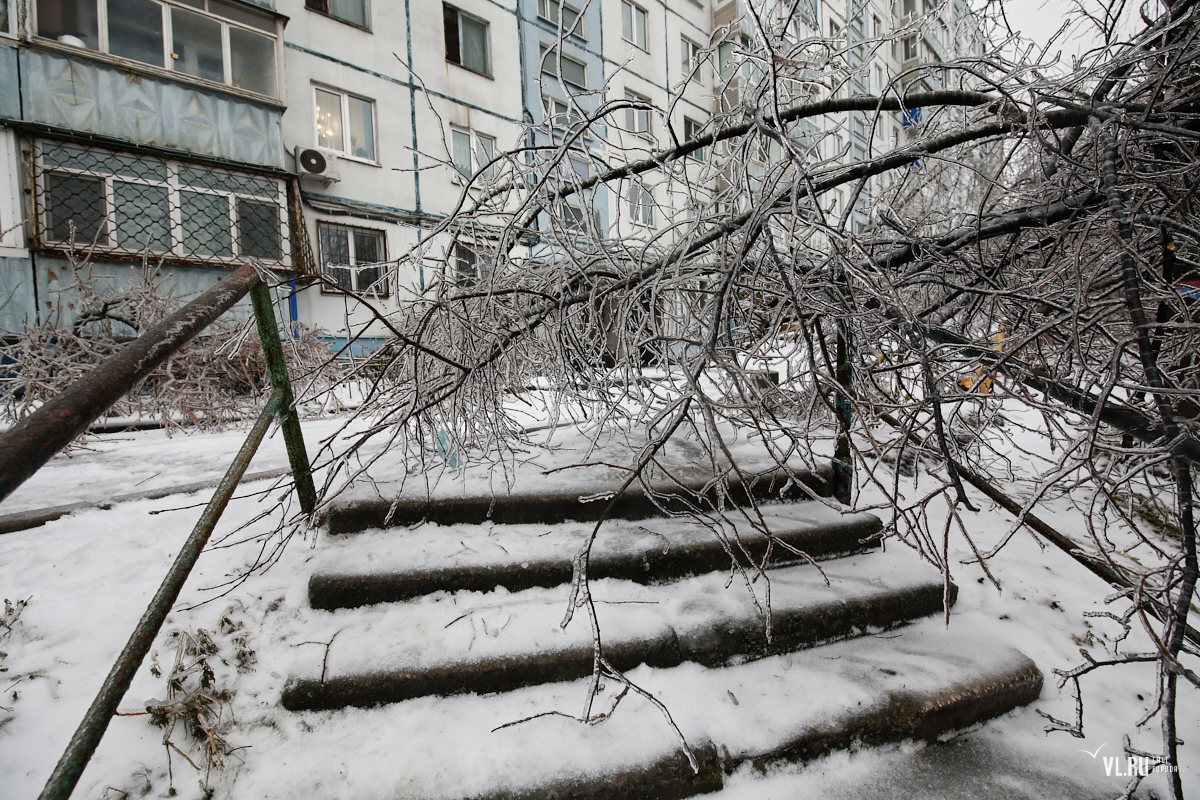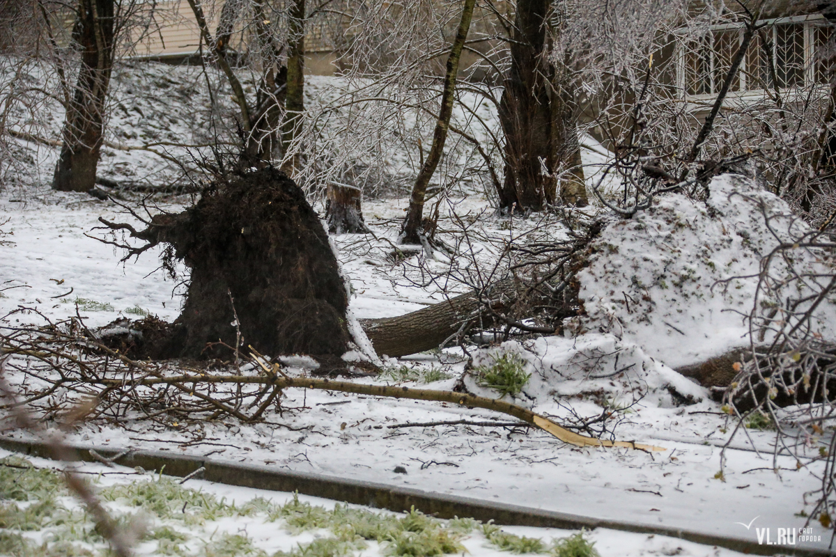 Утро четверга, 19 ноября, обернулось для жителей Владивостока неудобствами, характерными для первого снегопада. Из-за спада температур и дождя со снегом дороги и тротуары покрылись коркой льда, превращая путь на работу в испытание, некоторые деревья во дворах и возле главных транспортных артерий замёрзли и начали ломаться, а городские трамваи перестали курсировать.