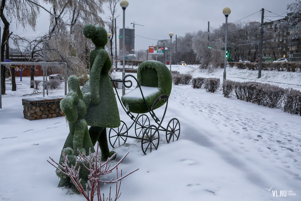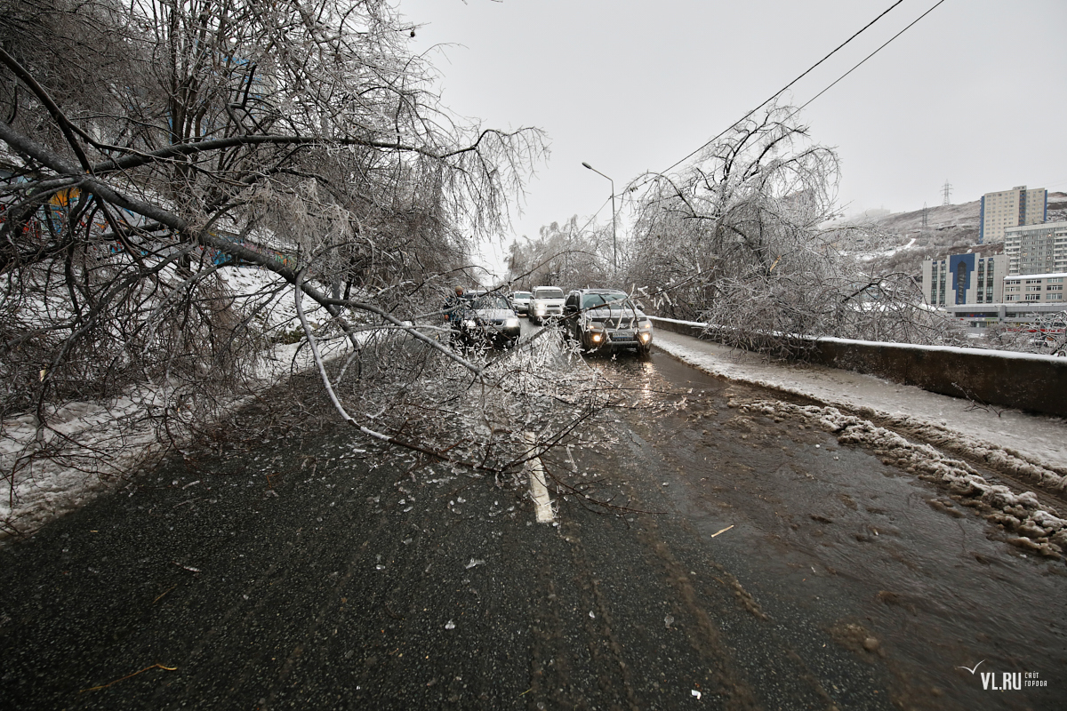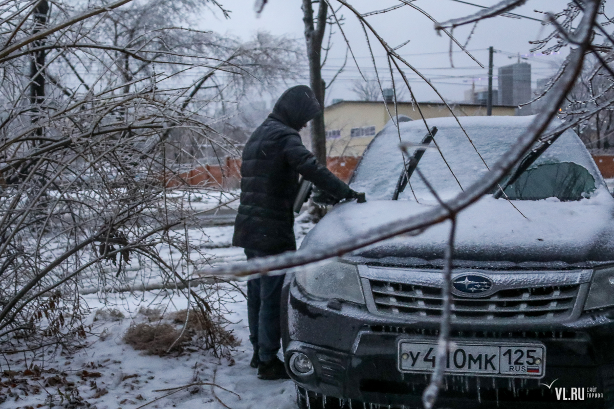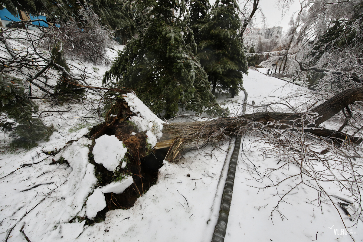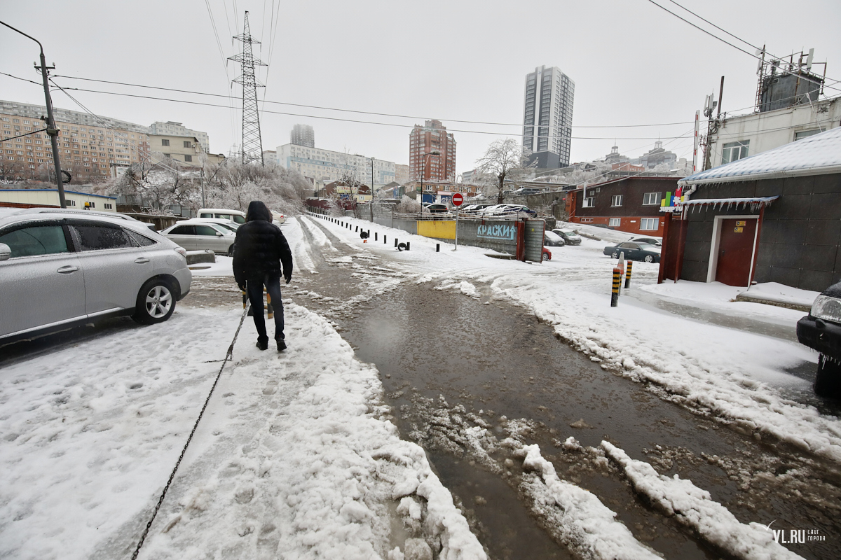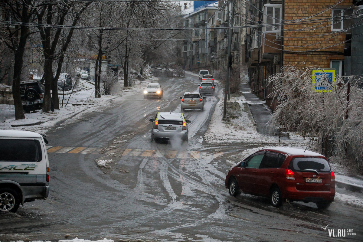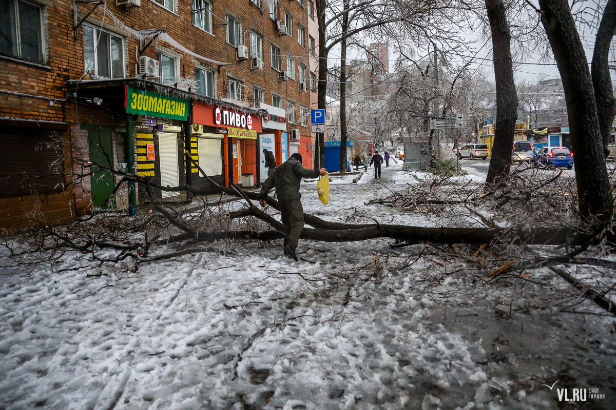 Утро четверга, 19 ноября, обернулось для жителей Владивостока неудобствами, характерными для первого снегопада. Из-за спада температур и дождя со снегом дороги и тротуары покрылись коркой льда, превращая путь на работу в испытание, некоторые деревья во дворах и возле главных транспортных артерий замёрзли и начали ломаться, а городские трамваи перестали курсировать.