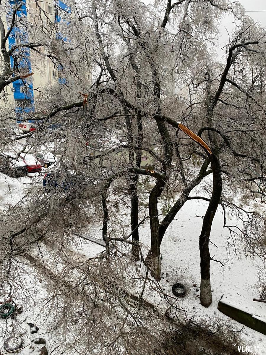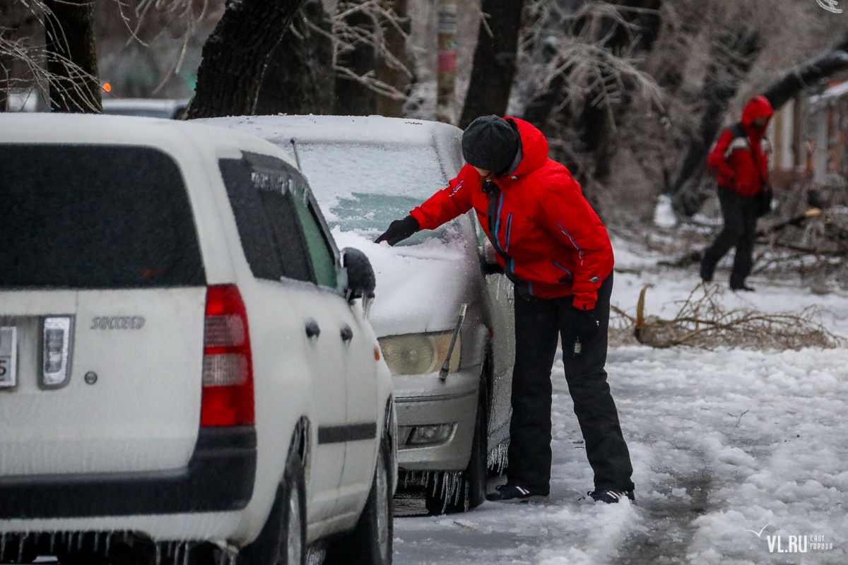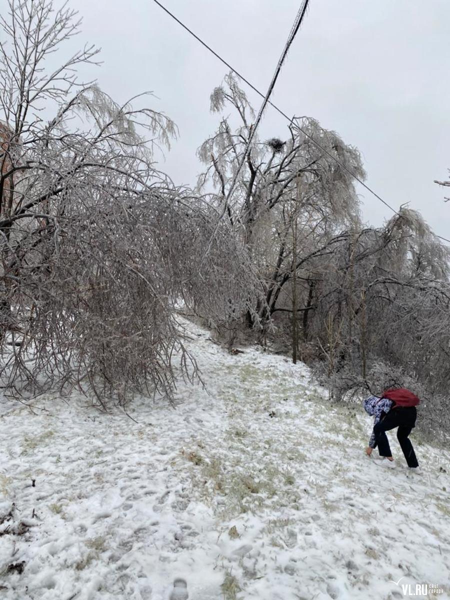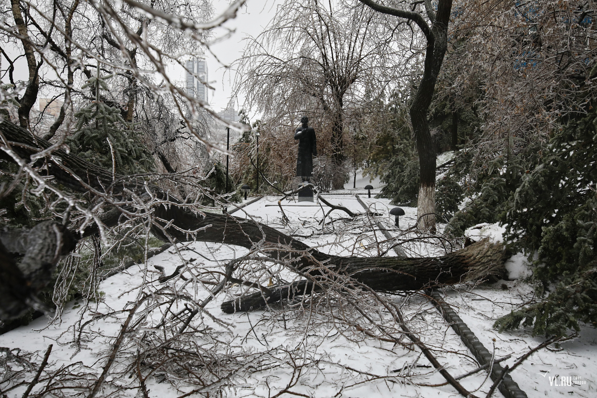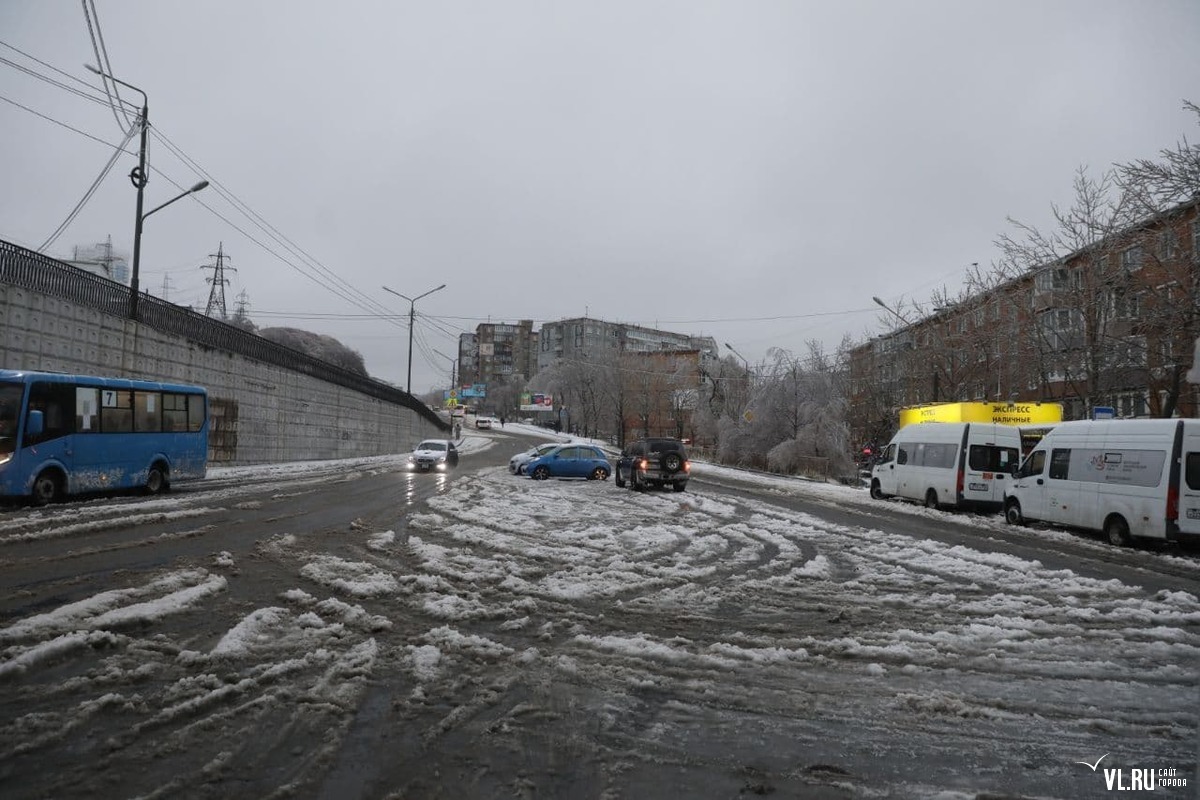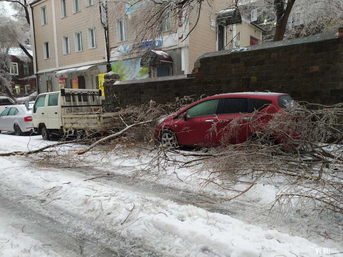 Утро четверга, 19 ноября, обернулось для жителей Владивостока неудобствами, характерными для первого снегопада. Из-за спада температур и дождя со снегом дороги и тротуары покрылись коркой льда, превращая путь на работу в испытание, некоторые деревья во дворах и возле главных транспортных артерий замёрзли и начали ломаться, а городские трамваи перестали курсировать.