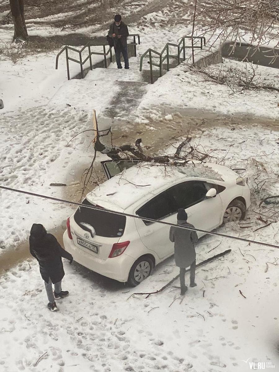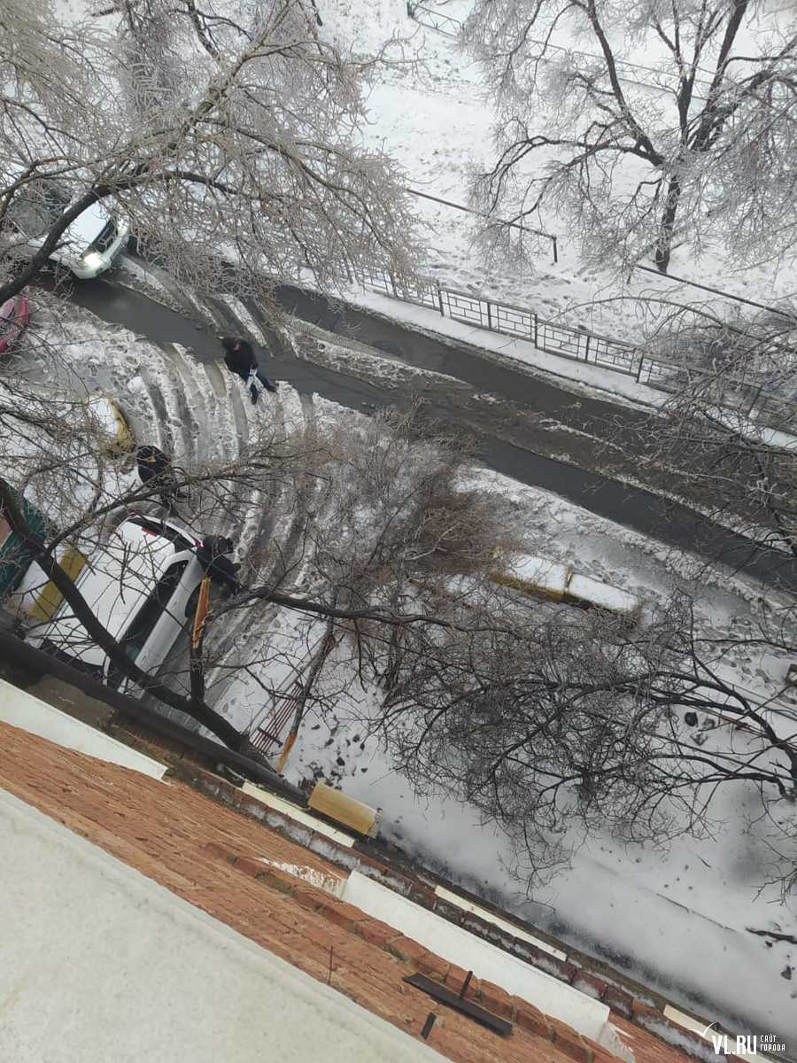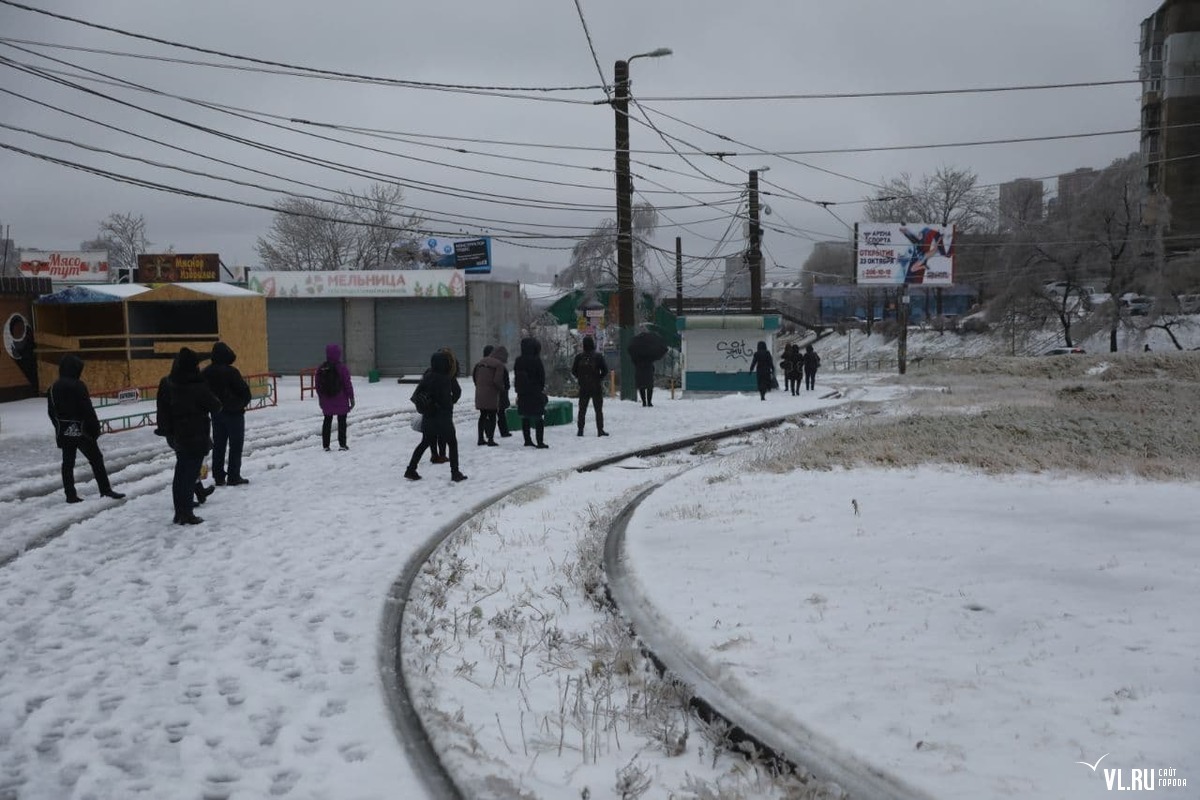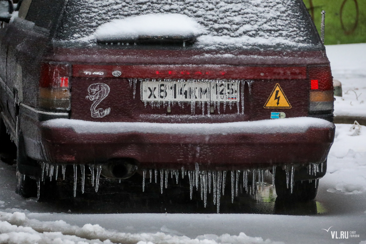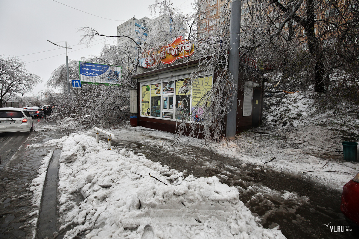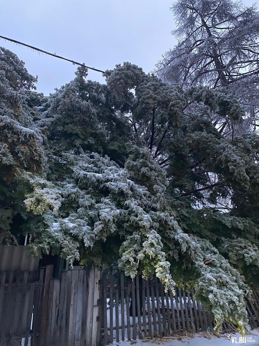 Утро четверга, 19 ноября, обернулось для жителей Владивостока неудобствами, характерными для первого снегопада. Из-за спада температур и дождя со снегом дороги и тротуары покрылись коркой льда, превращая путь на работу в испытание, некоторые деревья во дворах и возле главных транспортных артерий замёрзли и начали ломаться, а городские трамваи перестали курсировать.
