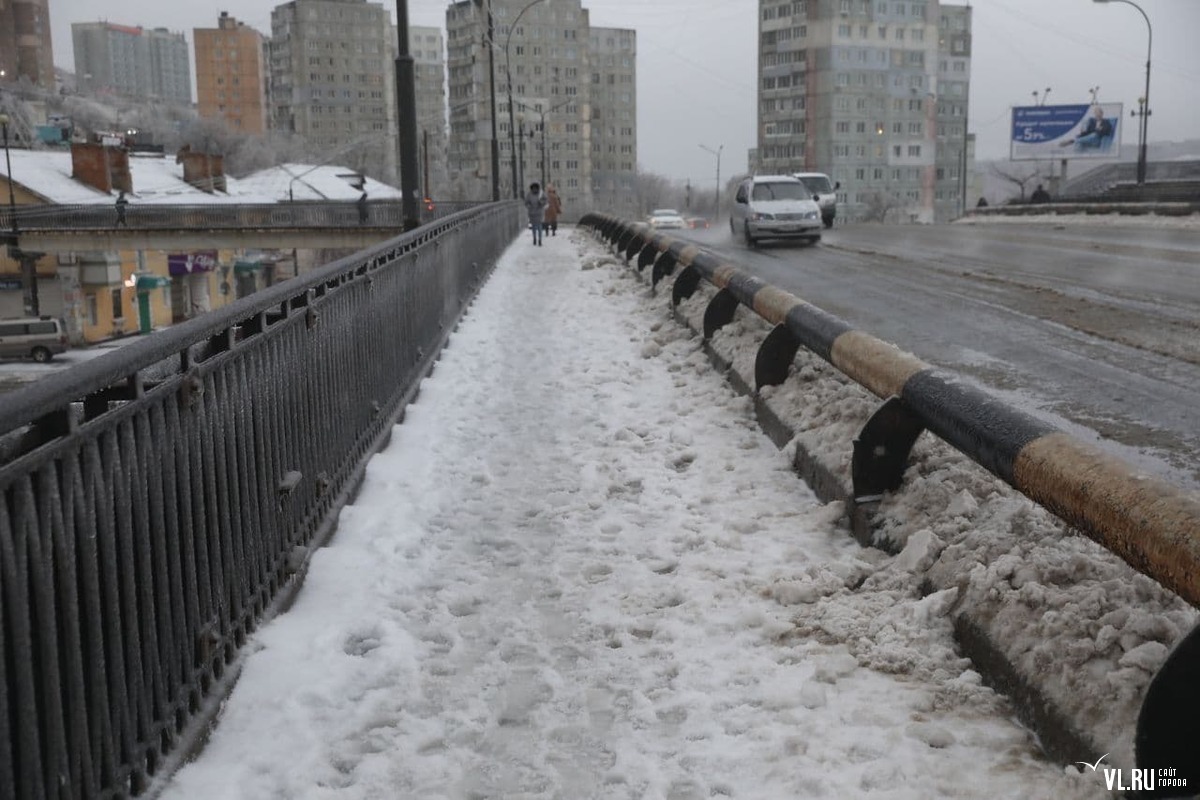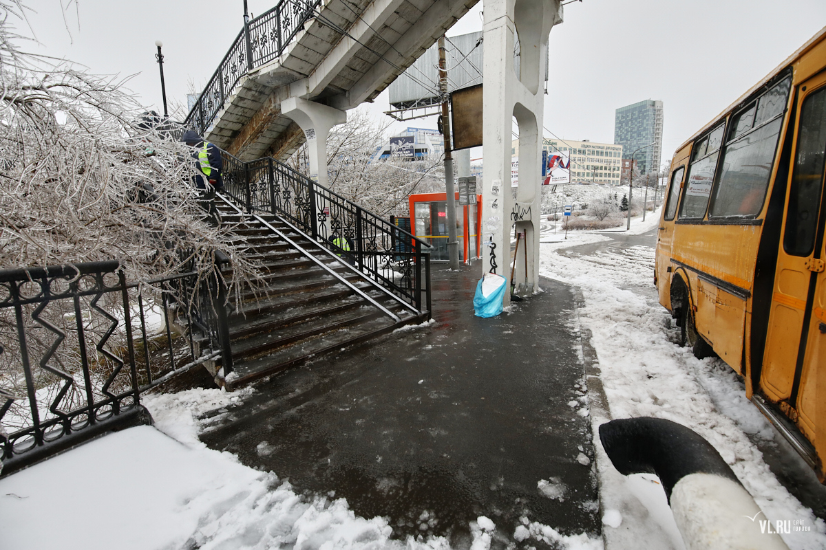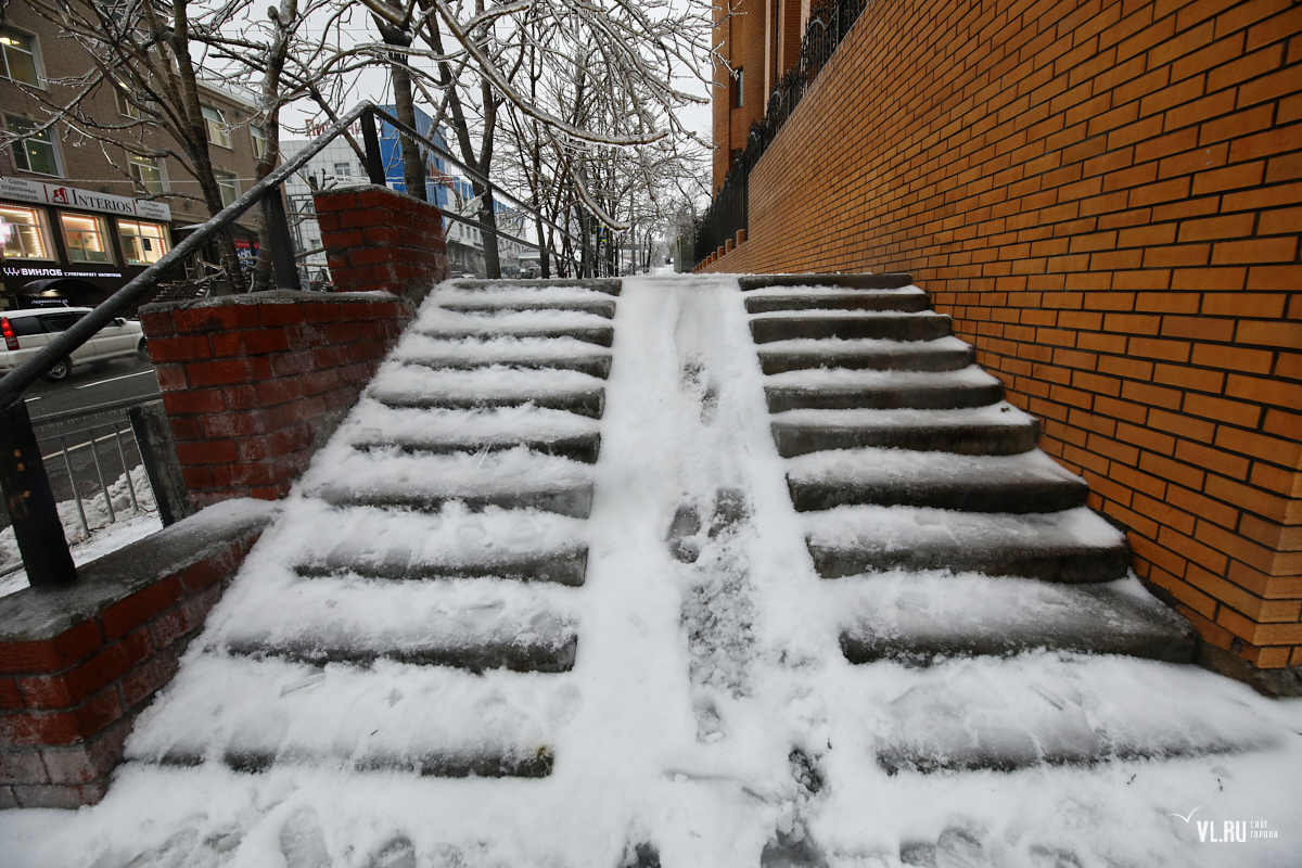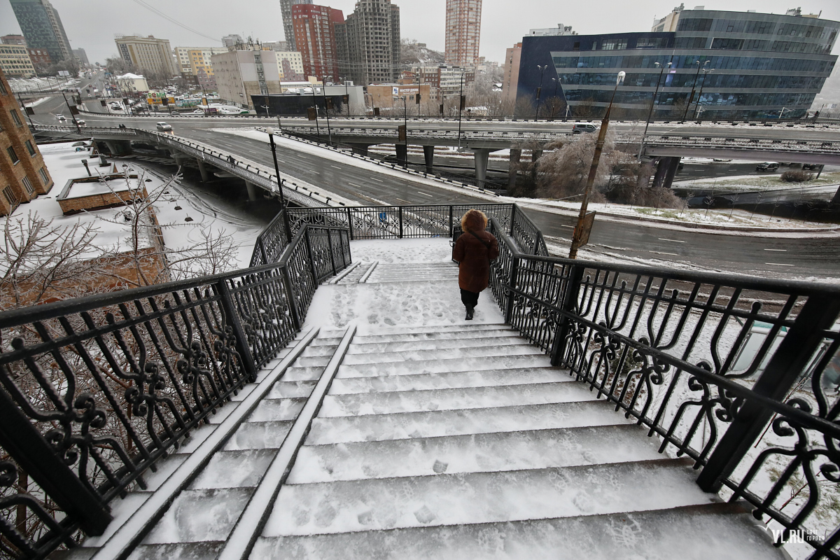 По информации мэрии, всю минувшую ночь на улицах Владивостока работала специализированная техника: велась просыпка сложных участков дорог и спусков, где из-за перепада температур и перехода дождя в снег образовывалась наледь. С 4 часов утра дорожные рабочие приступили к обработке переходов, в 6 часов утра более 130 человек вышли на пешеходные зоны и лестницы. Они вручную убирают снег и обрабатывают обледеневшие участки спецсредствами.