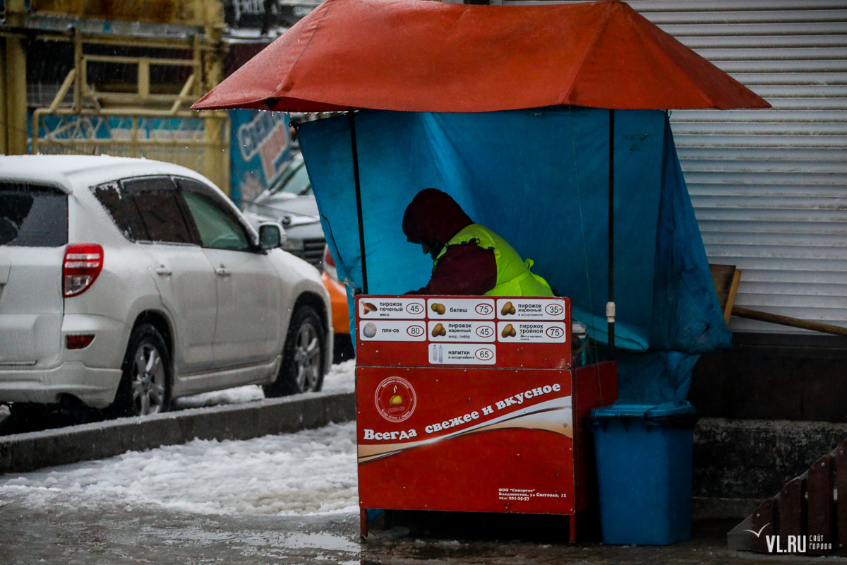 12:39: Администрация Владивостока сообщает, что, по прогнозам синоптиков, сегодня днём во Владивостоке будет продолжаться дождь, временами переходящий в снег. Из-за существенных перепадов температур на дорогах и пешеходных зонах – гололёд.