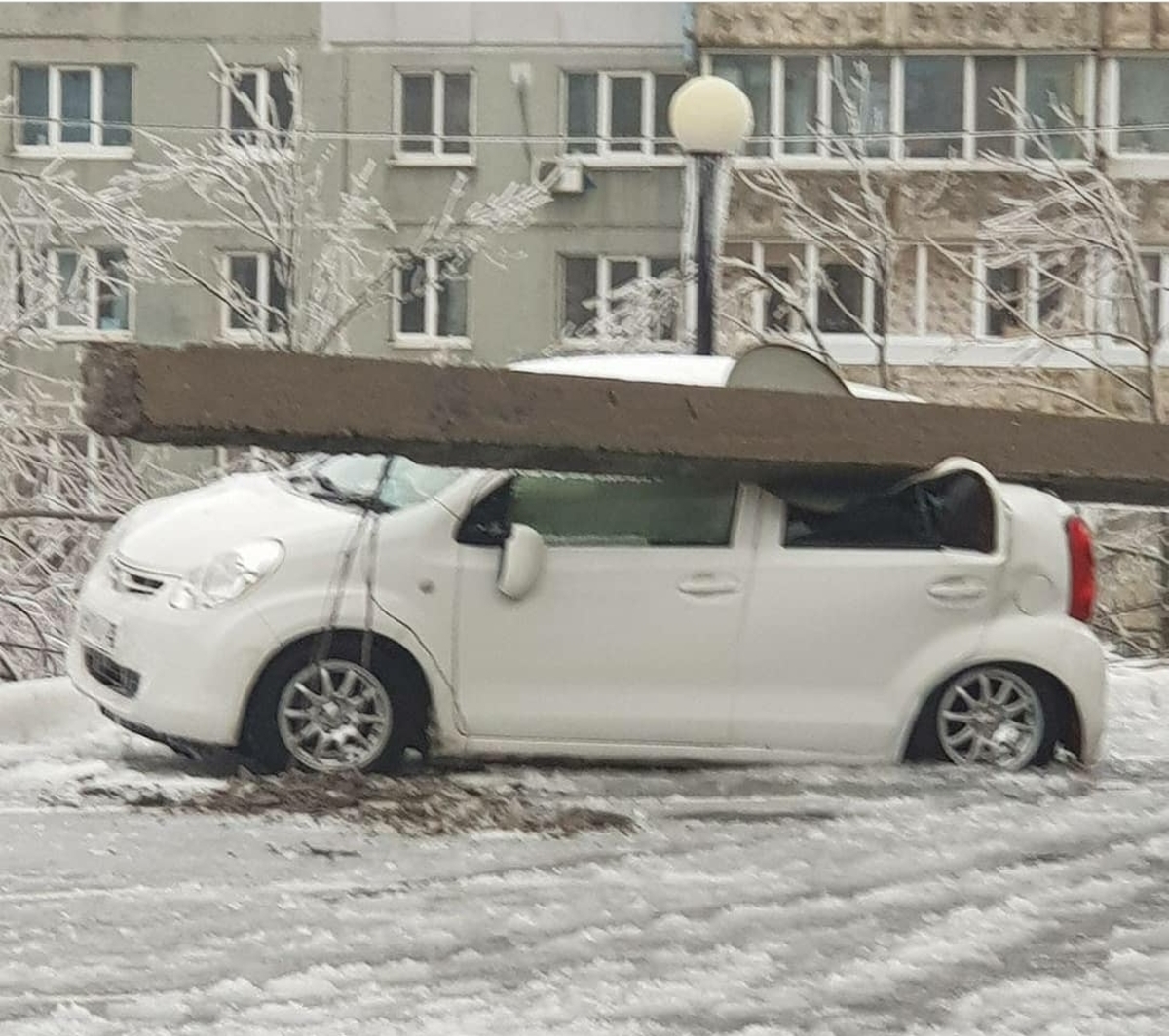 9:52: Жители разных районов города рассказывают, что сломанные деревья перекрыли проезды к домам. Заледенелые ветки падают на машины и прохожих.