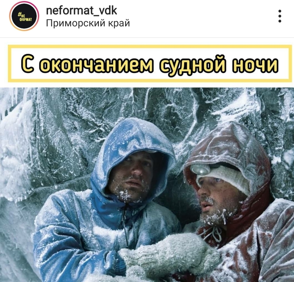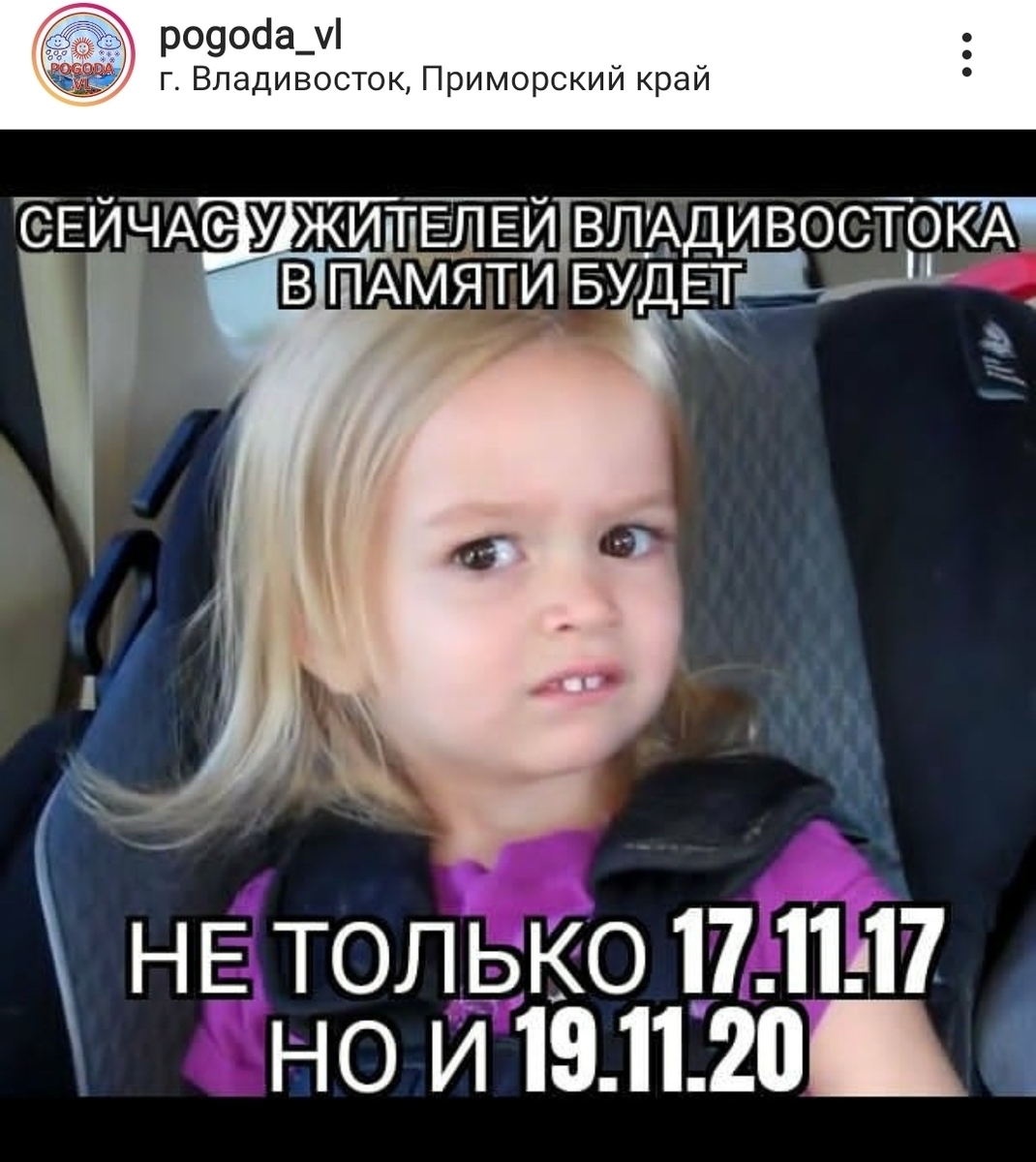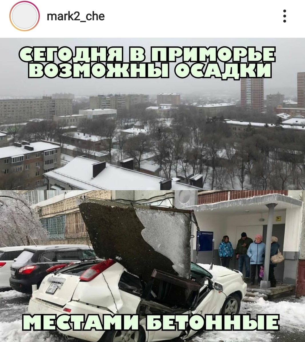 В ночь с 18 на 19 ноября во Владивостоке начался дождь, который к 20 ноября перешёл в снег. Ветви деревьев, машины, провода покрылись толстым слоем льда. Тысячи жителей города остались без света, воды, отопления или электричества. Многие – без всего сразу. Однако те, у кого осталось электричество и интернет, не унывают и делают мемы.
