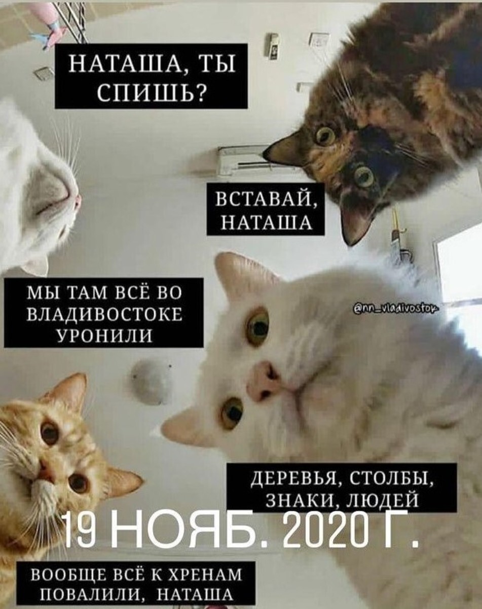 Ну и, наконец, катаклизм был бы не катаклизм, если бы нас не посетили вездесущие коты Наташи, которые опять всё уронили. Этот шаблон для мемов комментировать излишне, он шедеврален и самодостаточен, как коты. Поэтому давайте просто полюбуемся.
