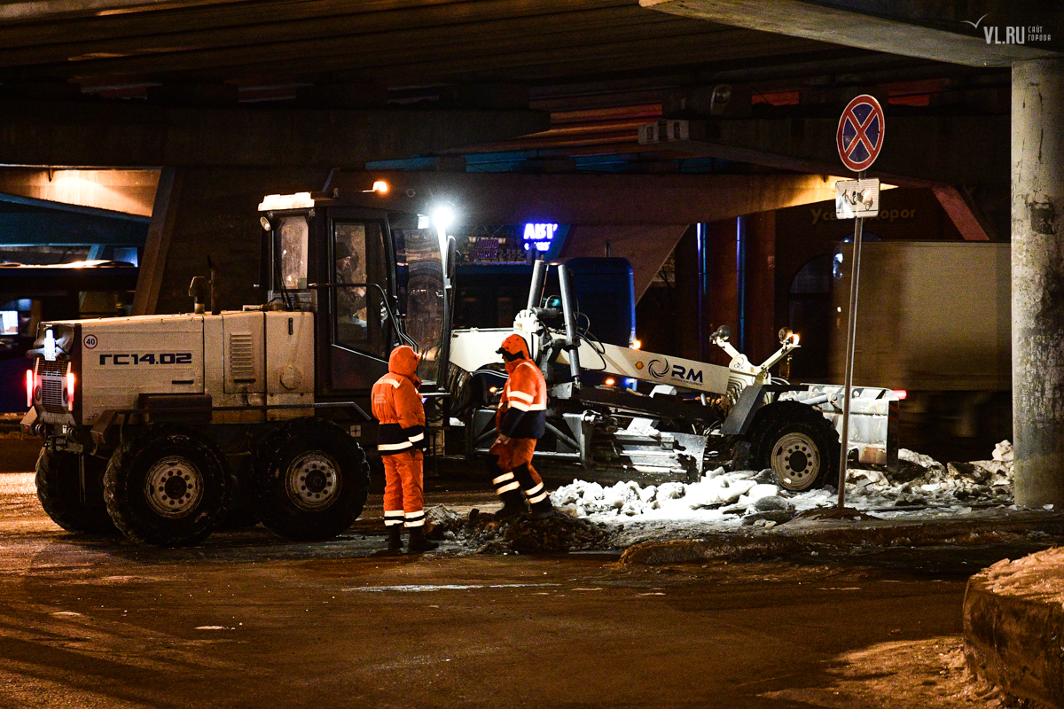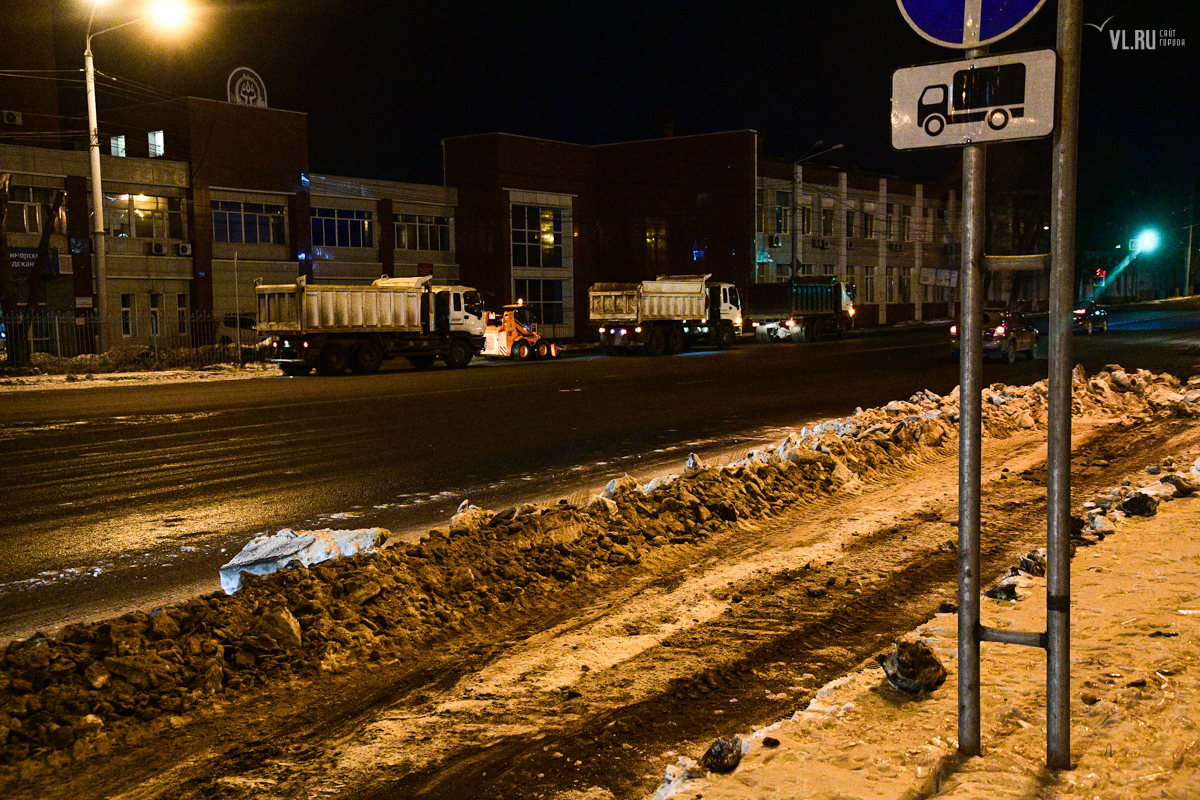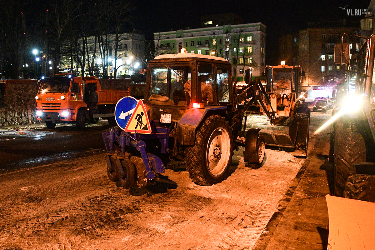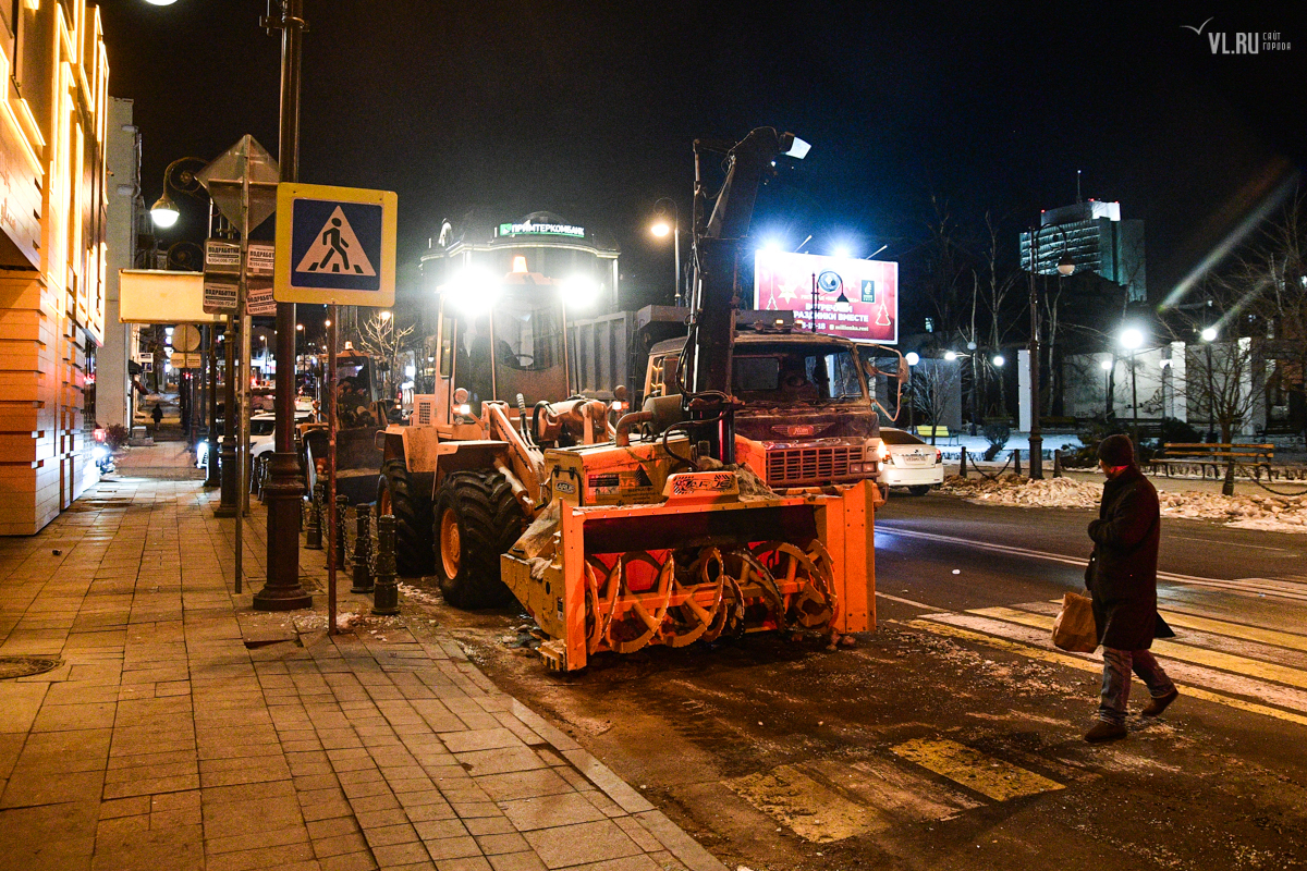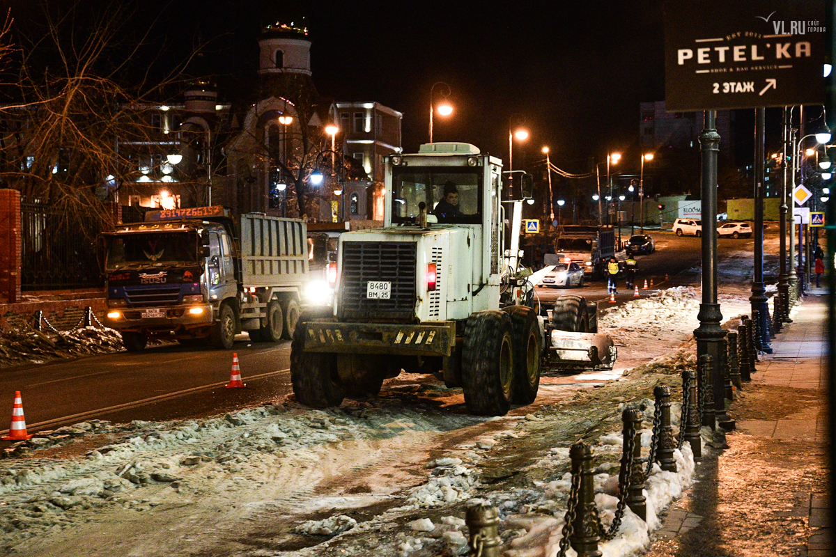 В ночь с 3 на 4 декабря снегоуборочная техника работала на Батарейной, Пограничной, Уборевича и Океанском проспекте. Работы там начались после 21:00. На Первой Речке и на Семёновской корреспондент и фотограф VL.ru, которые объехали все улицы, рабочих не застали.