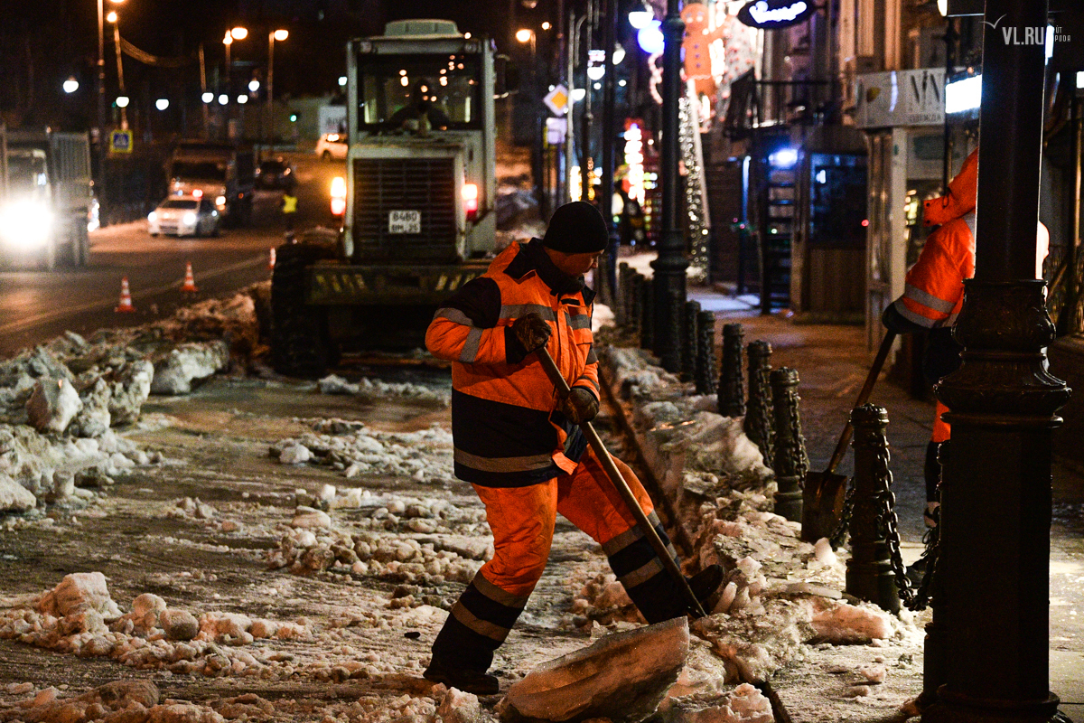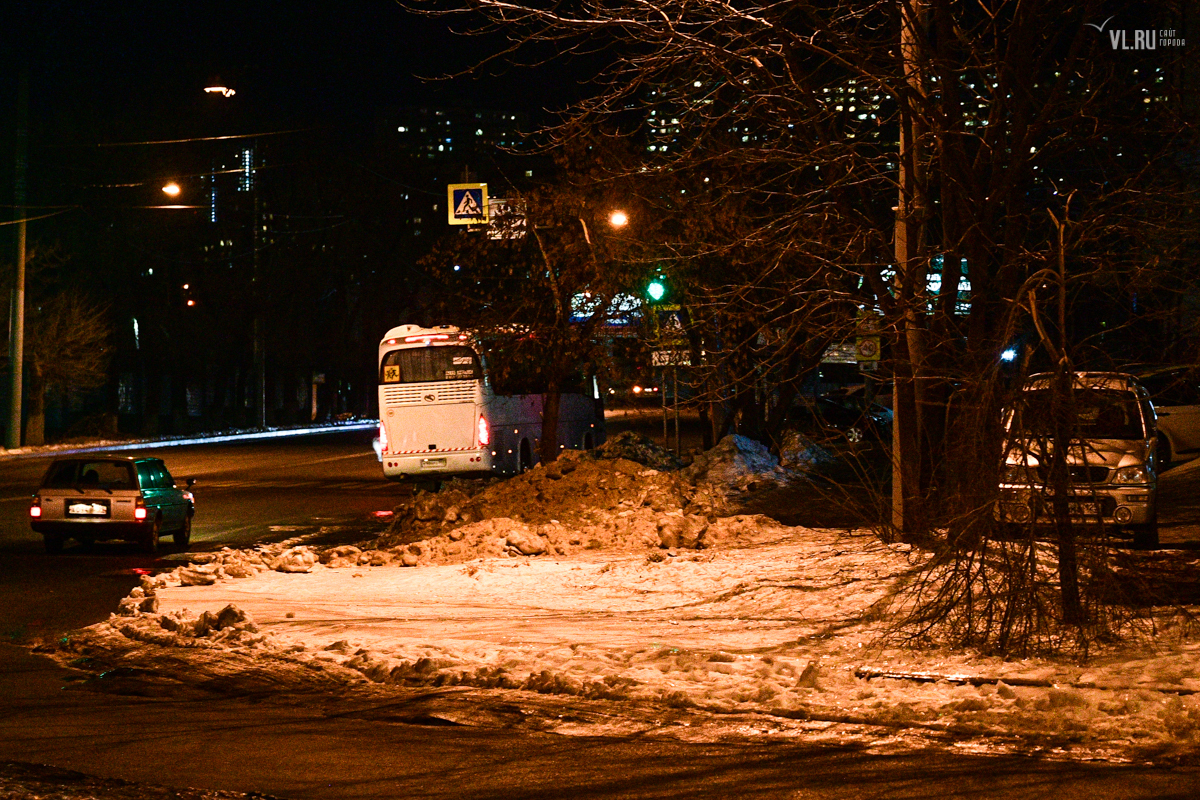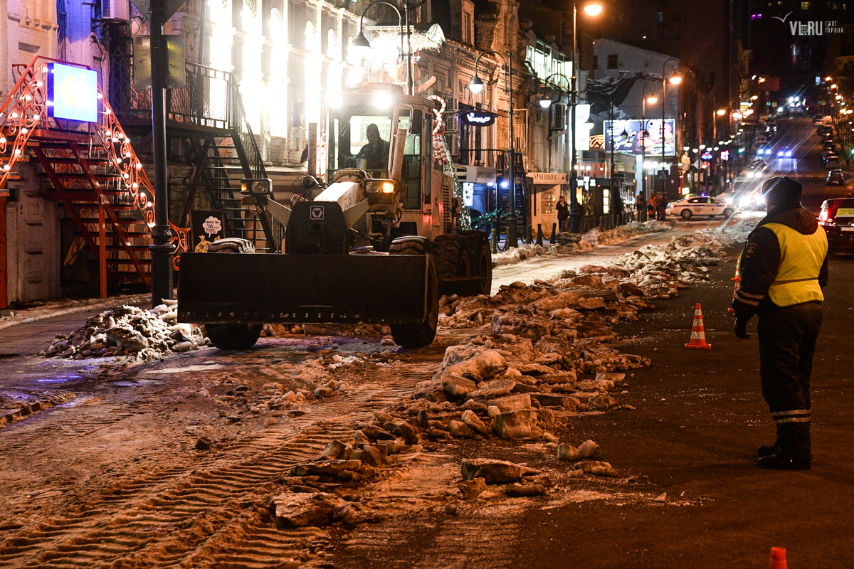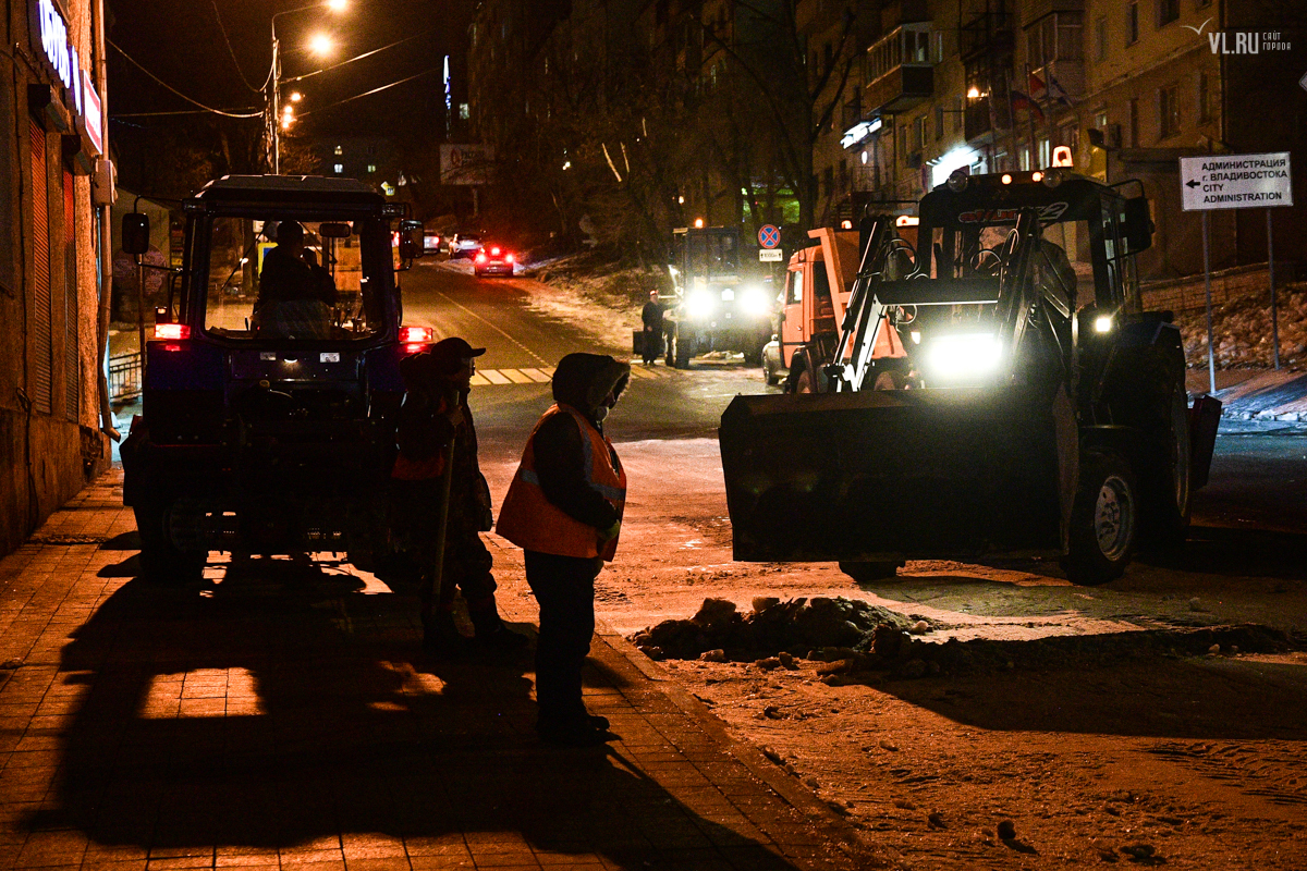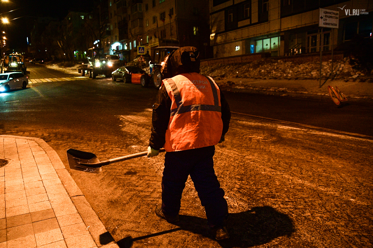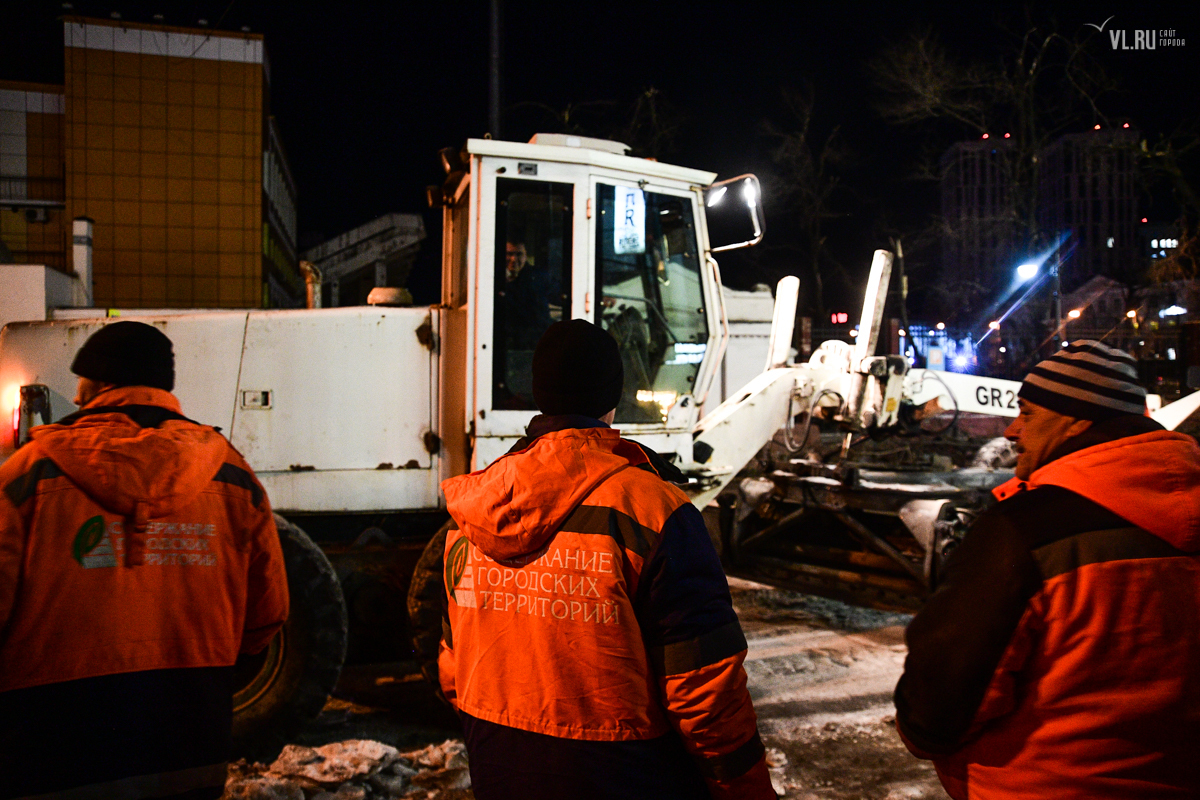 В ночь с 3 на 4 декабря снегоуборочная техника работала на Батарейной, Пограничной, Уборевича и Океанском проспекте. Работы там начались после 21:00. На Первой Речке и на Семёновской корреспондент и фотограф VL.ru, которые объехали все улицы, рабочих не застали.