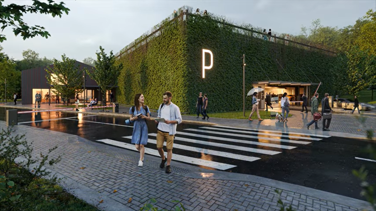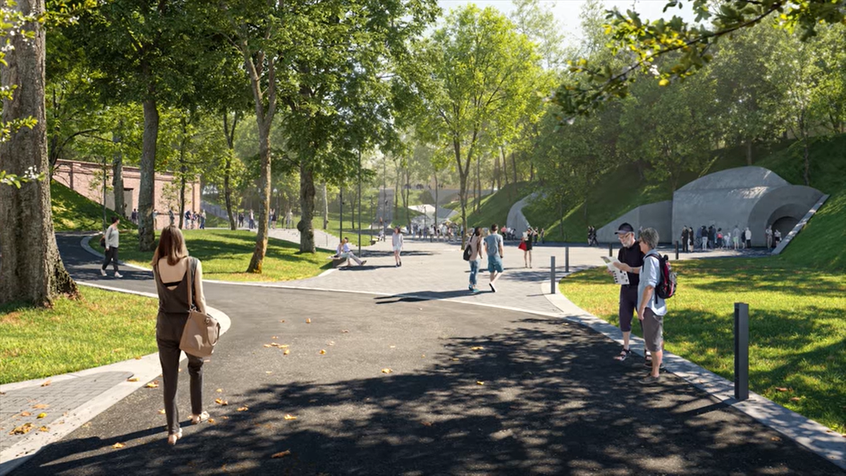 В центральной же зоне откроется подземная парковка на 450 машин – два этажа здания вписываются в рельеф, поэтому на кровлю парковки можно зайти с восточного склона. В здании будет работать основной общественный туалет парка.