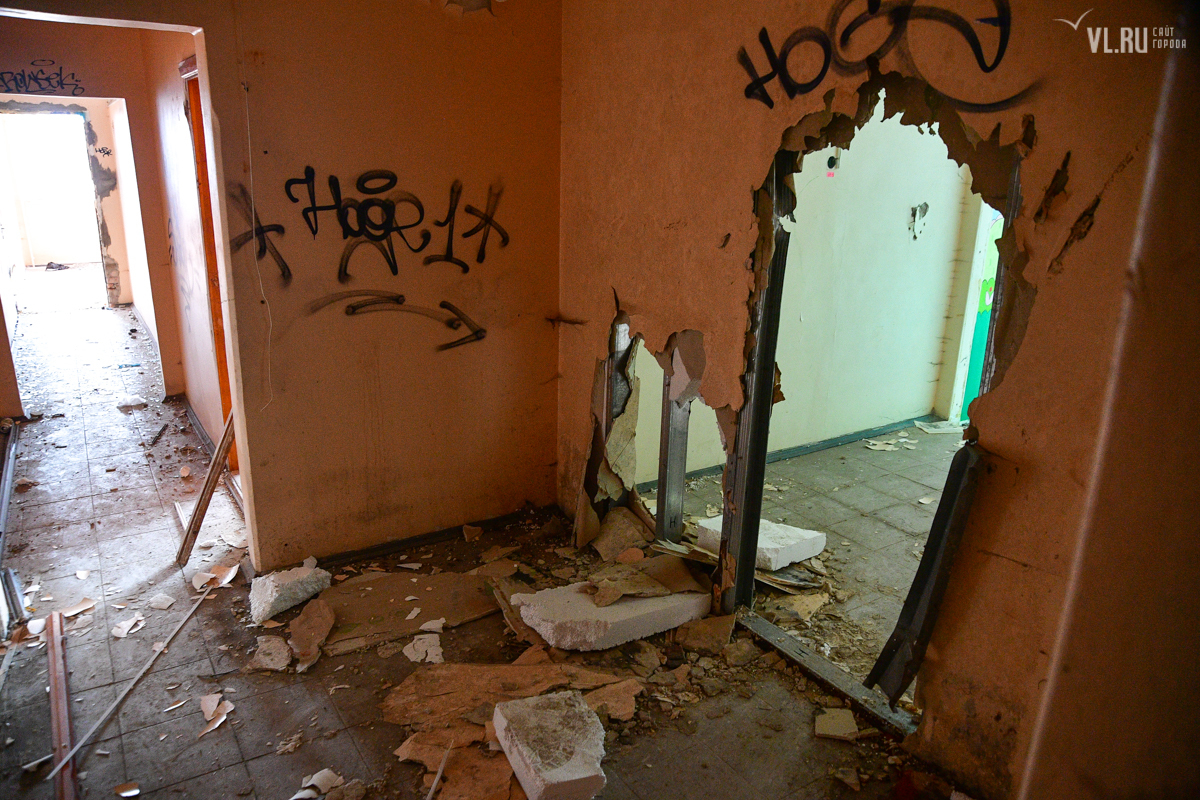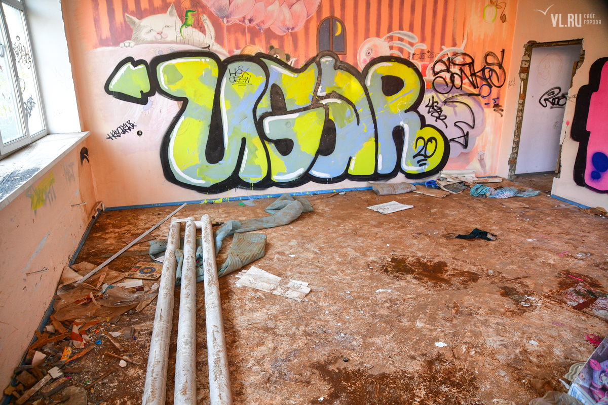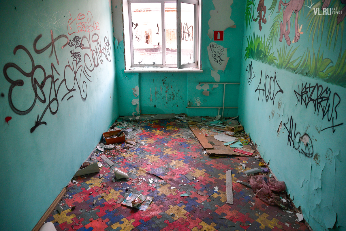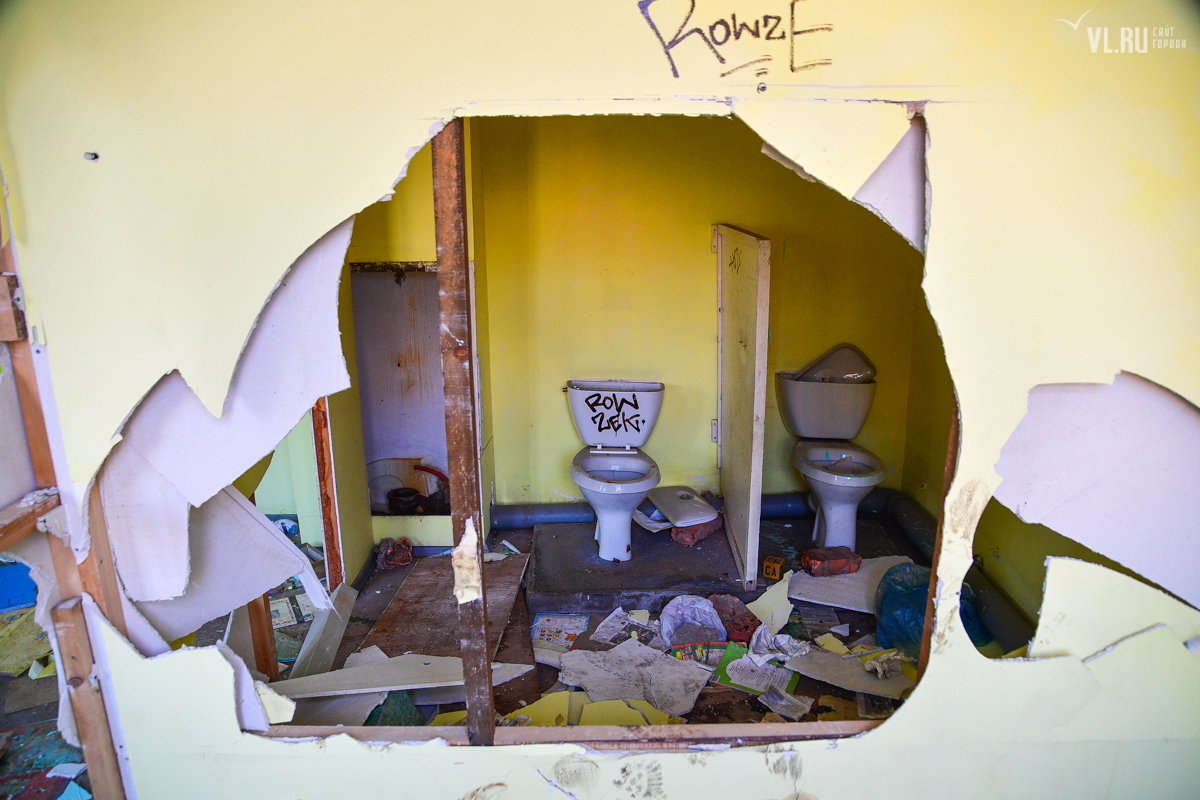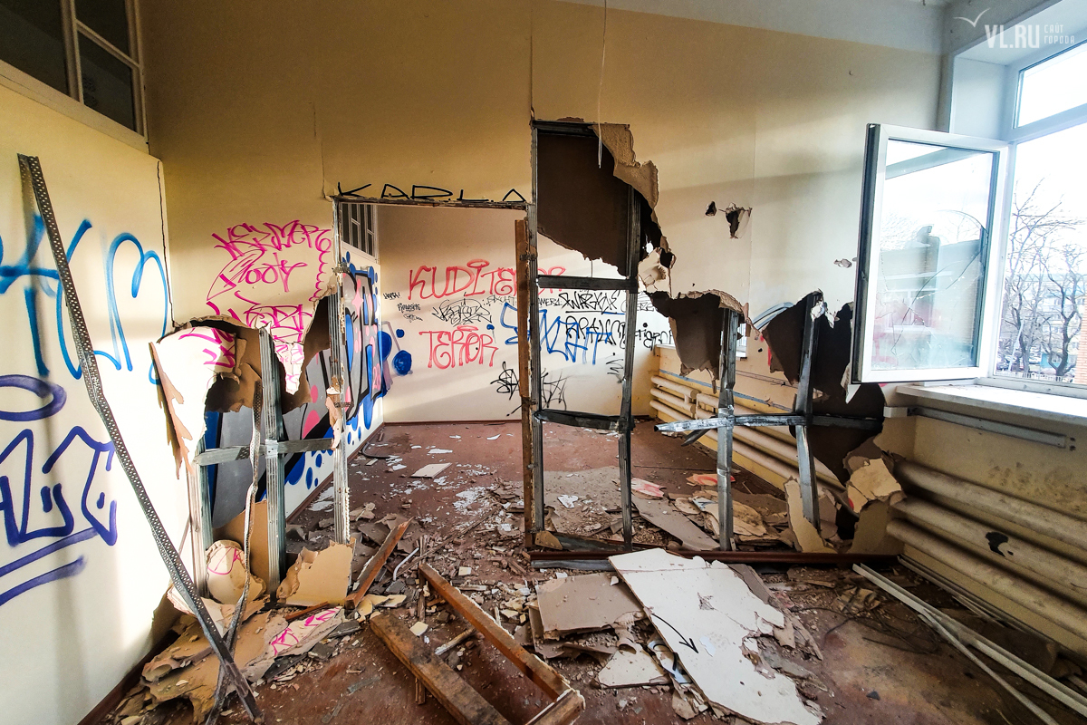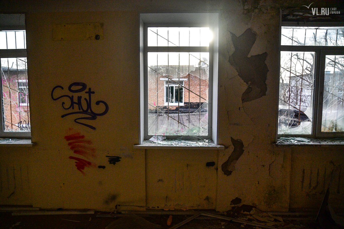 По словам местных жителей, объект быстро стал пристанищем бездомных, а вскоре туда стали наведываться и подростки. Вандалы, чувствуя, что останутся безнаказанными, разбили здесь стёкла, исписали стены, вынесли двери, сломали сантехнику и снесли перегородки… После ледяного дождя на территории повалилось много деревьев – по некоторым из них теперь можно забраться на крышу здания, что и делают подростки. В вечернее время они бегают по зданию, которое на сегодня фактически является аварийным.