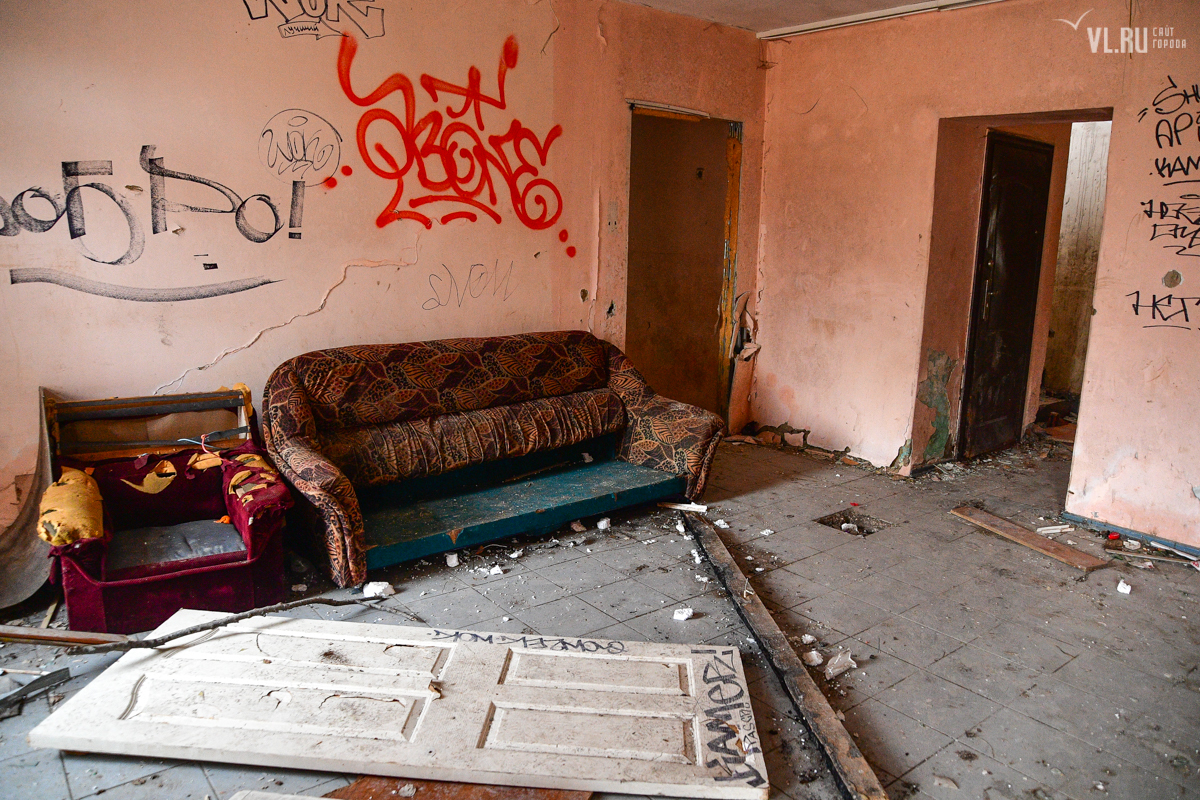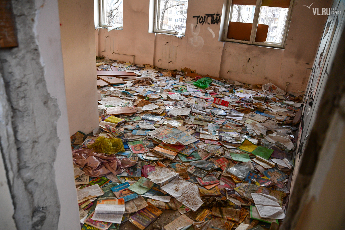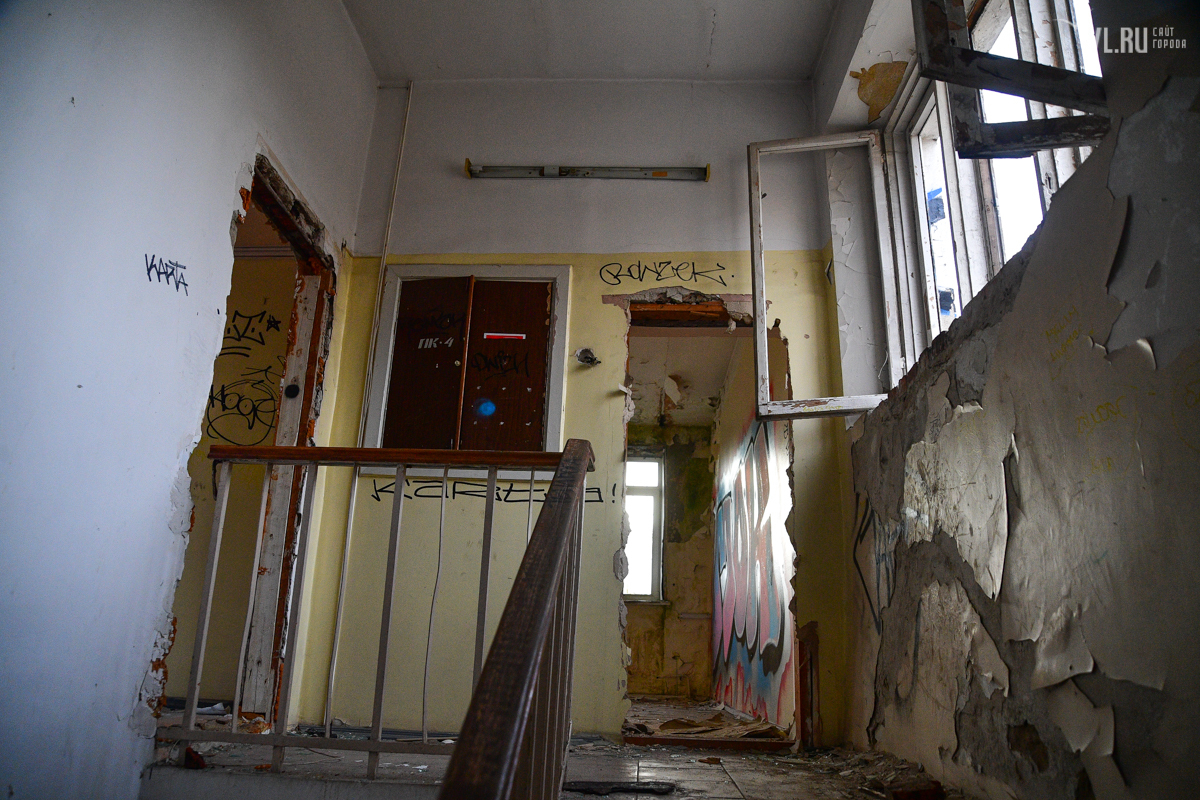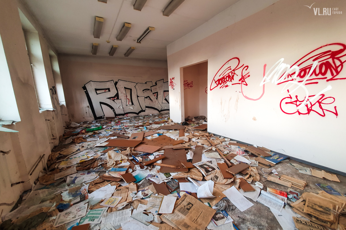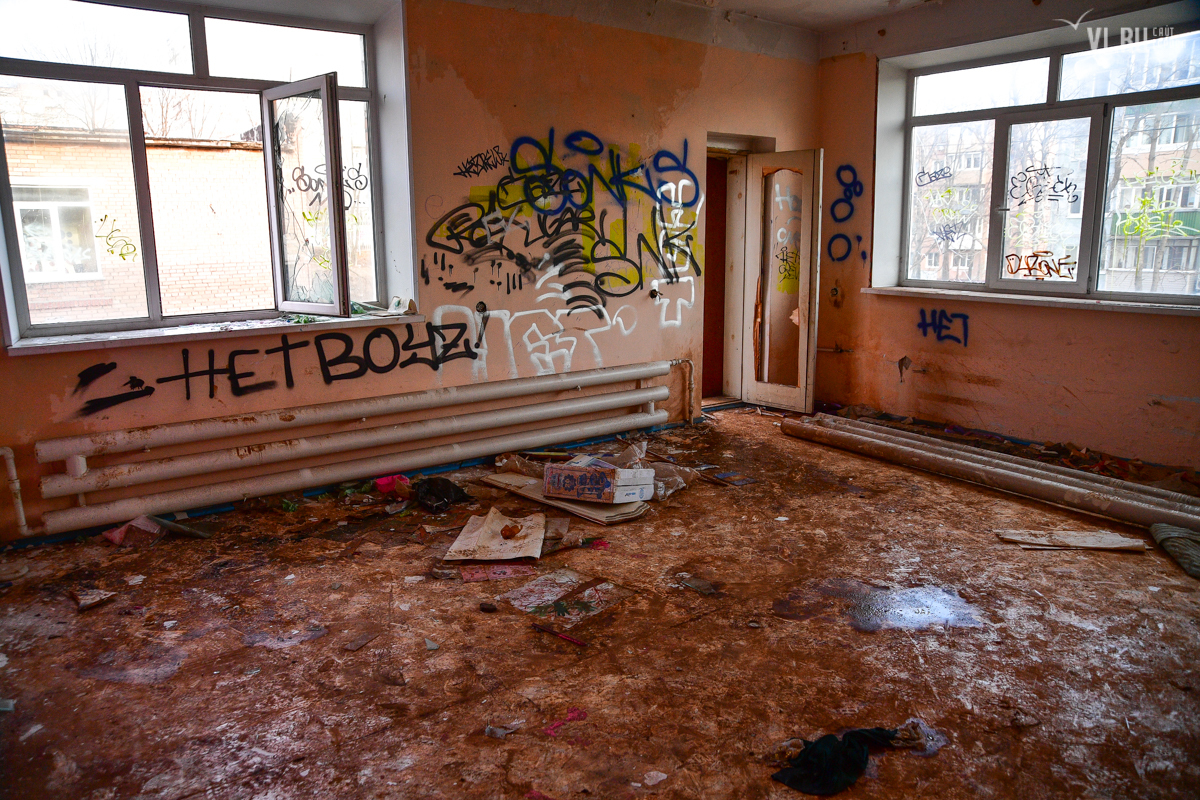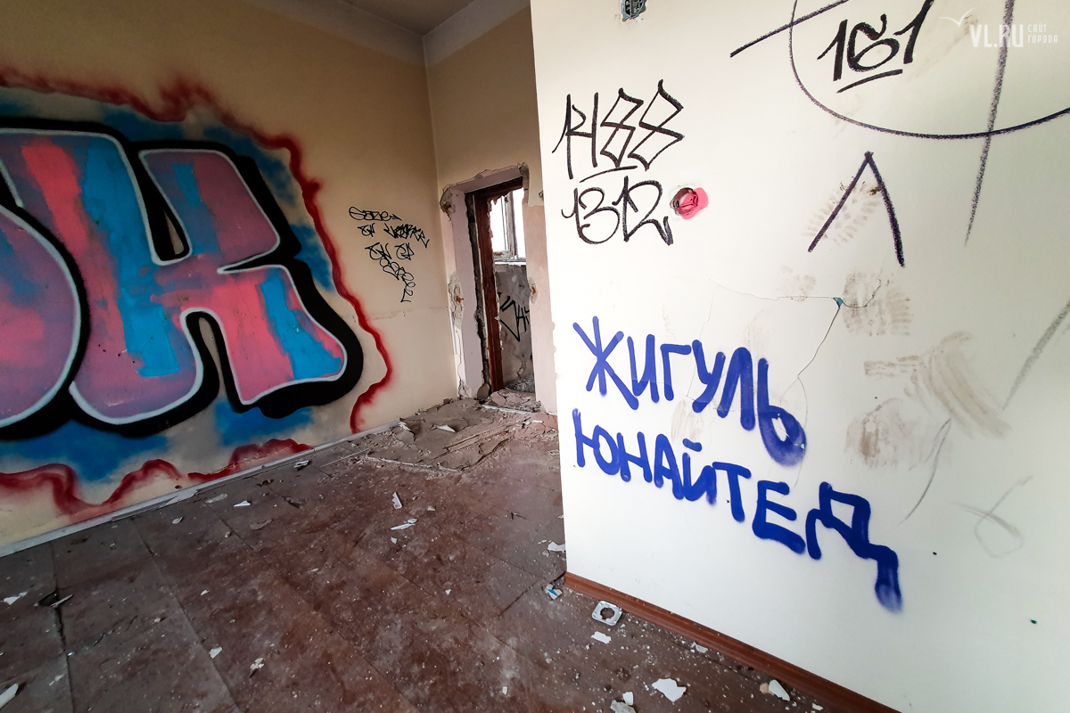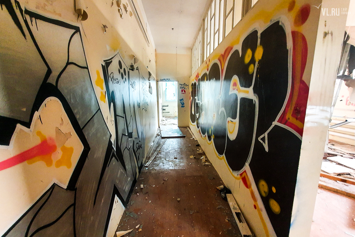 По словам местных жителей, объект быстро стал пристанищем бездомных, а вскоре туда стали наведываться и подростки. Вандалы, чувствуя, что останутся безнаказанными, разбили здесь стёкла, исписали стены, вынесли двери, сломали сантехнику и снесли перегородки… После ледяного дождя на территории повалилось много деревьев – по некоторым из них теперь можно забраться на крышу здания, что и делают подростки. В вечернее время они бегают по зданию, которое на сегодня фактически является аварийным.