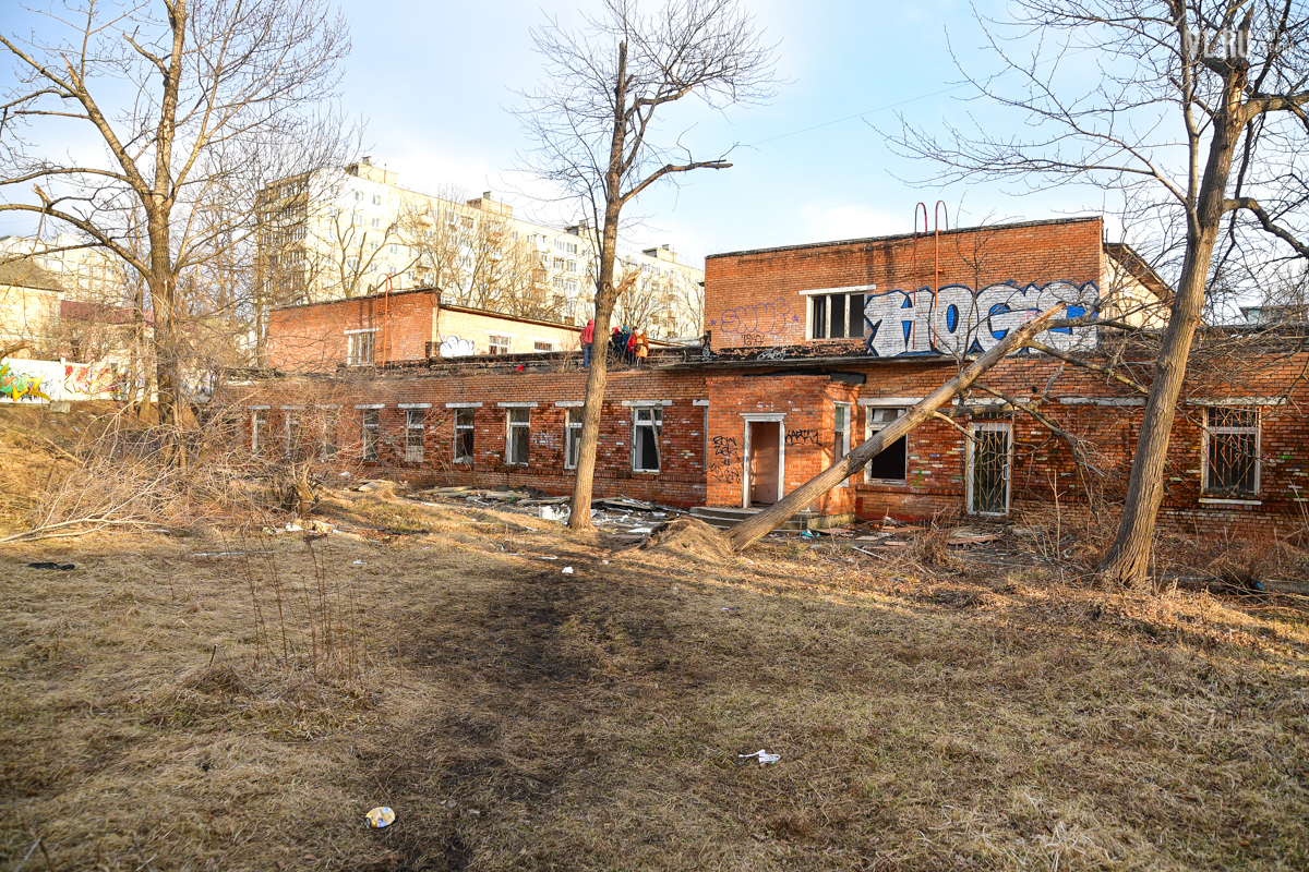 Пока здание бывшего детского сада на Постышева, 7а безуспешно ждёт реконструкции, его облюбовали подростки и маргиналы. Всего несколько месяцев территория остаётся без охраны, но стёкла в окнах уже разбиты, дверей нет, стены где-то разломаны, где-то расписаны граффити, а вокруг со времён ледяного дождя лежат поваленные деревья. Жители окрестных домов переживают, что прогулки по заброшке для кого-то рано или поздно закончатся несчастным случаем.