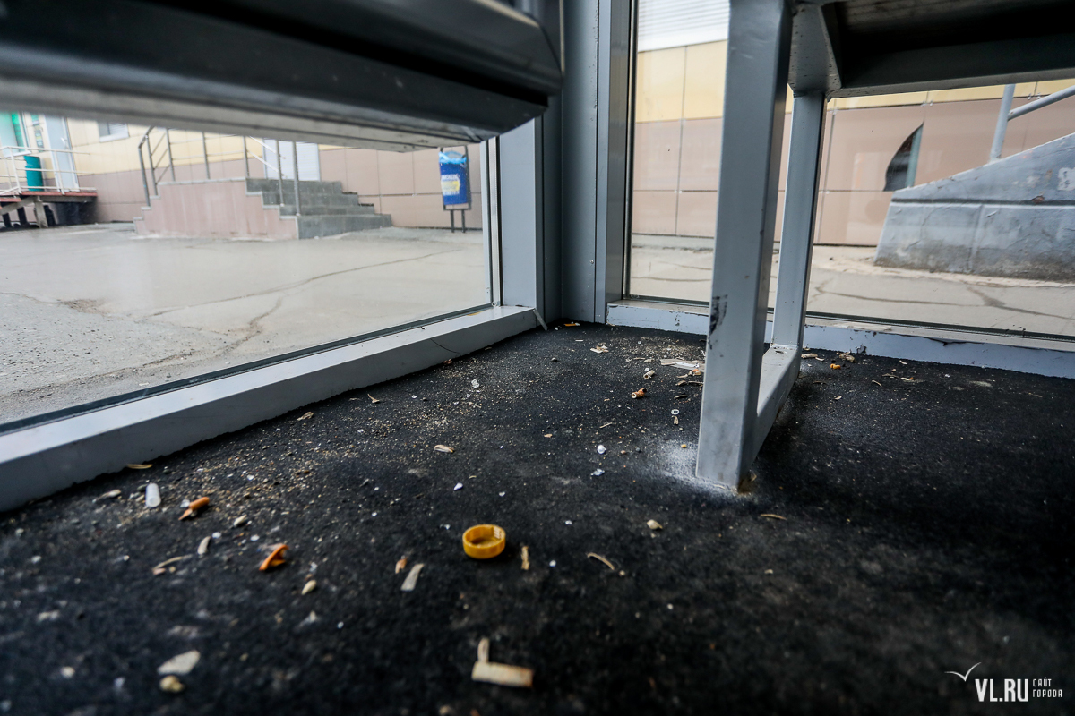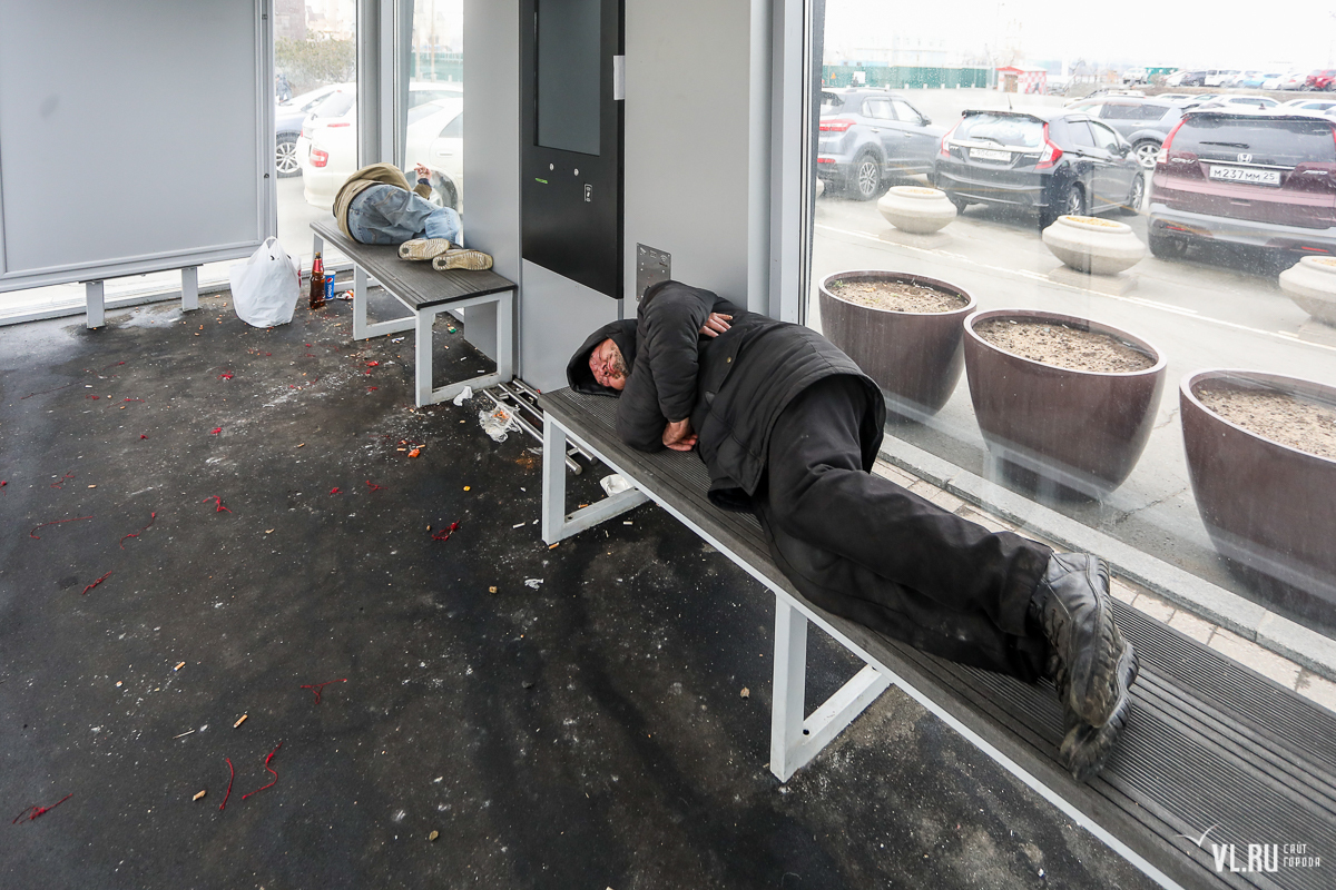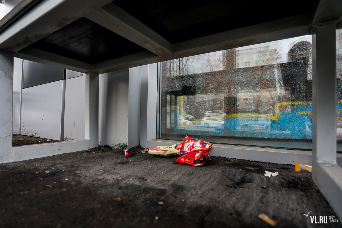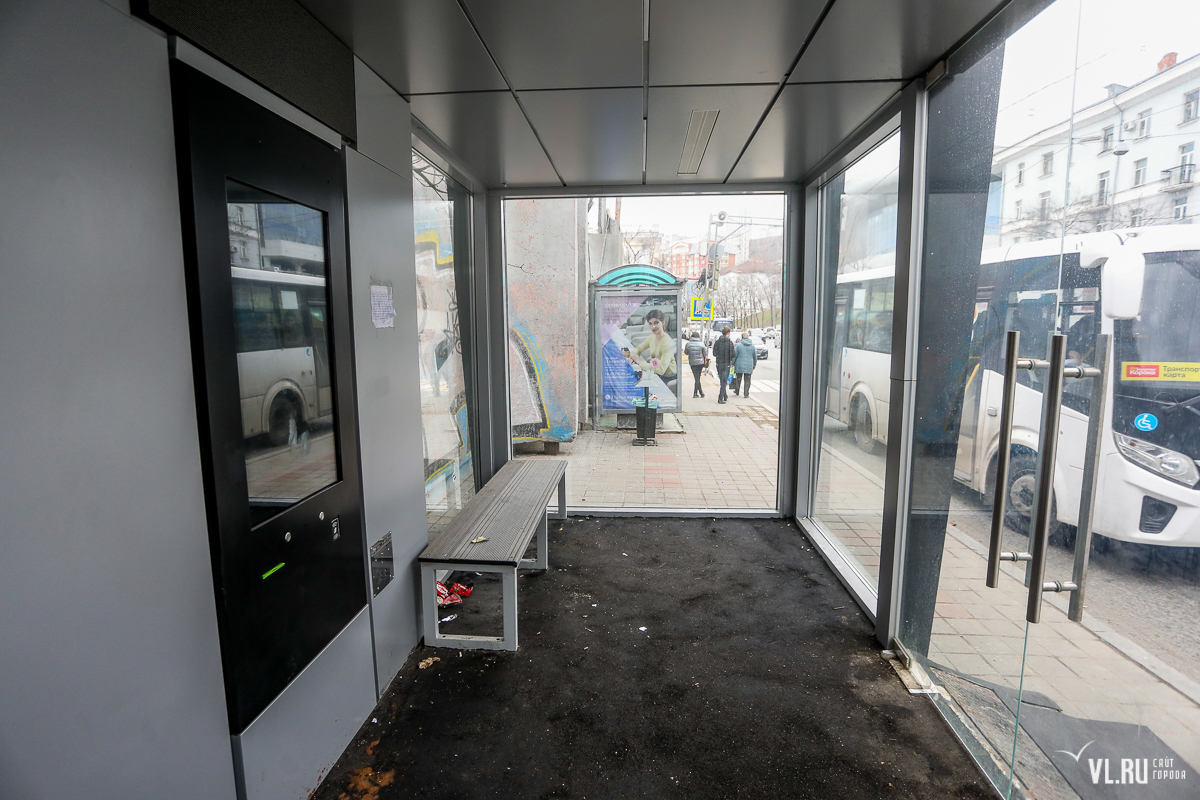 Отметим, что идею установки современных конструкций с высокотехнологичной начинкой активно критиковали горожане – владивостокцы изначально опасались, что закрытые тёплые помещения быстро оккупируют маргинальные личности. В итоге так и вышло – в первых установленных павильонах на Луговой и Гоголя почти сразу же поселились бездомные и маргиналы. Сейчас их часто замечают и в самом центре города – буквально в 100 метрах от здания правительства Приморского края они едят, пьют алкоголь и спят прямо на лавочках в закрытой части павильона. А тем временем пассажиры в ожидании своего транспорта стоят на улице при любой погоде. Утром 16 апреля во время визита фотографа VL.ru там как раз спали два бездомных, а какой-то шутник прикрепил к стеклу плакат с надписью «Живой уголок».