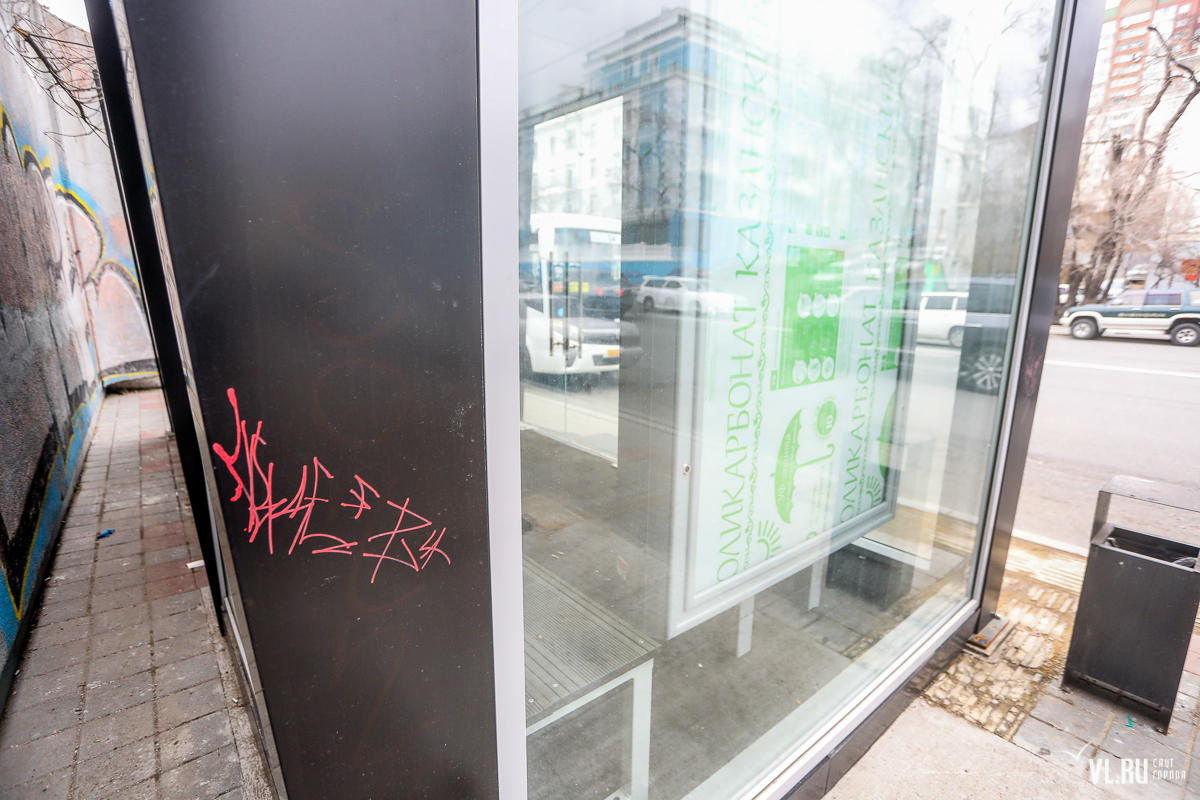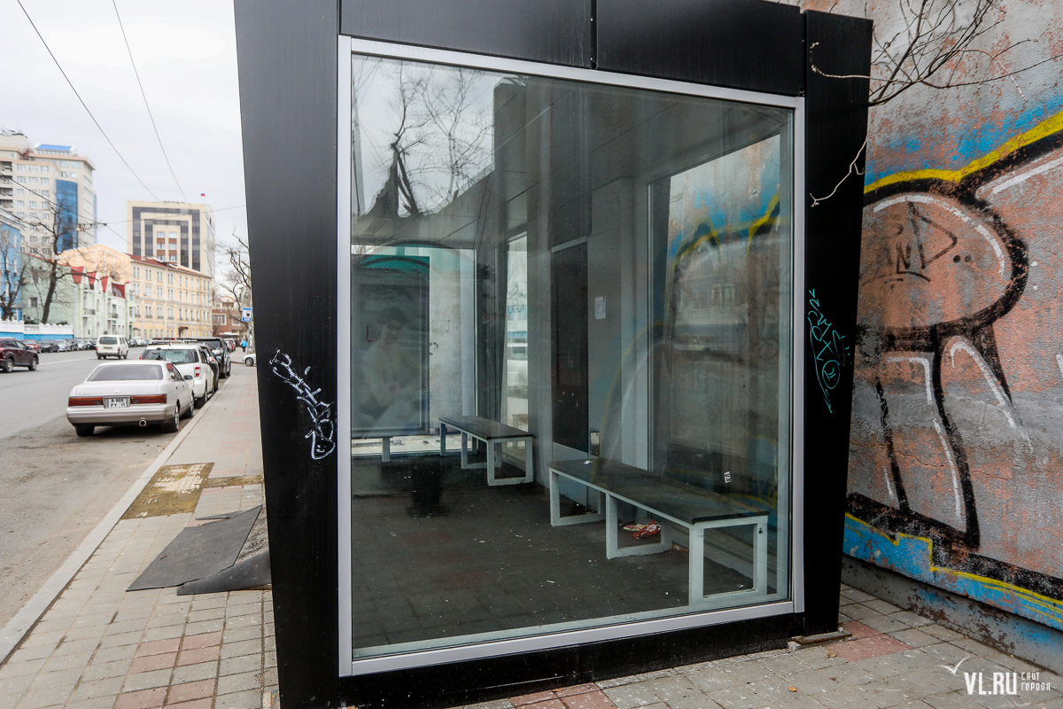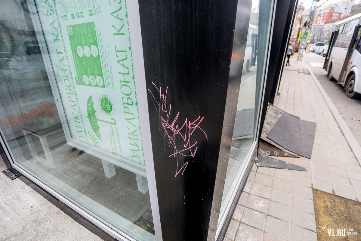 Есть и другие проблемы – в начале года на «Маяке» вандалы сломали одну из камер видеонаблюдения (они ещё не были подключены), в феврале в районе Второй Речки неизвестные разрисовали маркером стены одного из павильонов. В центре сразу после установки стекло почти сразу пошло трещинами, сейчас его уже заменили.