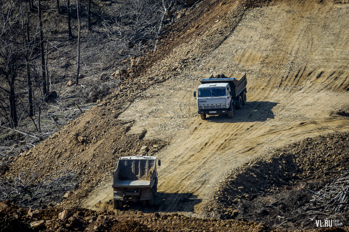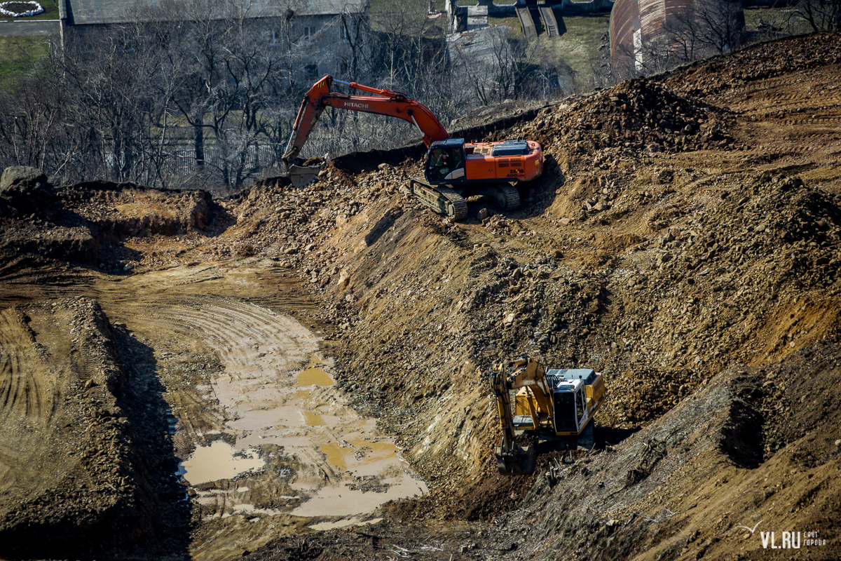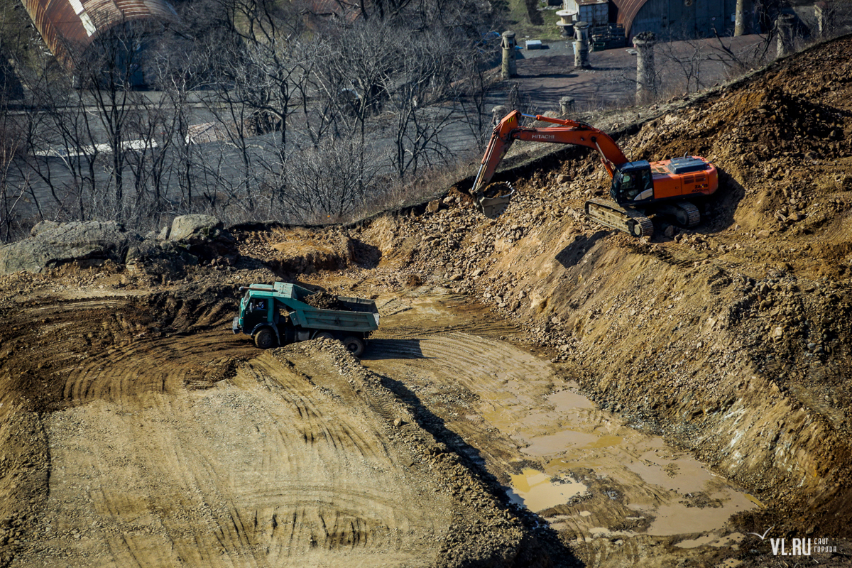 Сейчас на земельном участке 25:28:040012:2518 вовсю орудуют бульдозеры и экскаваторы, меняя рельеф сопки. Никаких ограждений и заборов здесь нет, как нет пока и паспорта объекта. Формально стройка ещё не началась, рабочие пока лишь готовят площадку.
