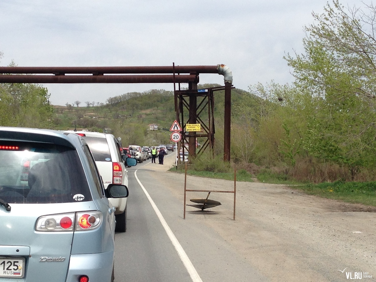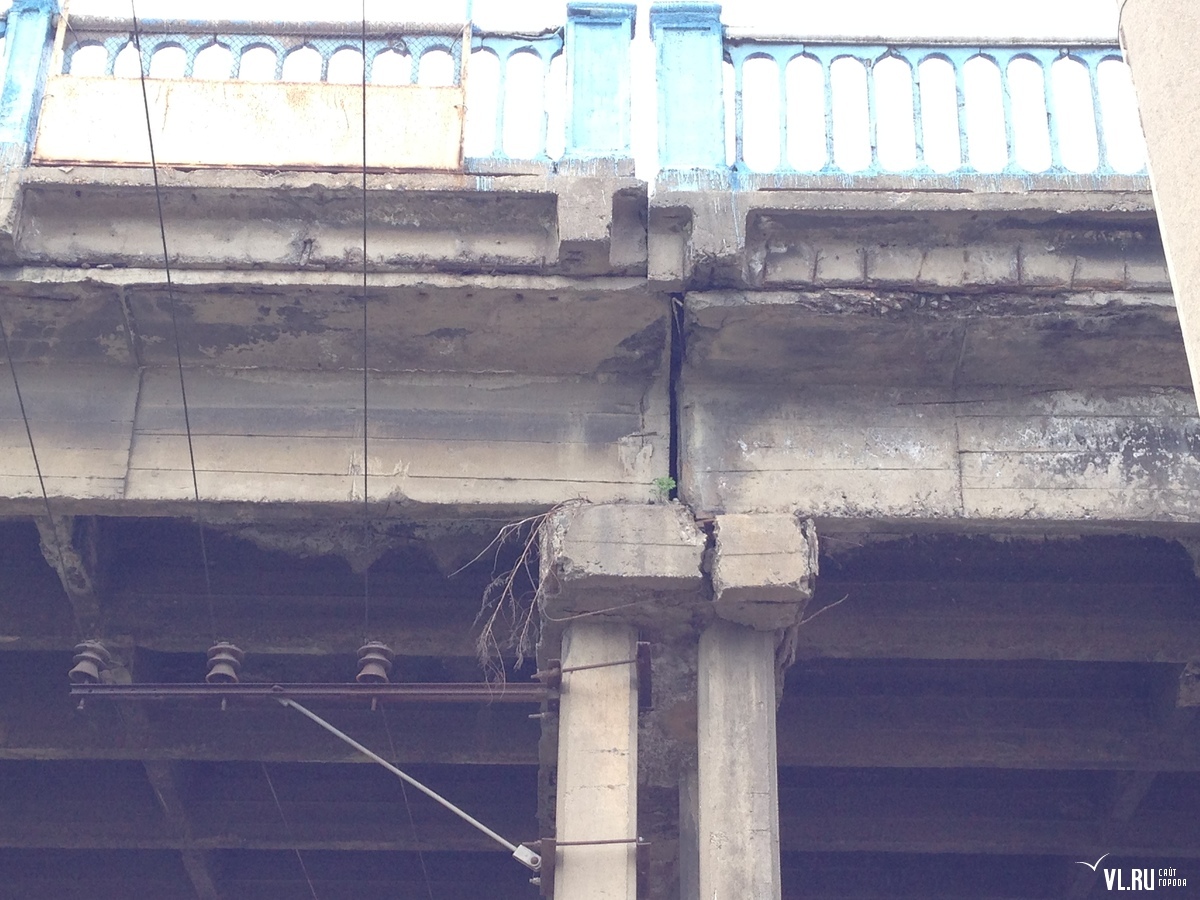 По информации источника VL.ru, данный путепровод на км 19+524 дороги Артём – Находка – порт Восточный построен в 1964 году. Ограничение движения по нему связано с тем, что у сооружения разваливается промежуточная опора № 2. Её состояние оценивается как аварийное. Существует риск обрушения балки, что может спровоцировать падение пролёта путепровода. В настоящее время крайняя балка начинает сходить с насадки, обнаружен скол более 7 см.