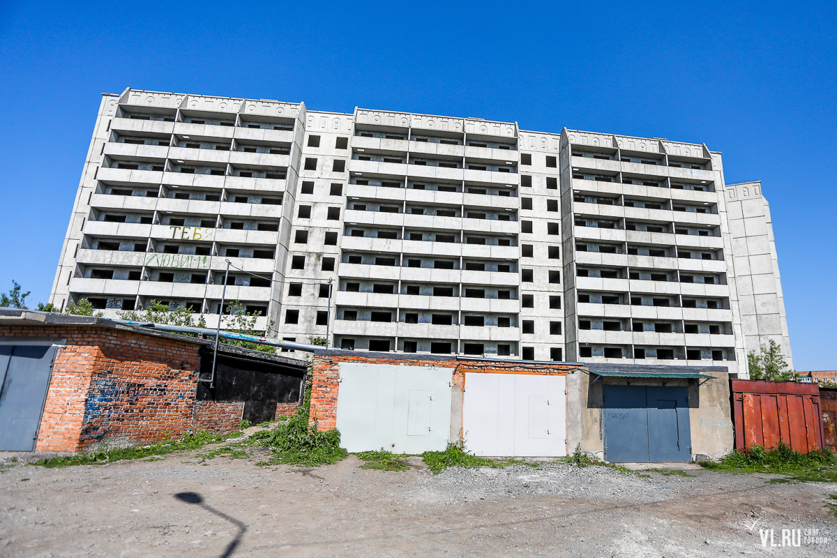 Ещё одна знаменитая «заброшка», кстати, тоже принадлежащая УМВД, находится на Борисенко – это панельный жилой дом-долгострой. Причина, по которой его не достроили, неизвестна. Сейчас у дома нет охраны, а на этажах собираются гуляющие подростки, роуп-джамперы и даже тренируются альпинисты. Сам дом, поскольку построен недавно, пока опасений не вызывает – бетон крепкий, панели тоже не вываливаются. Но вот окружающая территория в запустении.