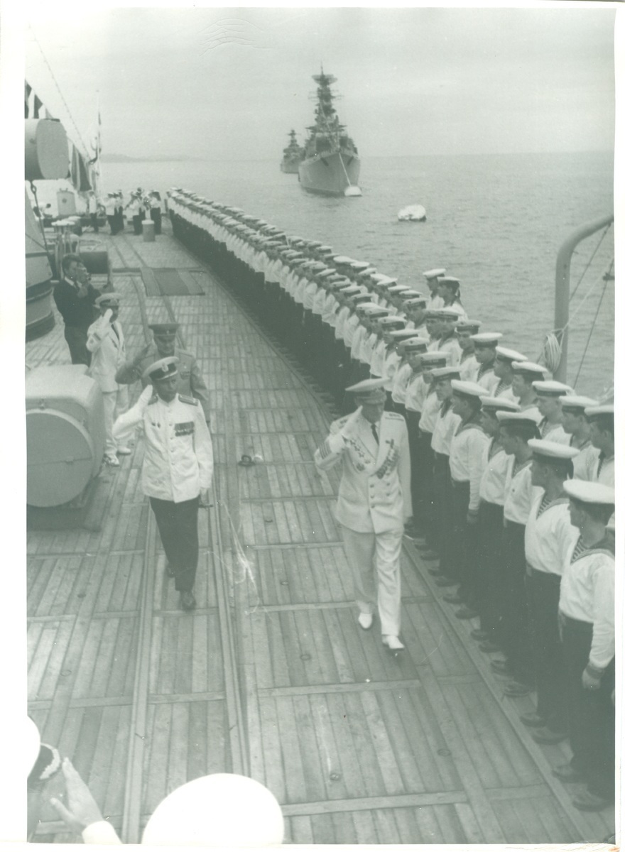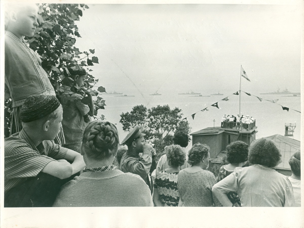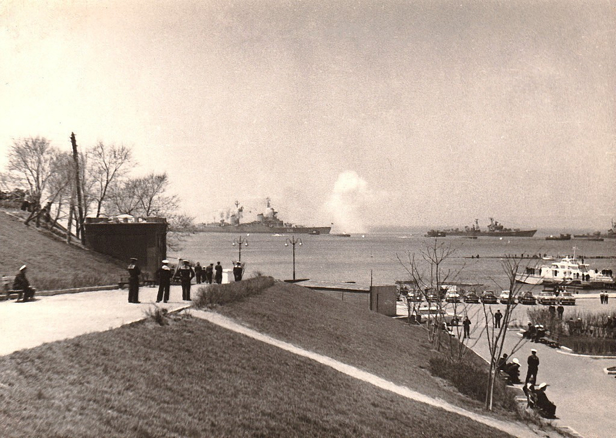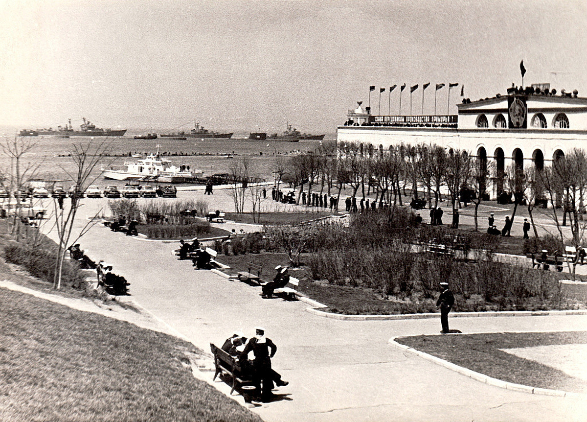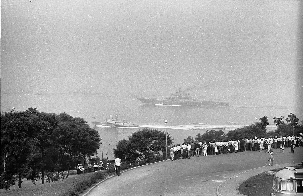 В 1986 году на трибунах водной станции ТОФ побывал глава государства – генеральный секретарь ЦК КПСС Михаил Горбачёв. В тот период у страны был военный пик, а потому морской парад во Владивостоке был одним из самых масштабных и зрелищных в истории, несмотря на проливной дождь. В морском параде участвовал перешедший из Североморска во Владивосток тяжёлый атомный ракетный крейсер «Фрунзе» (в 1992-м переименован в «Адмирал Лазарев», в 1998-м выведен в резерв. – Прим. VL.ru). Гигант был самым крупным неавианесущим кораблём на ТОФ. Тогда зрителям показали высадку на плав морского десанта и разыграли несколько морских сражений.