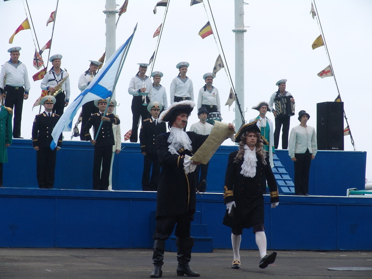 Вечером на Пушкинском подъёме выстроился двухтысячный хор. Ниже расположился сводный оркестр. Публика разместилась вдоль улицы Ленинской. По всей её длине на столбах укрепили громкоговорители. Концерт начался исполнением гимна Советского Союза. Под торжественную музыку над бухтой всплыли аэростаты, и высоко в небе в лучах прожекторов возник громадный флаг Военно-морского флота СССР. После песен довоенной поры звучали песни военных лет. И хору подпевала вся улица. Уж слишком свежа была в памяти прошедшая война. На финале концерта под слова «Слава, слава Советскому флоту» в небо взлетели сотни ракет.