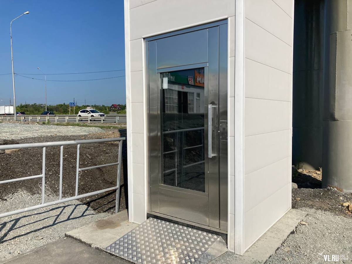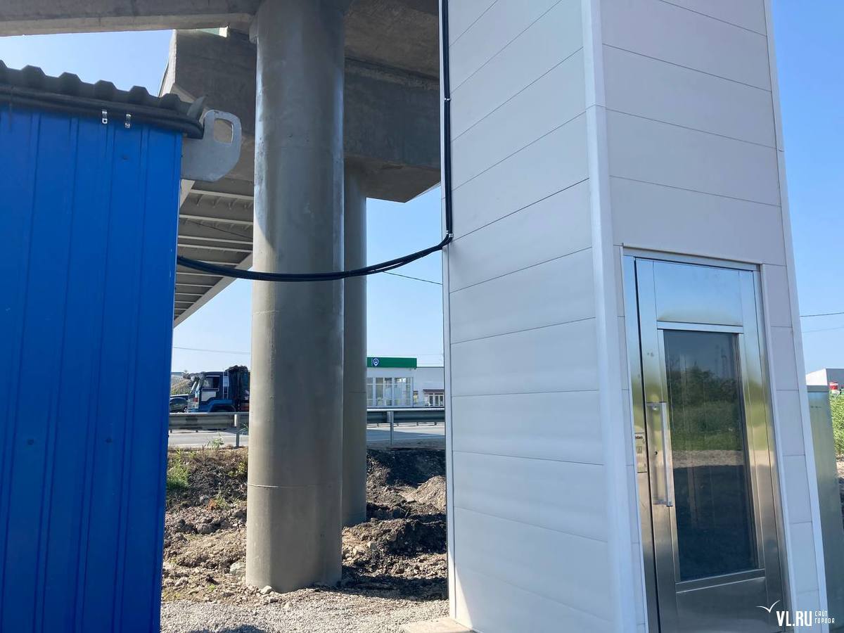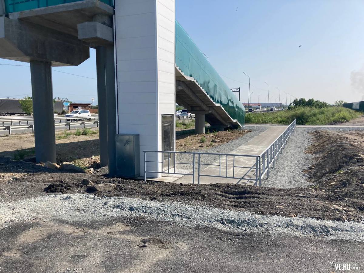 Виадук в районе заправки «Роснефть» на трассе в аэропорт Владивостока достроили и открыли для пешеходов. Даже в будний день им довольно активно пользуются. Но вот лифт для маломобильных граждан всё ещё не доступен.