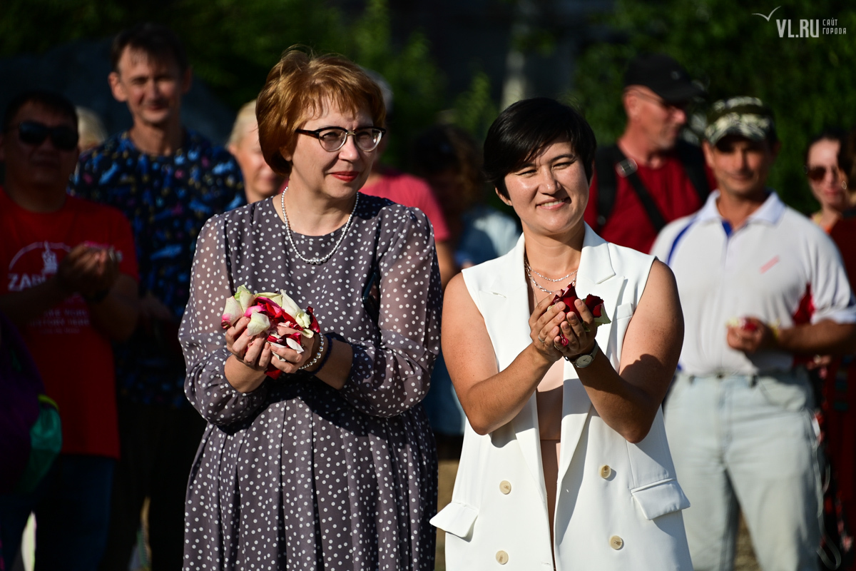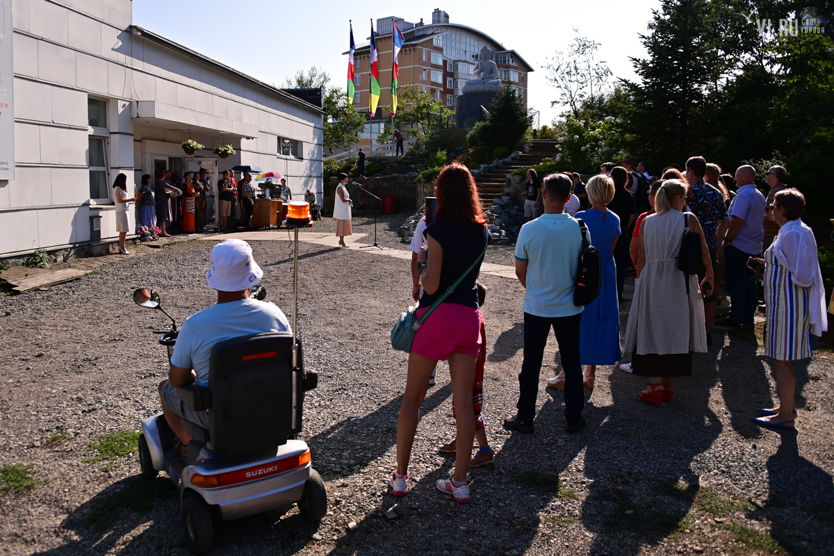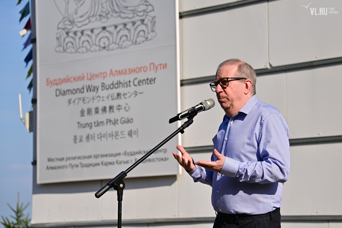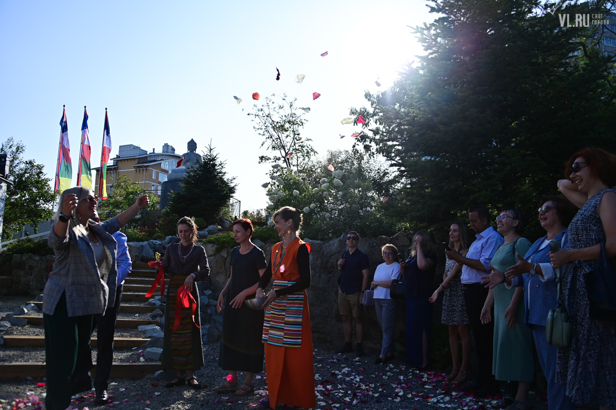 Честь перерезать красную ленточку доверили вице-президенту Российской ассоциации буддистов Алмазного пути традиции Карма Кагью Григорию Серебряному и руководителю управления туризма, инвестиций и городской среды администрации Владивостока Наталье Руденко. Последняя в своей речи отметила, что новый сквер сделан очень гармонично и прекрасно вписывается в окружающий ландшафт. «У нас есть планы по благоустройству сопки Орлиной, и мы обязательно пригласим представителей буддийского центра для обсуждения общей концепции», – уточнила Наталья Руденко.