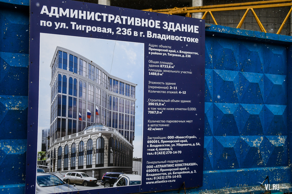 Земельный участок на Тигровой, 23-б площадью 1488 кв. м выставили на продажу на FarPost.ru за 420 млн рублей. На участке находится офисный недострой «Оушен-Сити». Продажу осуществляет АО «Международный центр недвижимости», и согласно описанию лота, у продавца имеется готовый инвестпроект, а место «идеально подходит для застройки административного здания с шикарным видом».