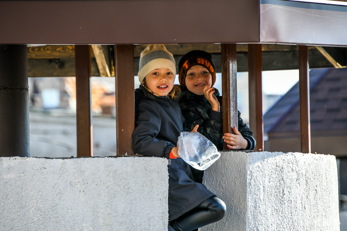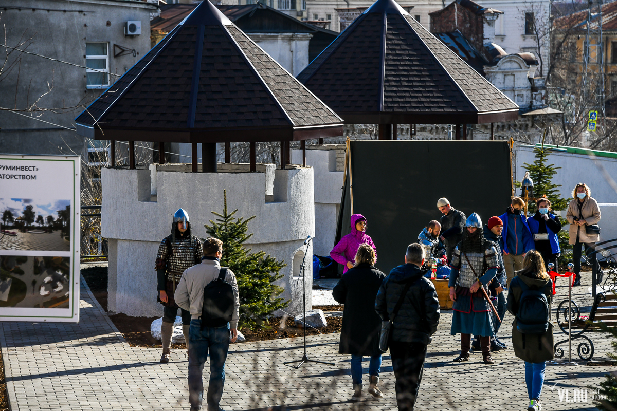До торжественного открытия каждый желающий мог прогуляться по территории нового сквера и оценить изменения. Прежде всего, в глаза бросаются преобразившиеся башни – недостающие кирпичи восстановили, а сверху всё зашпаклевали и покрасили белой краской. Также у конструкций появились новые красивые крыши с симпатичными флюгерами в виде петушка и кошки.
