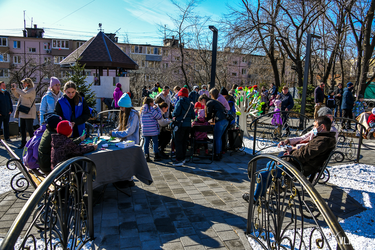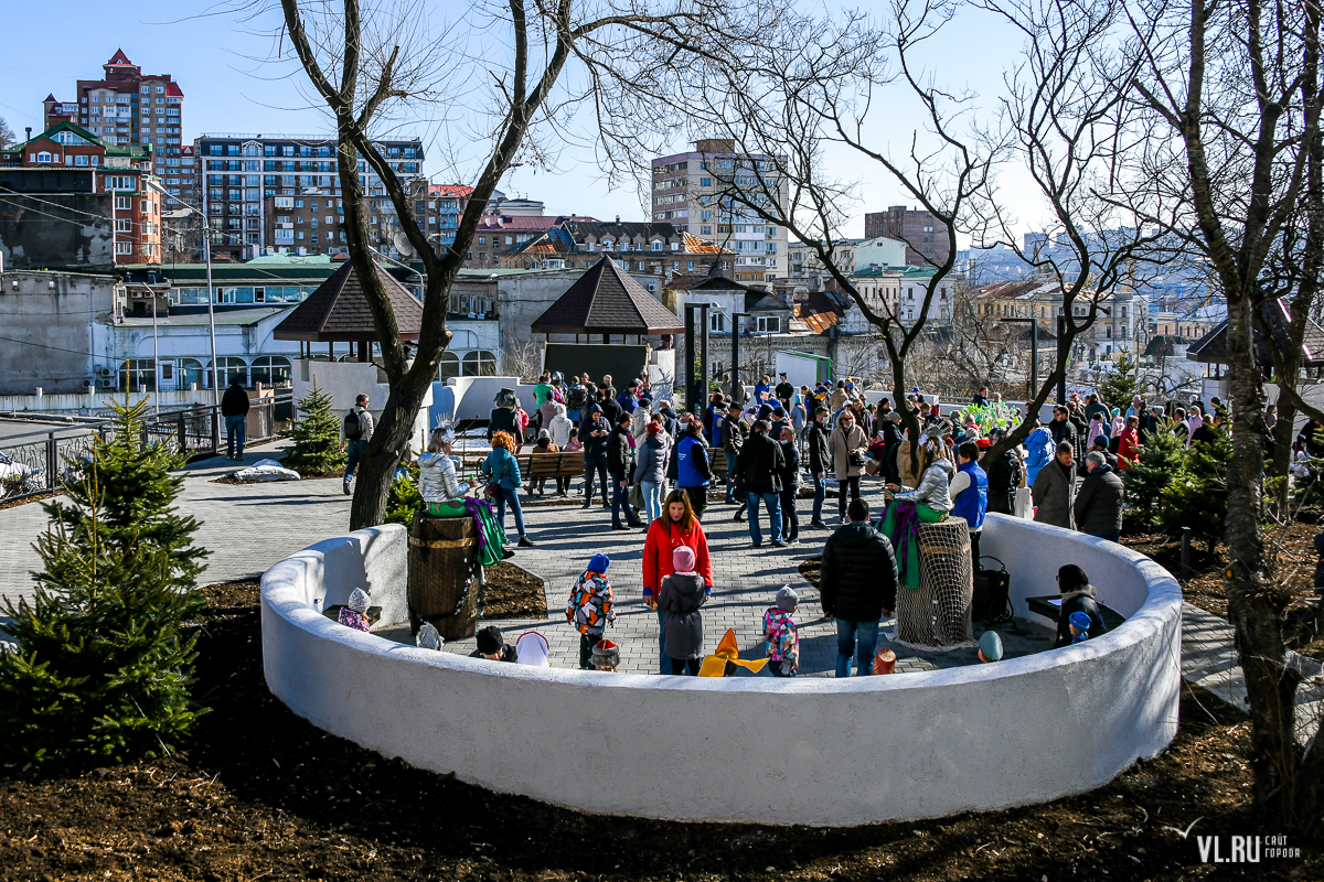 В воскресенье, 14 ноября, во Владивостоке состоялось торжественное открытие обновлённого сквера «Сказки Пушкина» (Пушкинская, 68). Здесь, в компании няни великого поэта Арины Родионовны и сказочных персонажей, звучали строки из произведений Александра Сергеевича, дети делали оригами, а реконструкторы устроили показательные бои на мечах.
