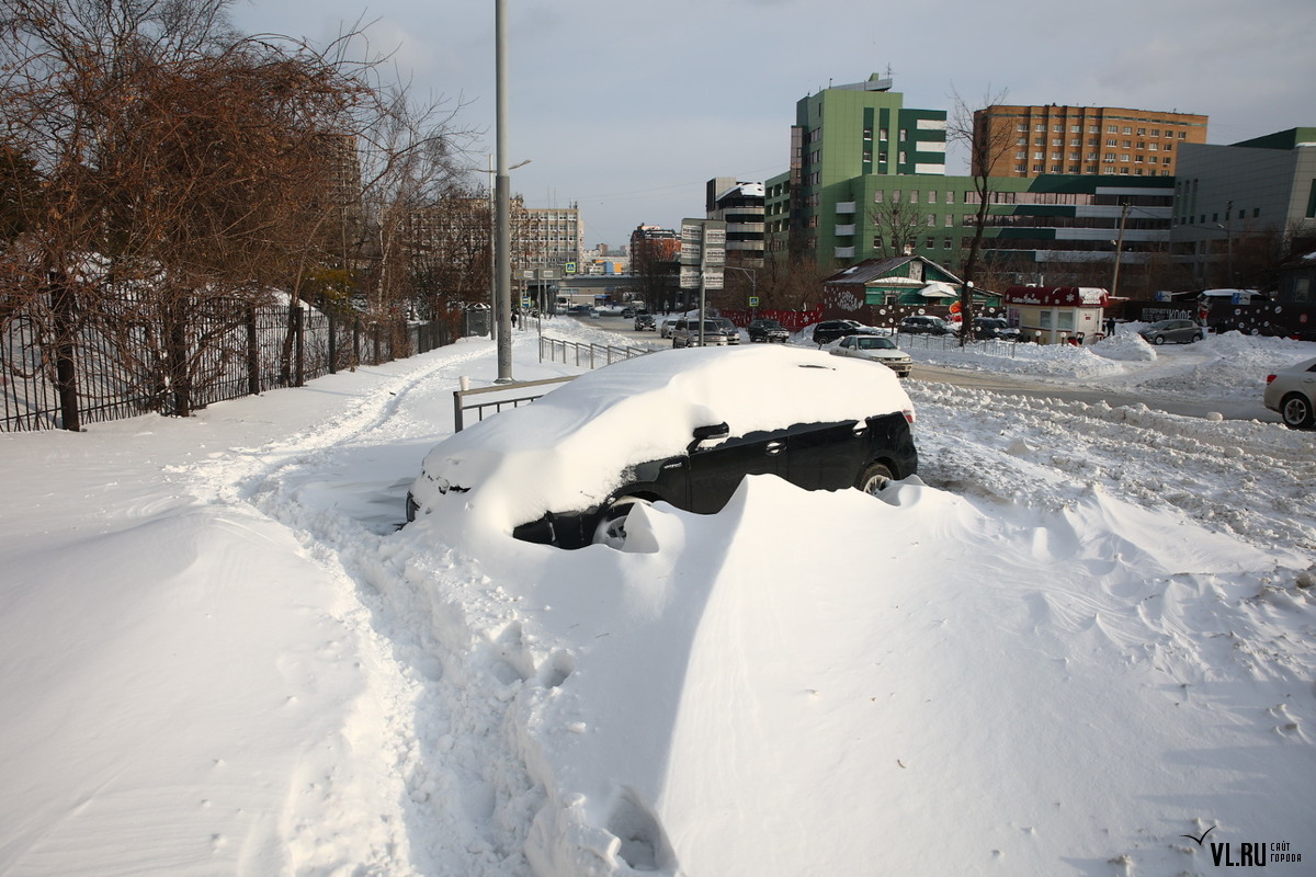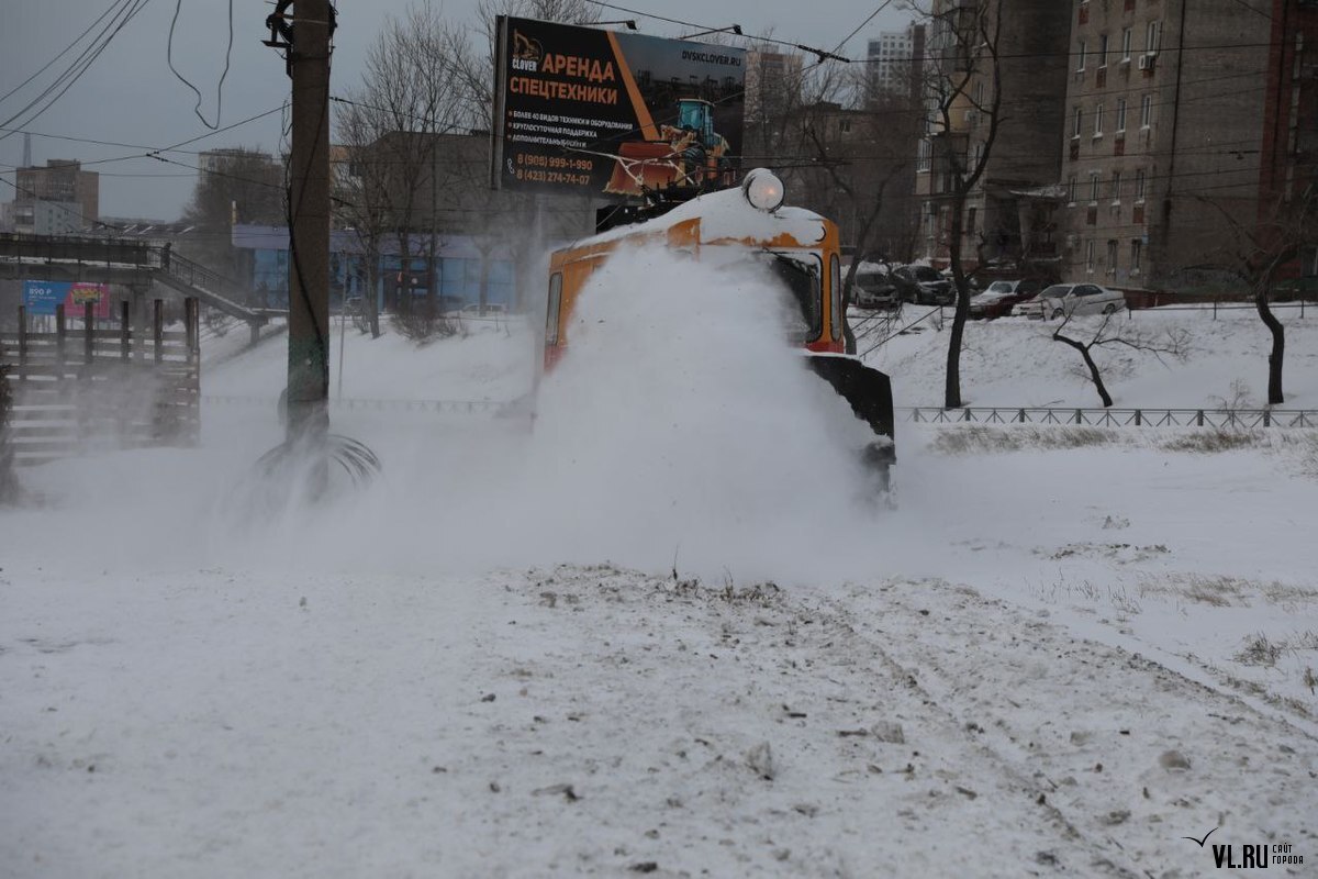 Обновление 10:46: Читатели VL.ru сообщают, что перекрыт проезд через ж/д переезд в районе улицы Татарской. Пока его не очистят от снега, движение здесь закрыто. Заблокированными оказались жители домов на Татарской и рыбокомбинат.