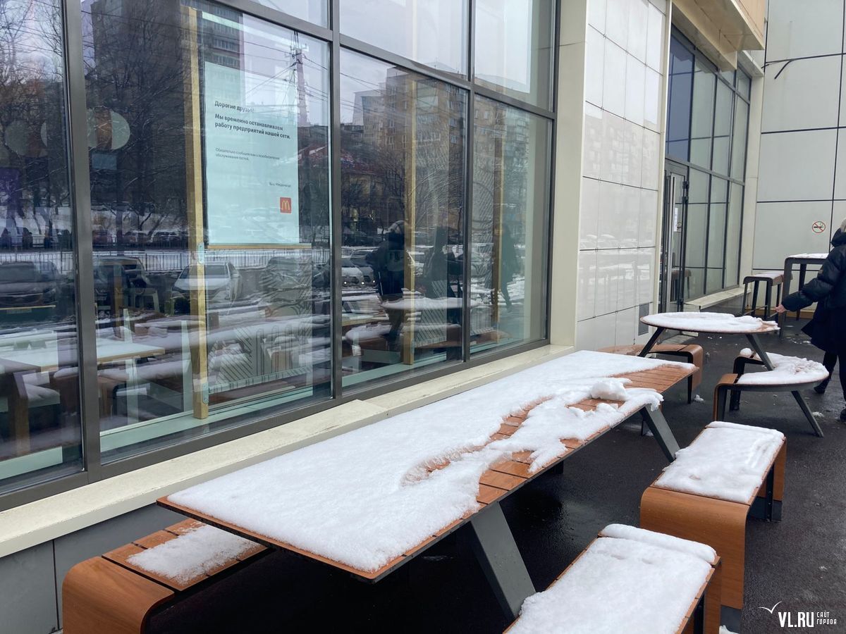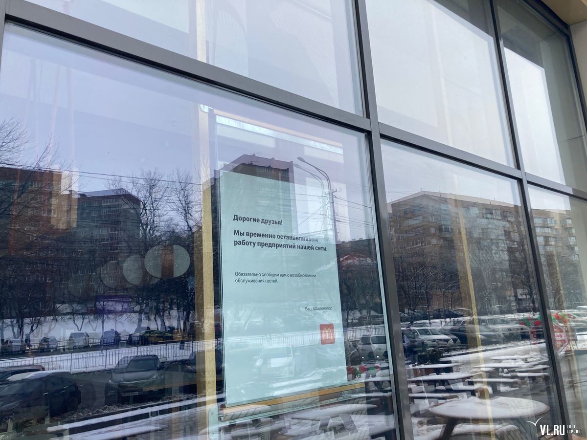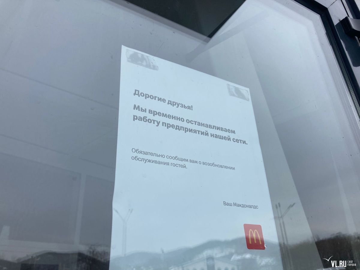 Утром 15 марта во Владивостоке не открылись рестораны сети «Макдоналдс». На закрытых дверях можно прочитать о временной приостановке обслуживания на неопределённый срок.