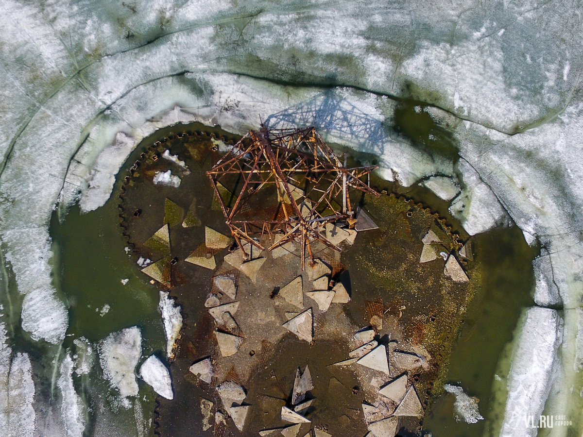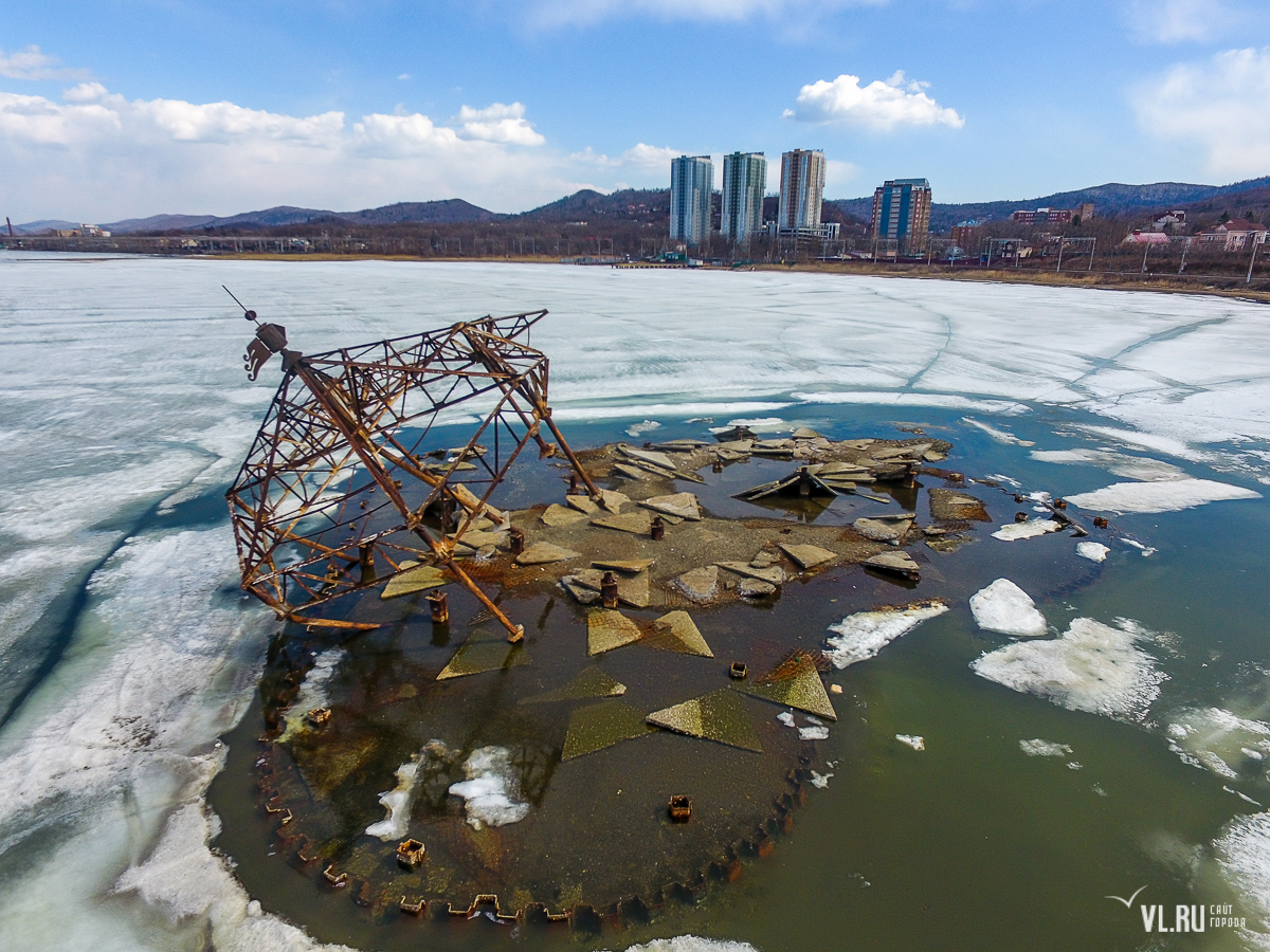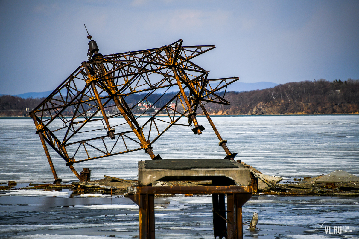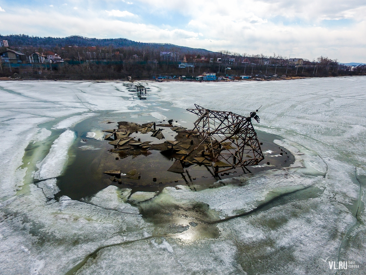 Однако теперь ушла и эта эпоха – остов не пережил зиму 2022 года и завалился на воду. 13:17: Читатели VL.ru сообщили, что конструкцию также пытались попилить на металл. Изъеденный ржавчиной металл просто уже не выдерживал собственного веса, и, видимо, под воздействием ветра и «гуляющего» льда, конструкция упала.