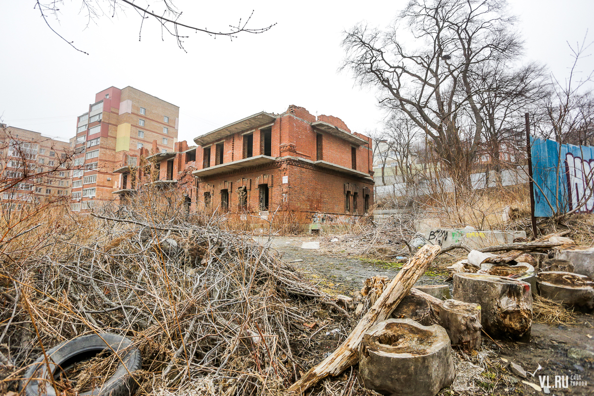 Вокруг отсутствуют какие-либо информационные таблички, так что узнать, кому принадлежат графские развалины и обязанность их охранять, проблематично. Как сообщили в городской мэрии, в реестре муниципальной собственности они не числятся. В прокуратуре проверок по бесхозному недострою пока не проводили. Руины находятся на участке с номером 25:28:050049:5505 площадью 1200 кв. м. Кадастровая стоимость более 4,4 млн рублей. Естественно, участок в частной собственности.